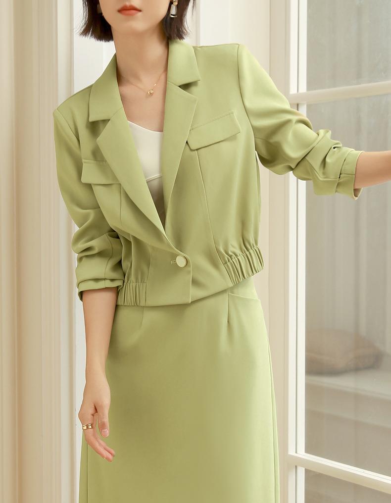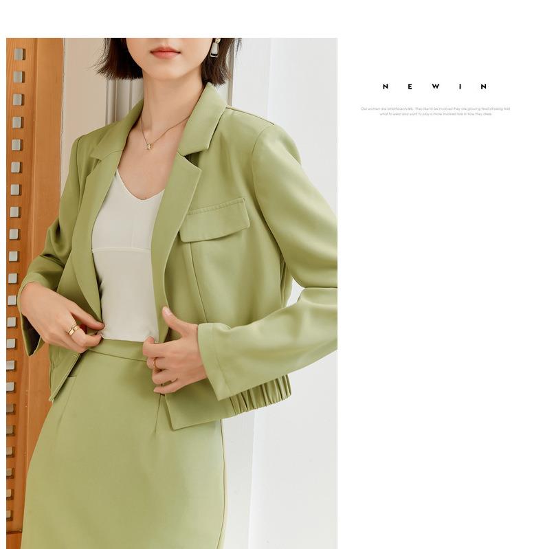 百姿 短款一粒扣西装外套女秋季款气质通勤OL收腰长袖上衣女