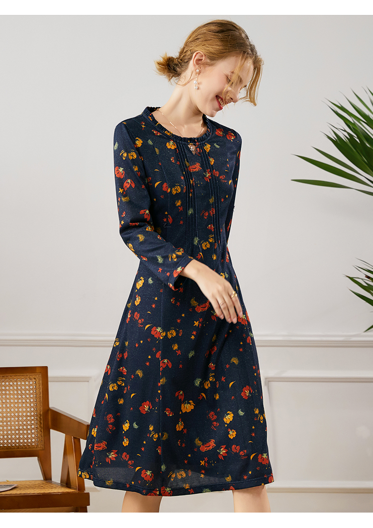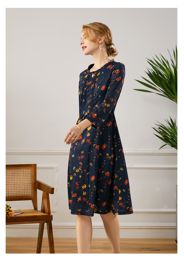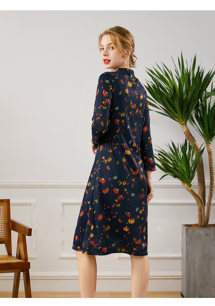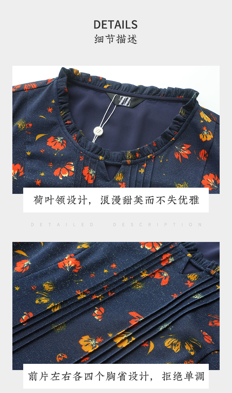 佐尔美2021年秋季新款 荷叶领气质百搭修身碎花连衣裙E13LL25