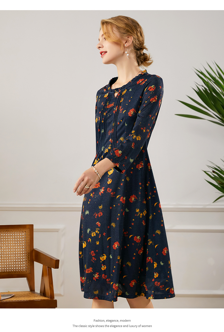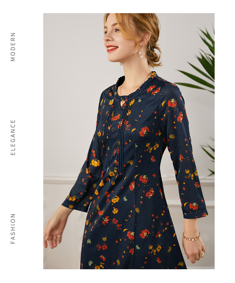 秋季新款气质优雅减龄显瘦蕾丝七分袖连衣裙E93LL22