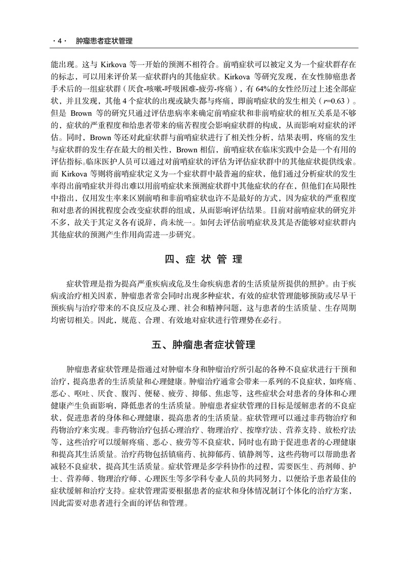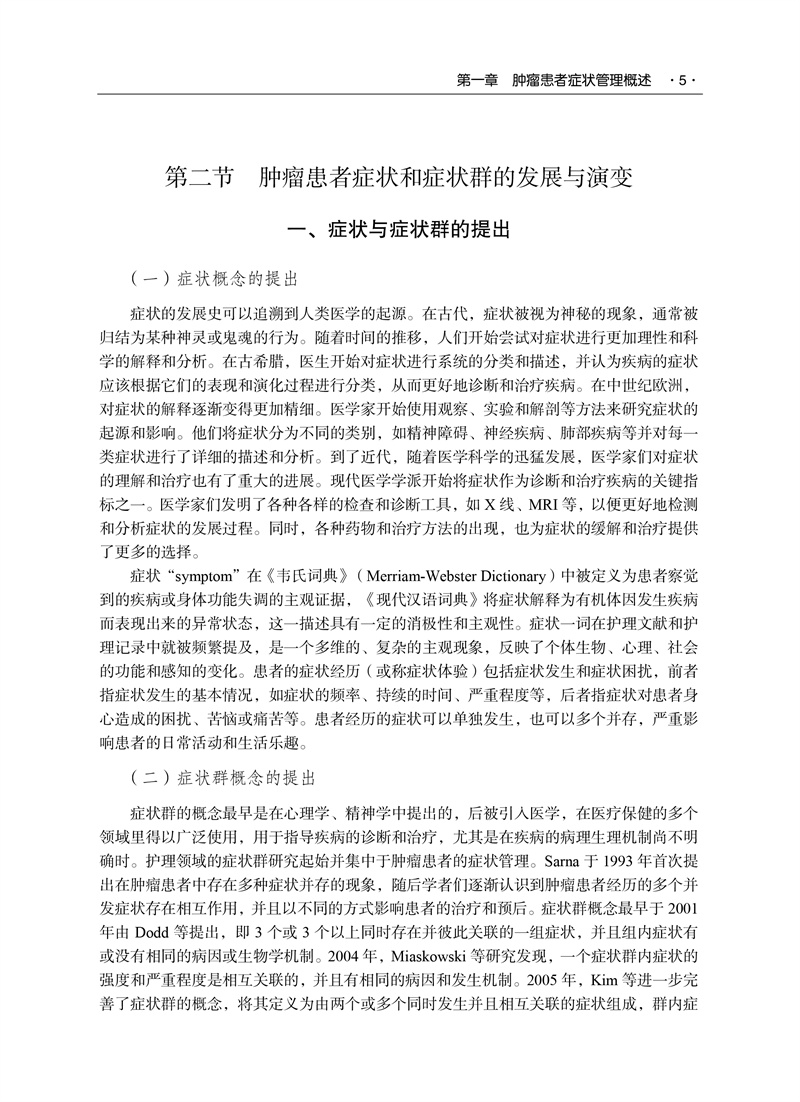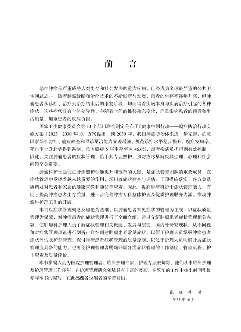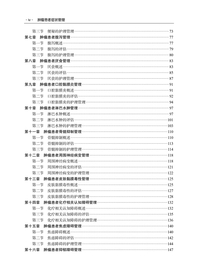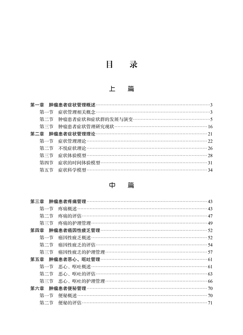 本书以症状管理理论为基石、以肿瘤患者常见症状管理为主线、以症状质量管理为保障,系统阐述了肿瘤患者症状管理理论及管理策略,丰富和拓展了肿瘤护理的内涵与外延。本书分上、中、下3篇,上篇对症状管理相关概念、发展与演变及研究现状进行了介绍,同时详细介绍了五大常见症状管理理论;中篇介绍了肿瘤患者常见的18种症状的护理管理,包括疼痛、癌因性疲乏、恶心呕吐、便秘、腹泻等;下篇以癌痛、恶心呕吐、中性粒细胞减少3种肿瘤患者的常见症状为例,介绍了如何从工作制度、管理流程、护士职责及护理质量评价等方面开展临床护理实践。