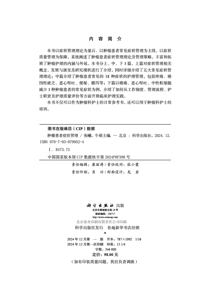 肿瘤患者症状管理 康丽涛编 可作为肿瘤科护士的日常参考书 还可以用于肿瘤科护士的培训 临床医学 护理学9787030799524科学出版社