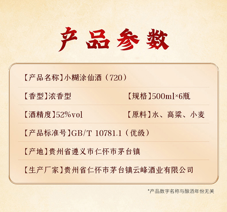 官方自营 小糊涂仙 52度 720 500ml*6瓶/箱 +920 485ml*6瓶/箱【组合装】