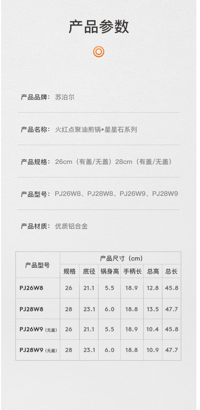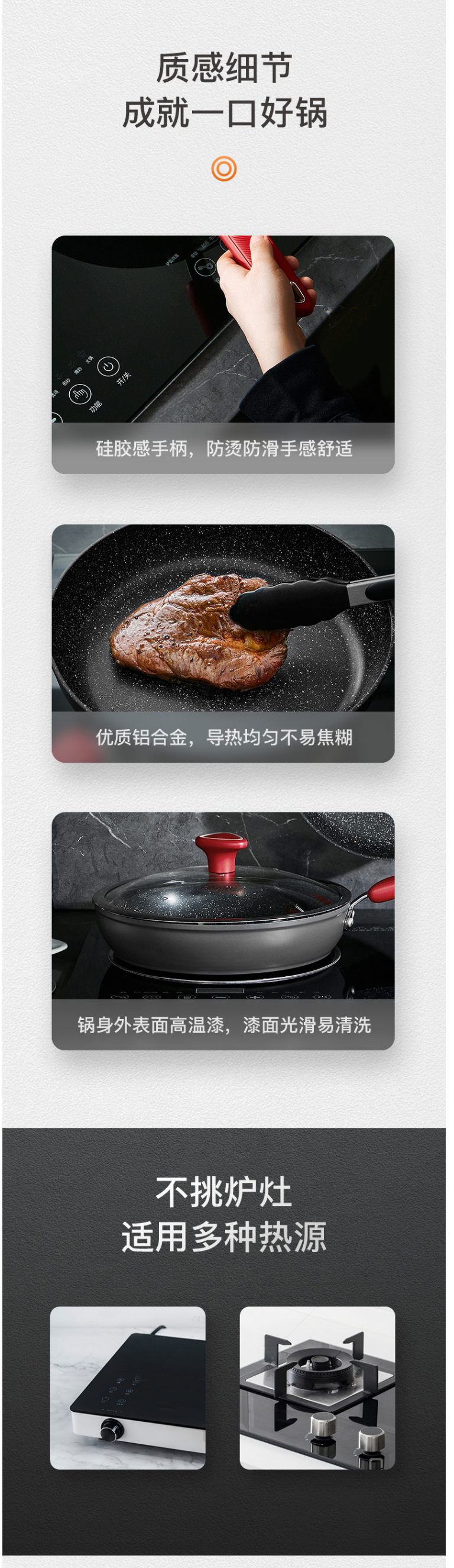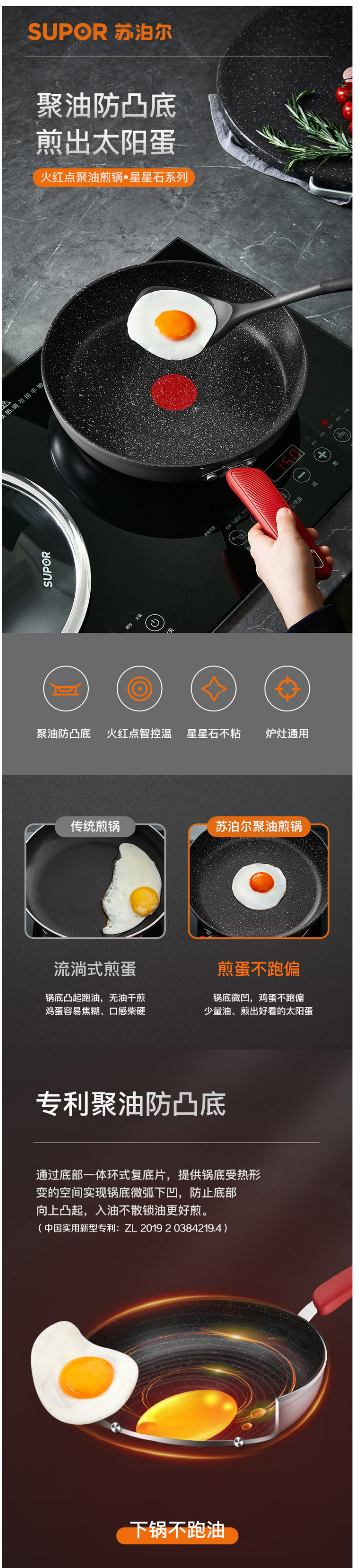 苏泊尔(509700)(SUPOR)平底锅煎锅麦饭石色不粘锅火红点星星石煎蛋煎饼煎牛排燃气灶电磁炉通用 26CM口径-PJ26W8