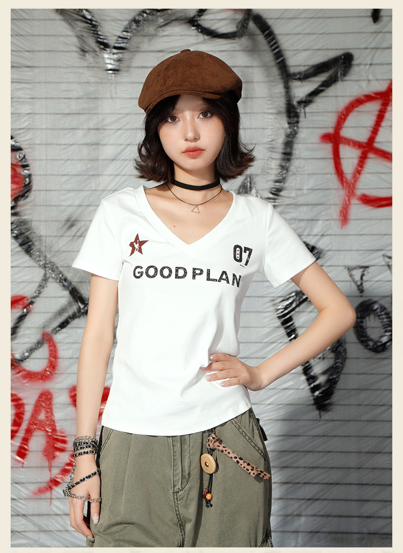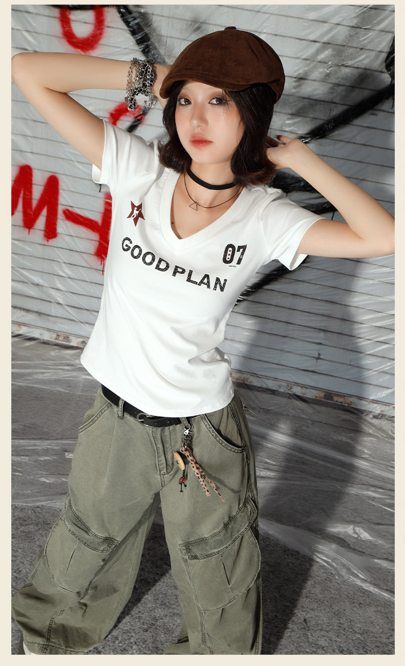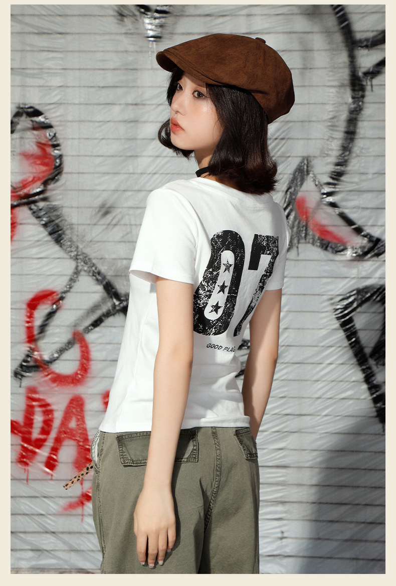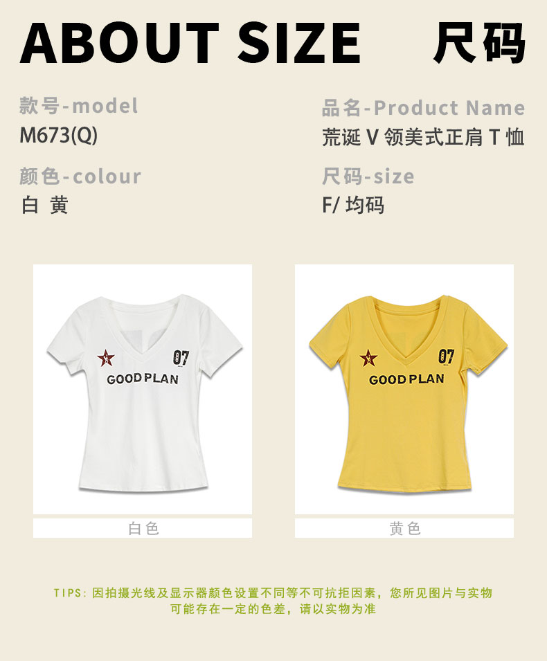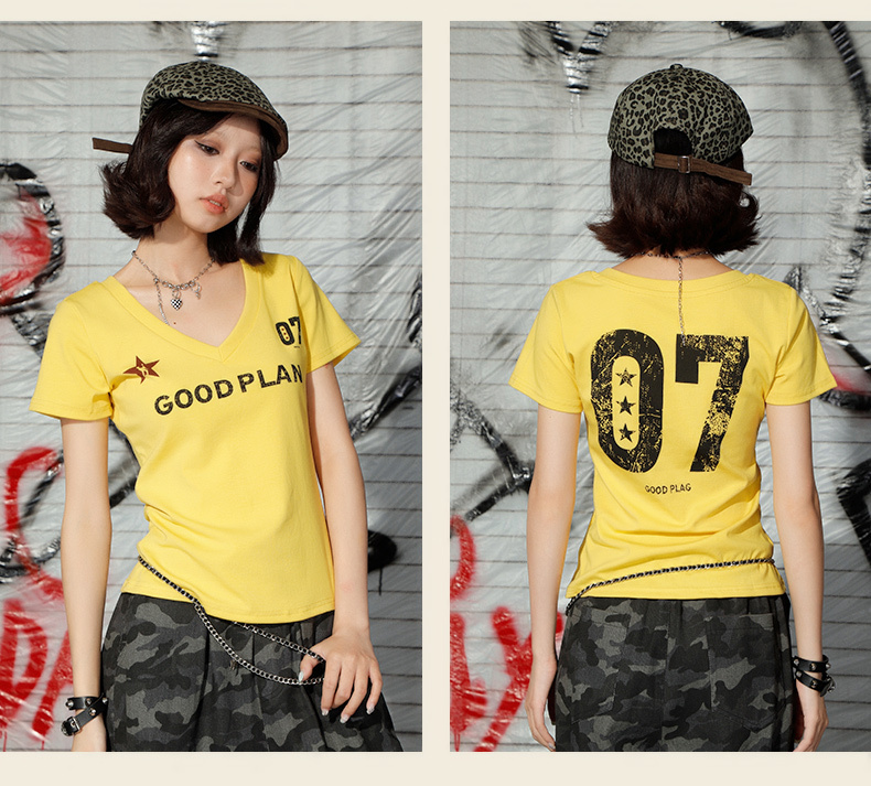 荒诞V领美式正肩T恤门店同款纪念日百货163595934