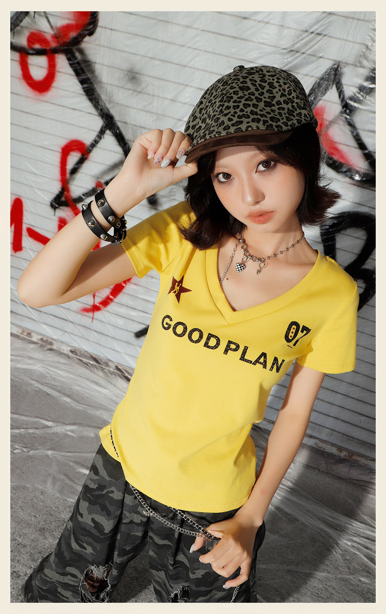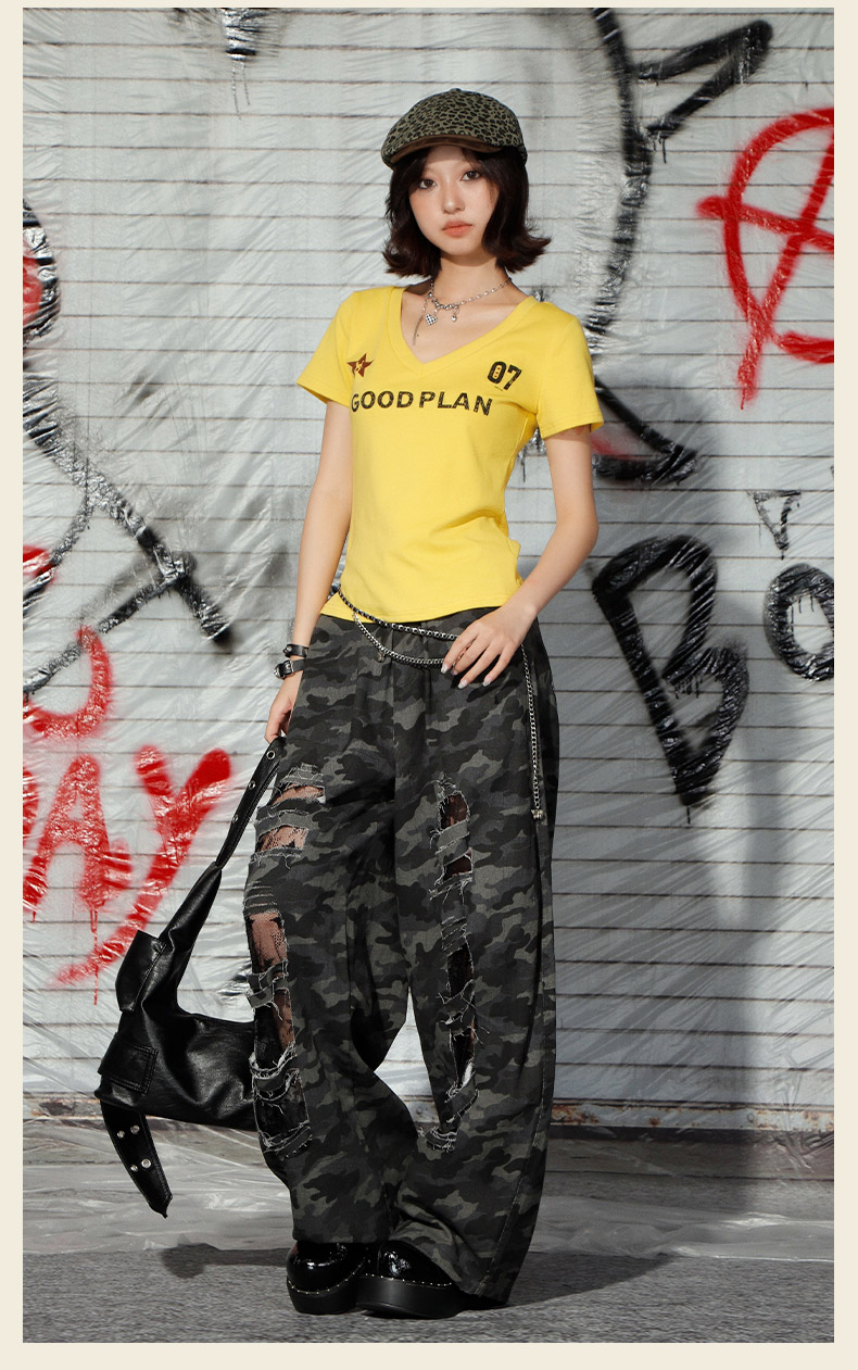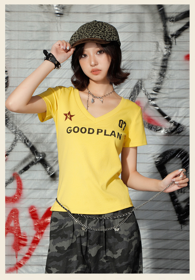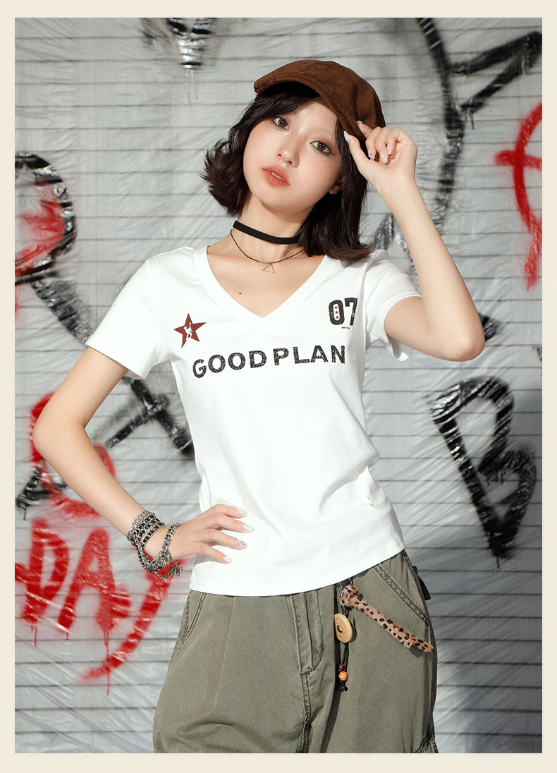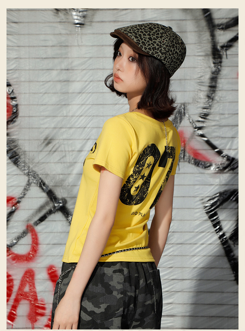荒诞V领美式正肩T恤门店同款纪念日百货163595934