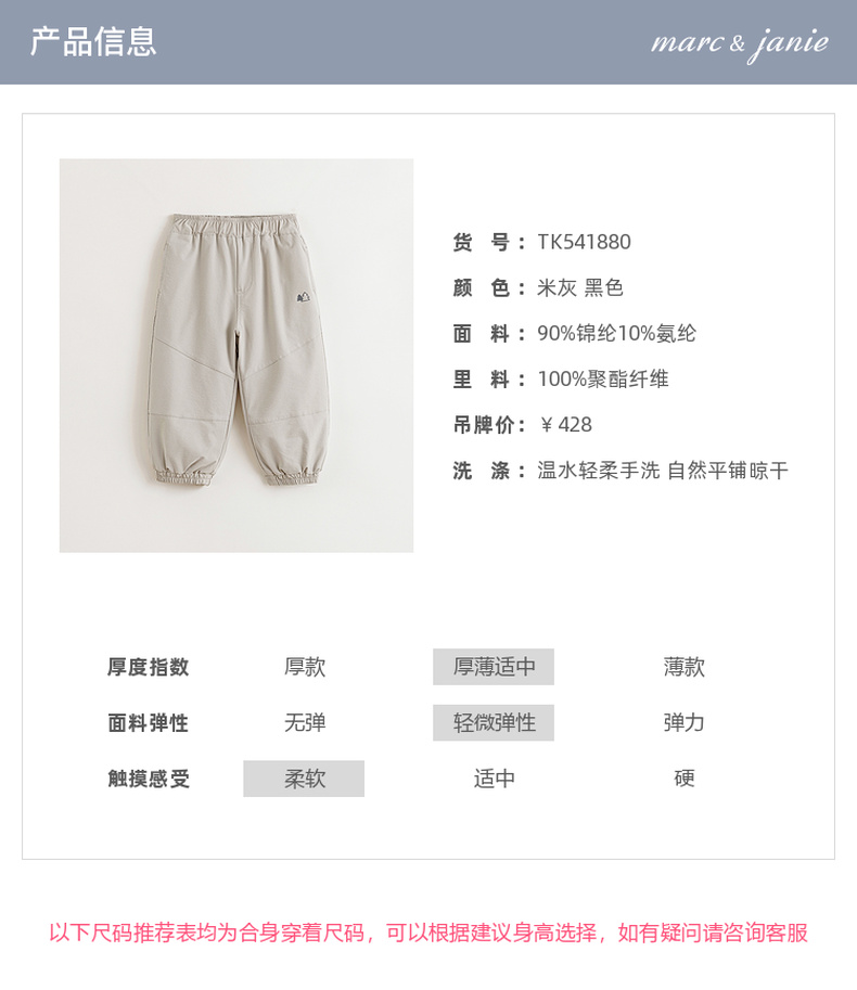 马克珍妮男童山系户外加绒工装裤2024年秋冬新款541880