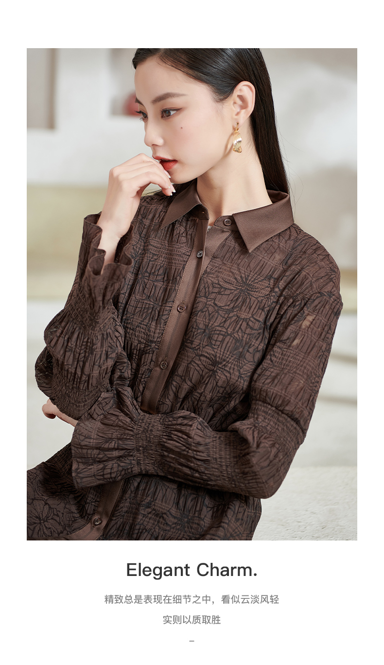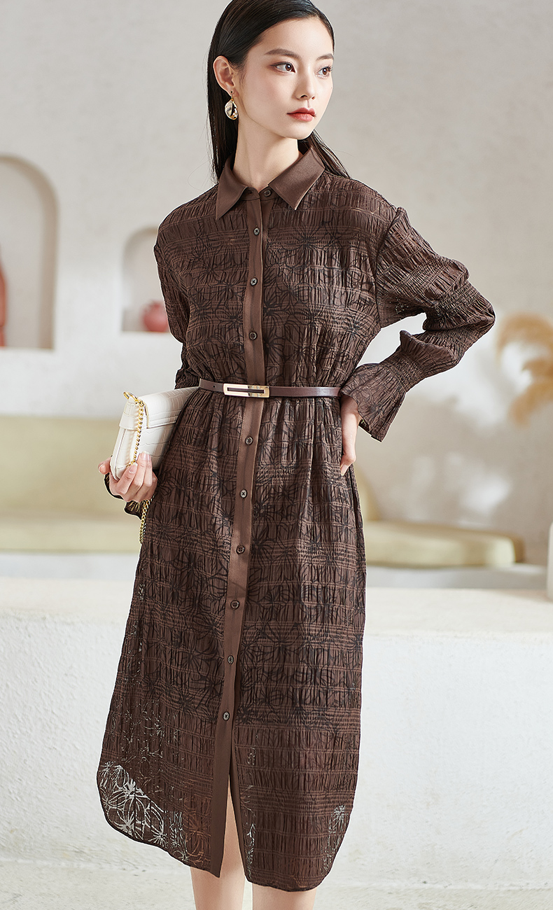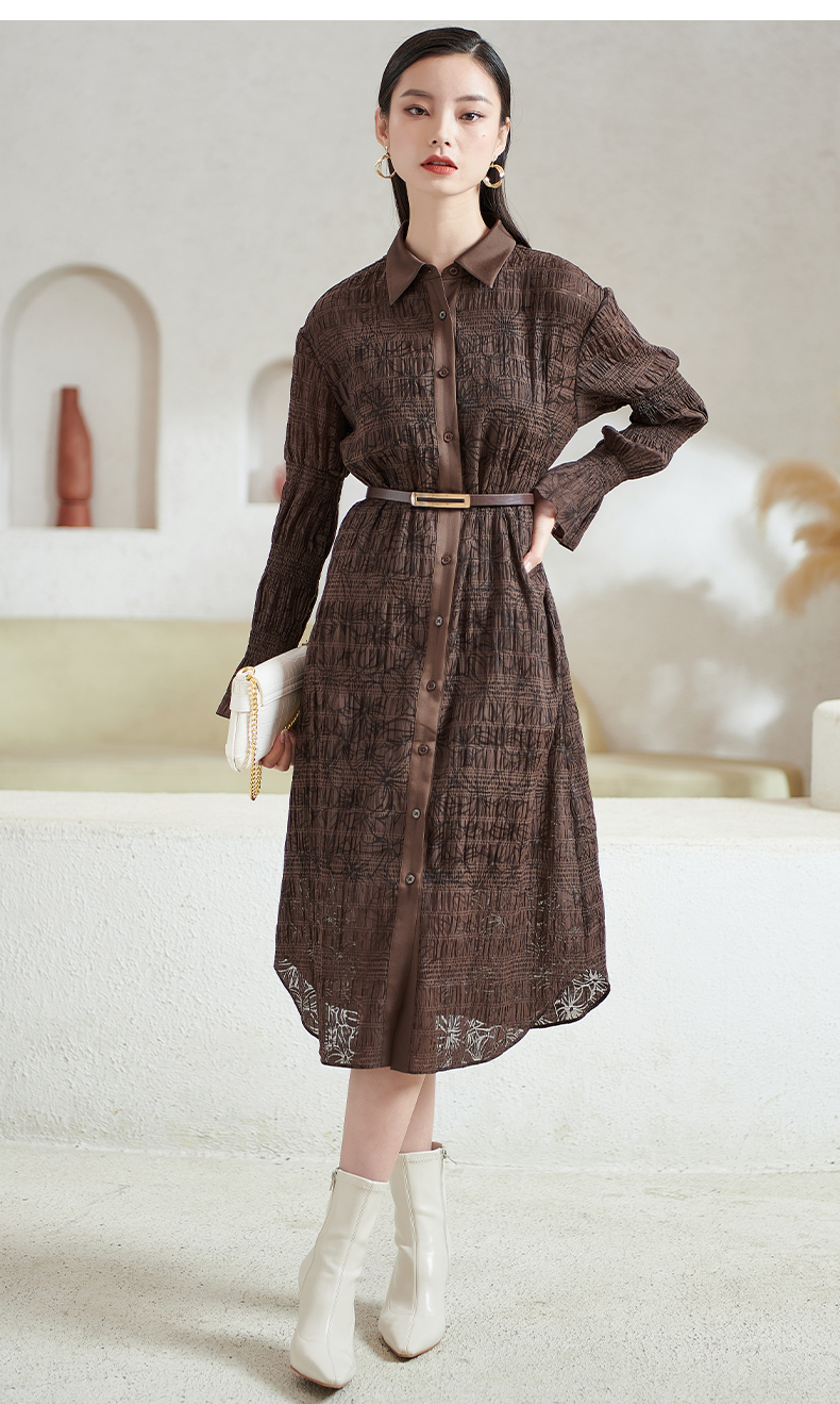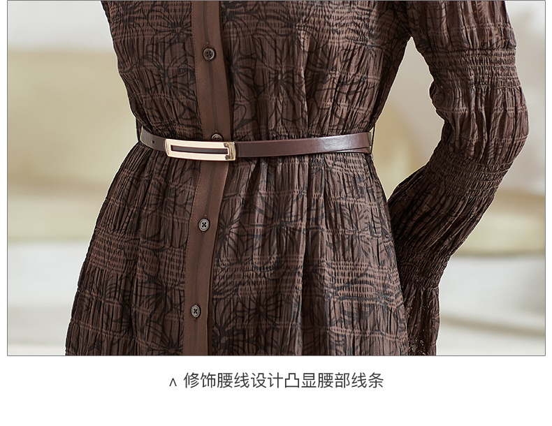 芳外新款气质显瘦翻领连衣裙百搭中长款休闲裙子女8T22AL0338