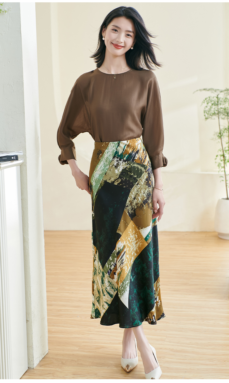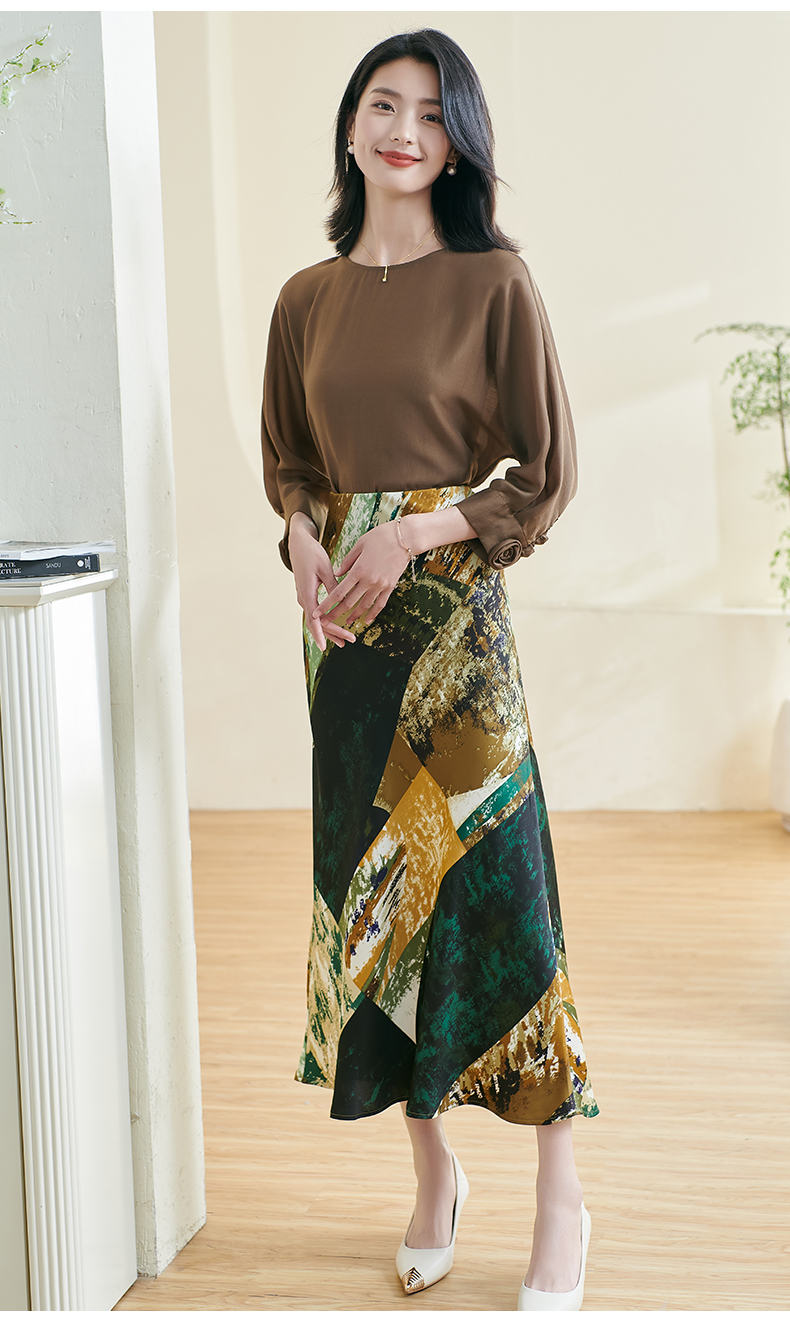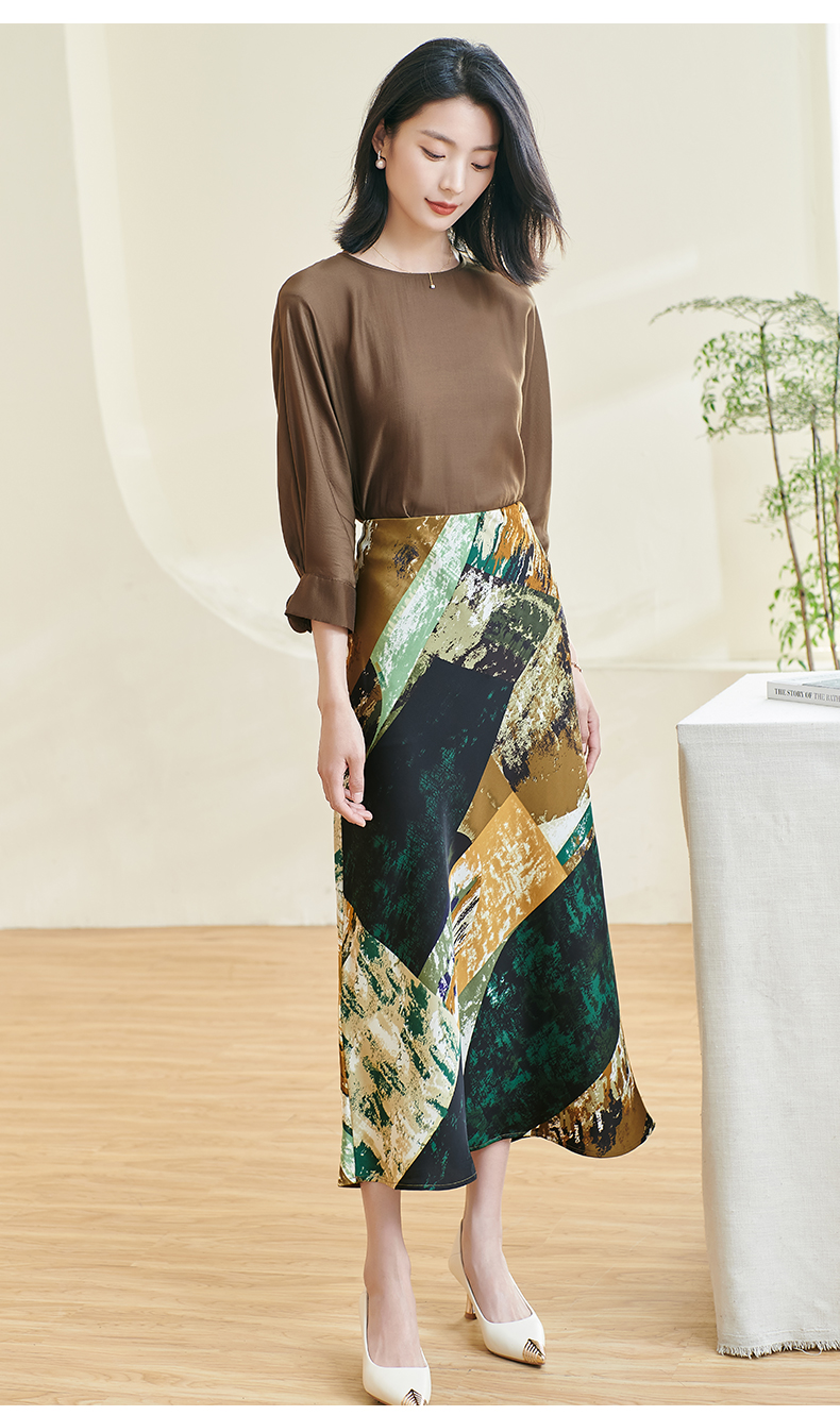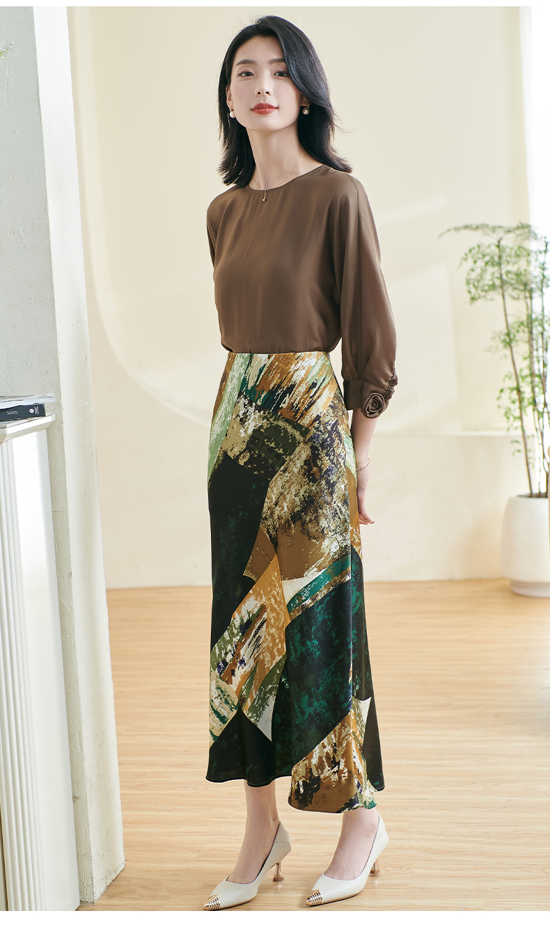 剩S/M/XL 米思阳2026春季新款优雅防皱设计感印花裙子高腰宽松显瘦半身裙女0401