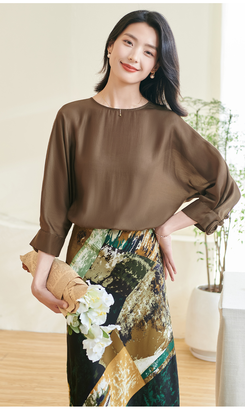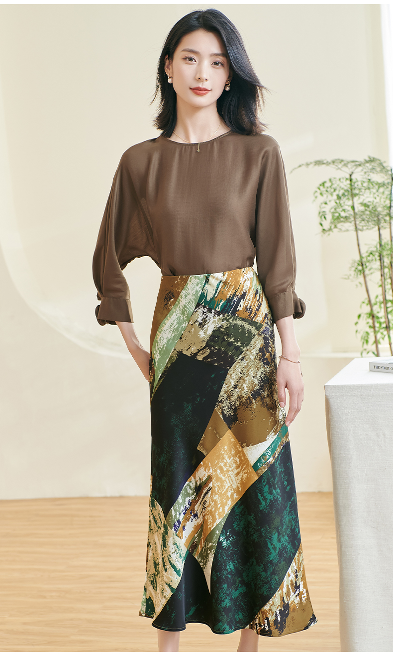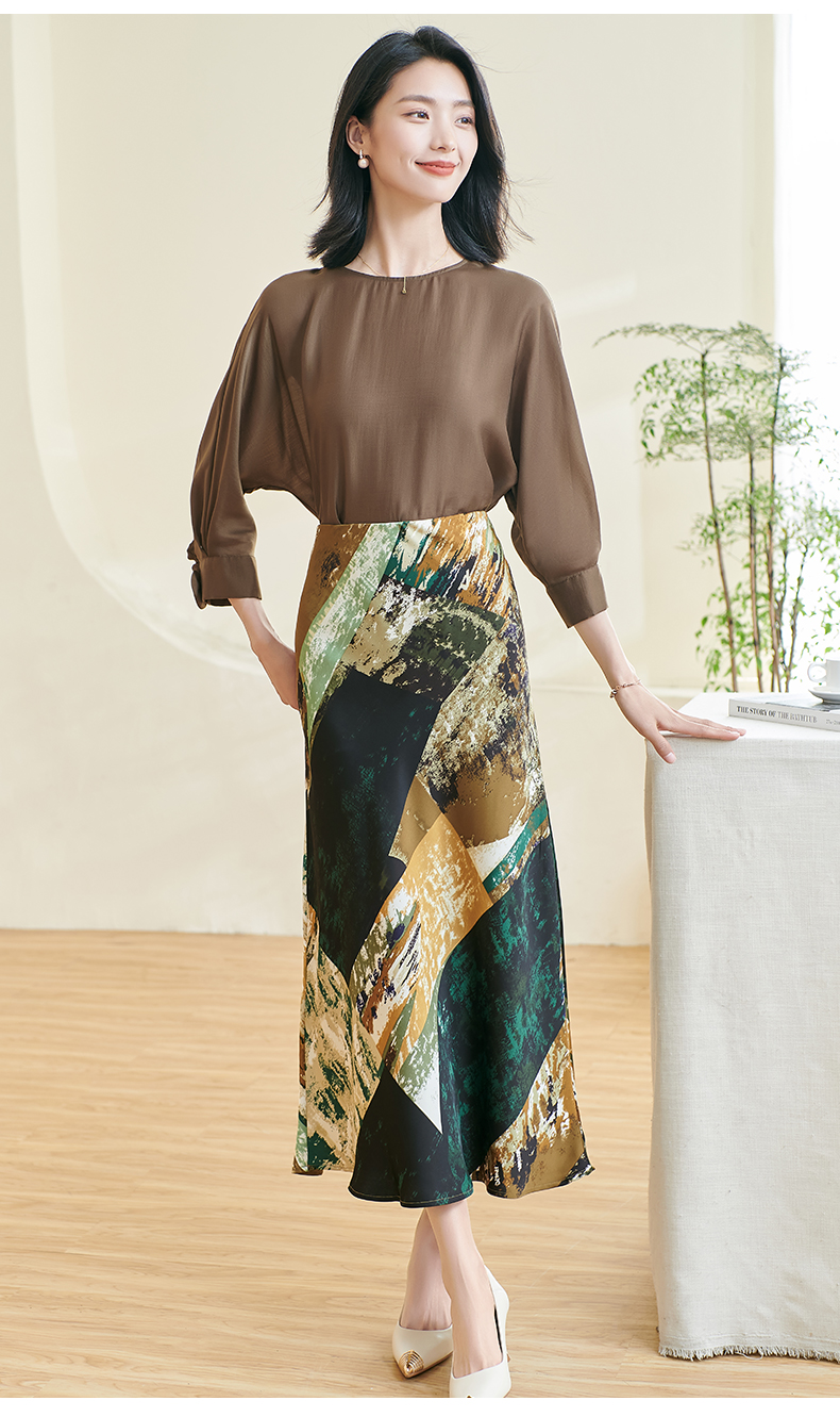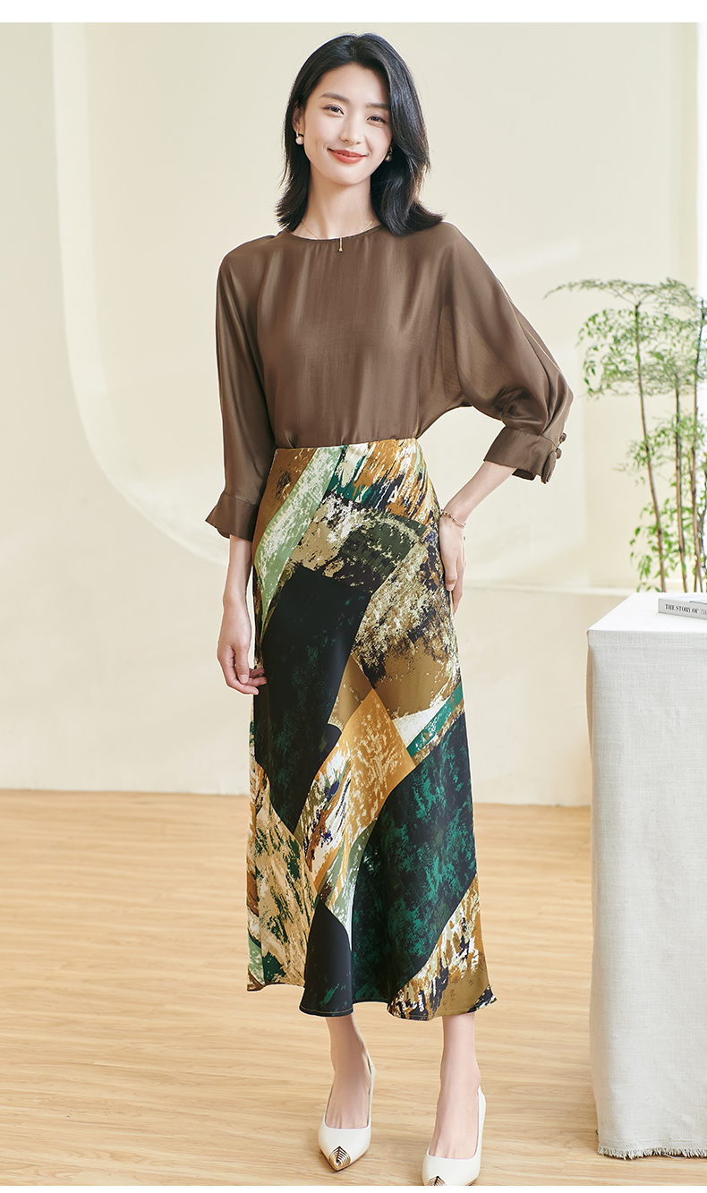 剩S/M/XL 米思阳2026春季新款优雅防皱设计感印花裙子高腰宽松显瘦半身裙女0401