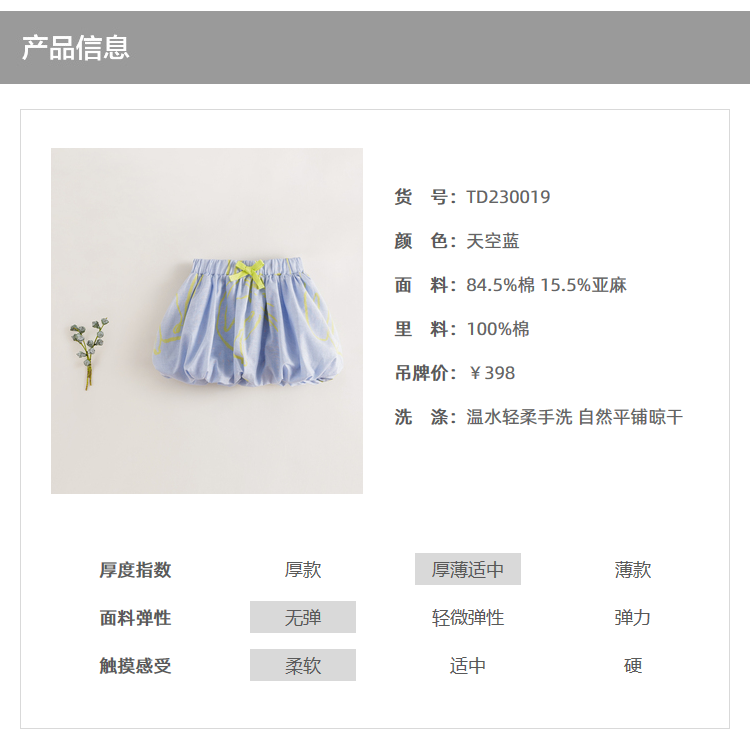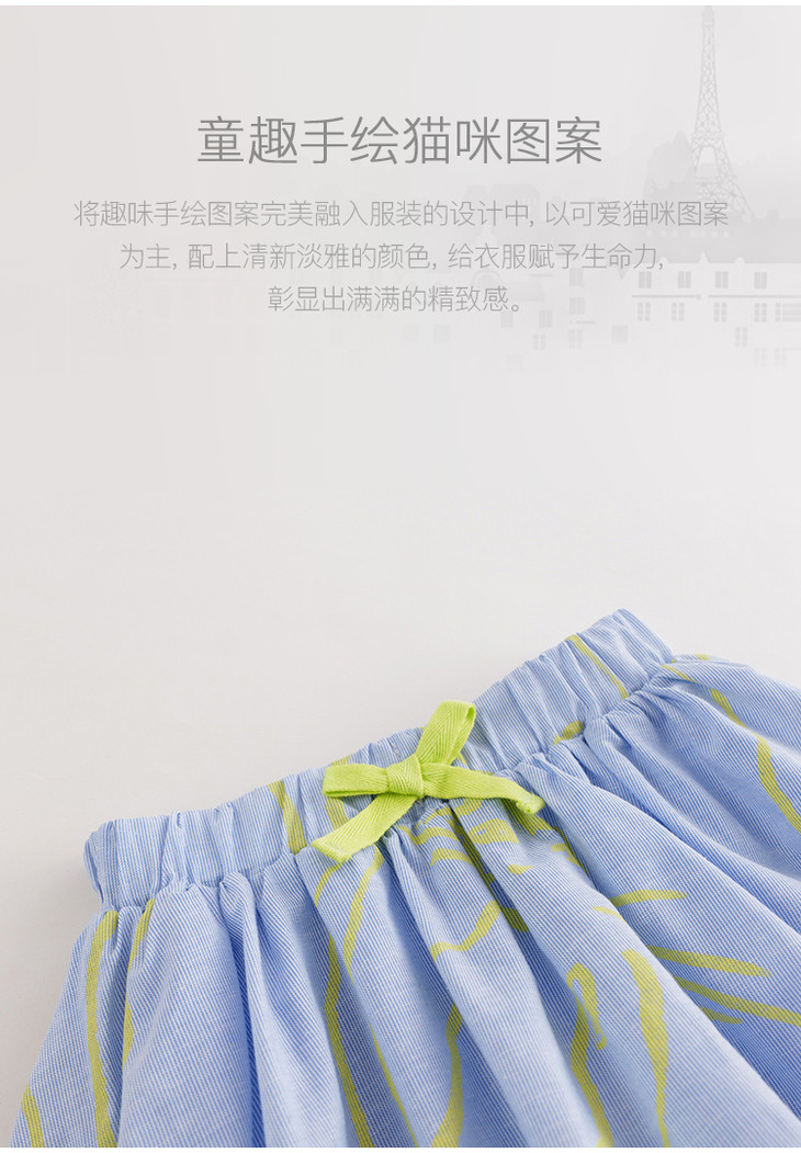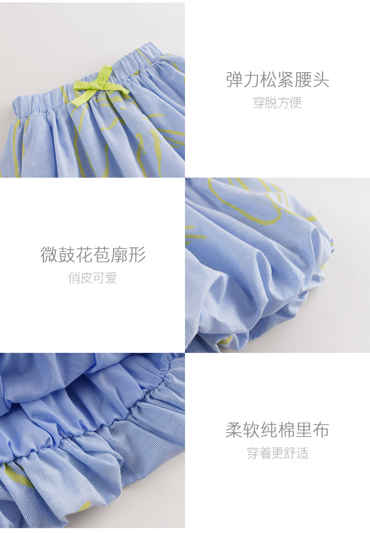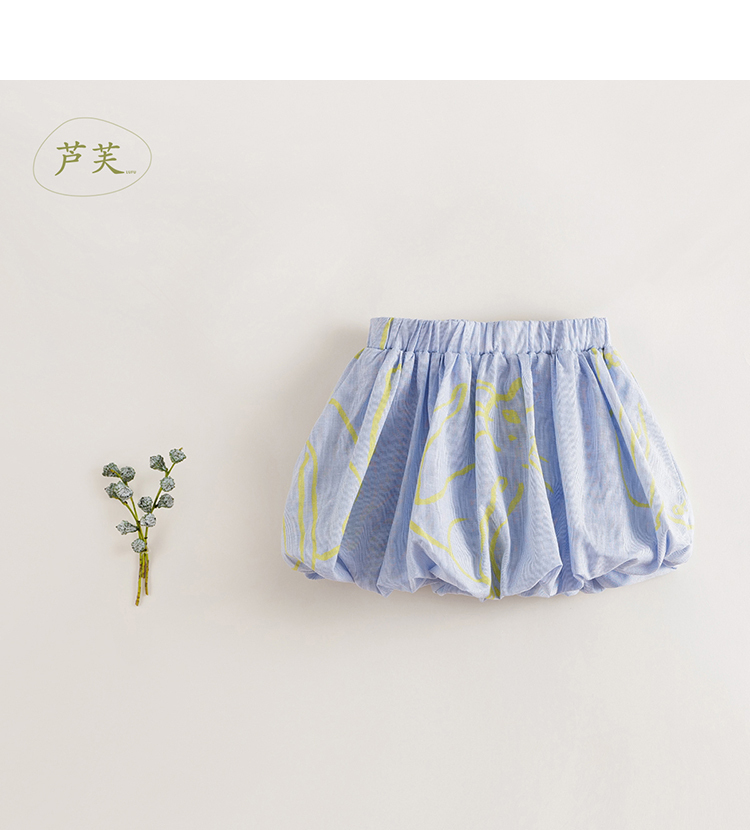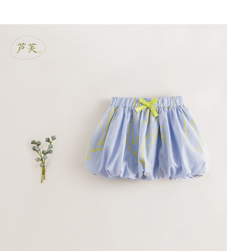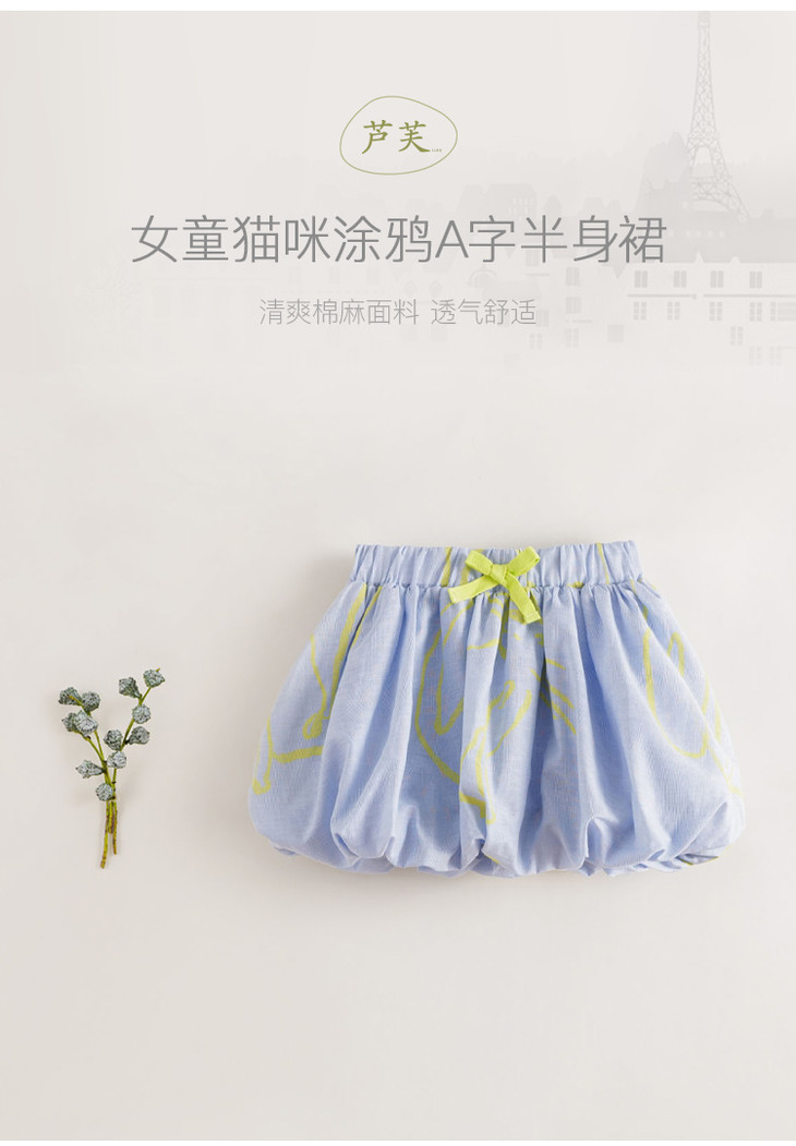 【马克珍妮 芦芙】夏装新款 女童印花棉麻花苞半身裙230019