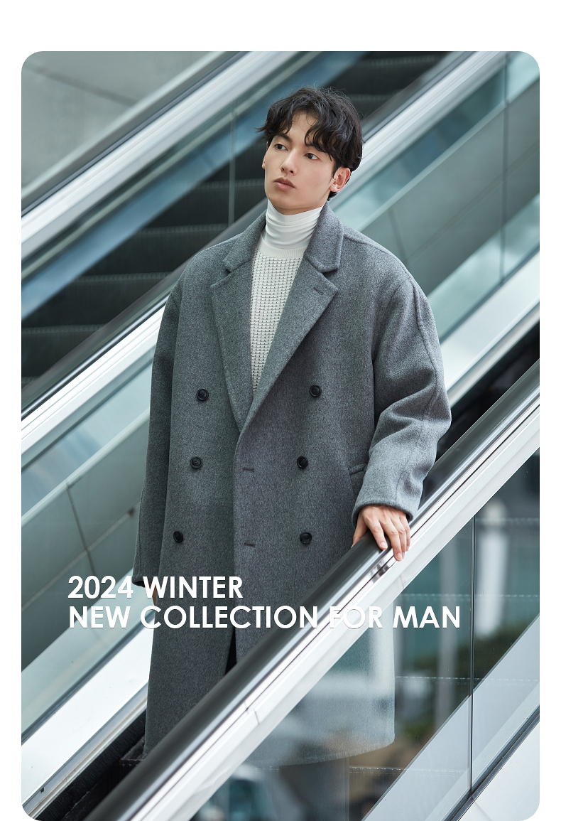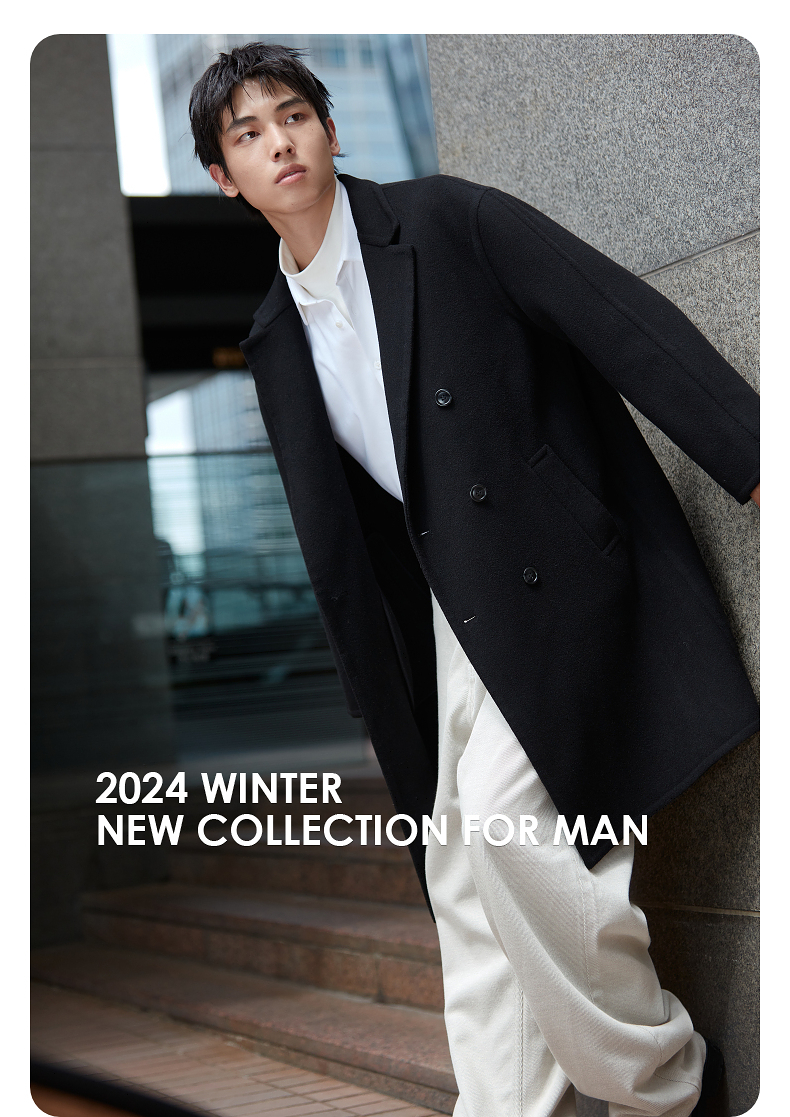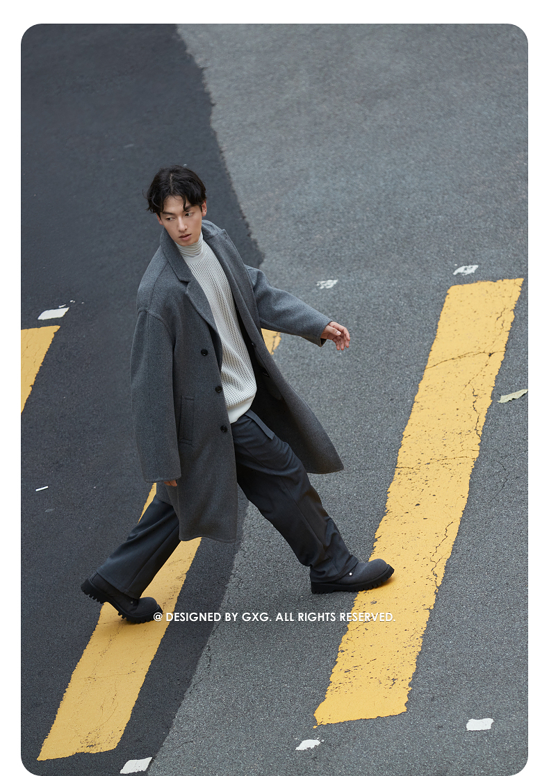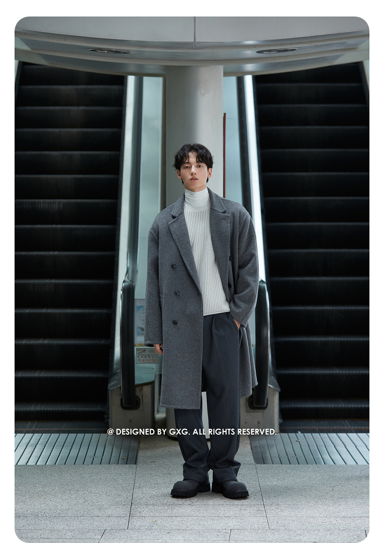GXG男装双排扣羊毛大衣宽松双面呢长款外套24年冬热卖#G24D264031
