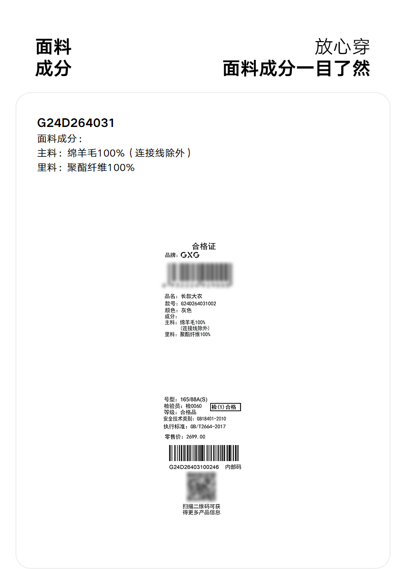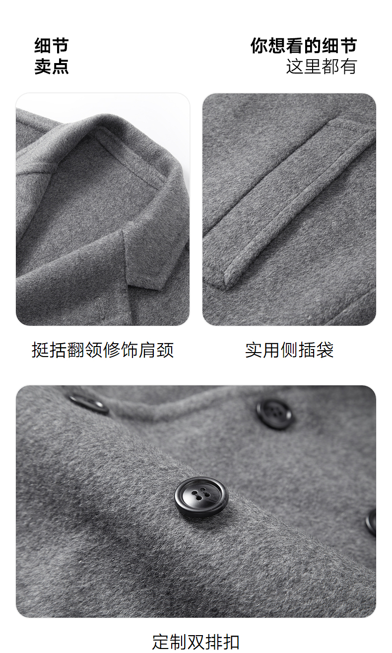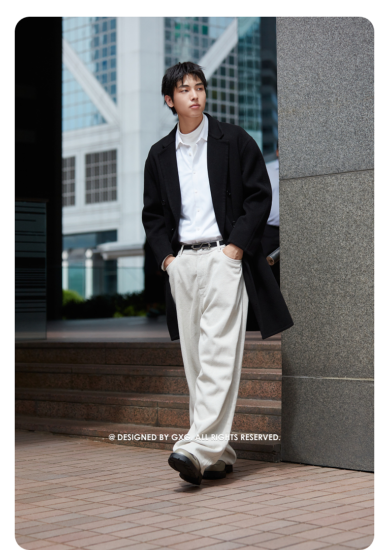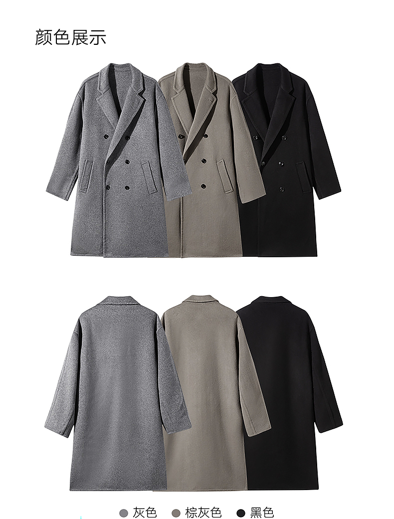 GXG男装双排扣羊毛大衣宽松双面呢长款外套24年冬热卖#G24D264031