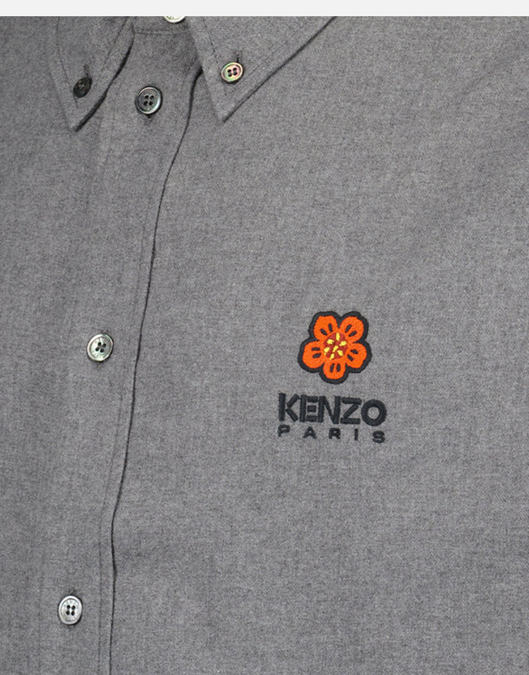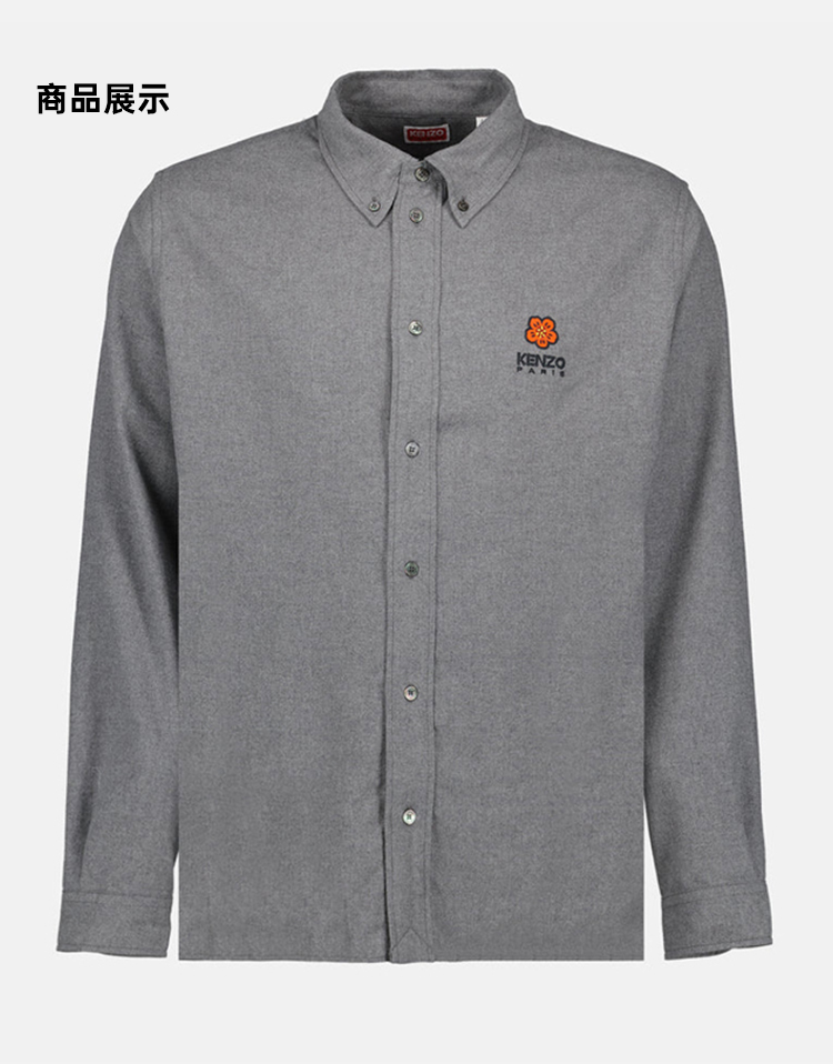 KENZO 高田贤三 男士“BOKE FLOWER”徽章刺绣棉质长袖衬衫 灰色 FD65 CH410 9DU 97