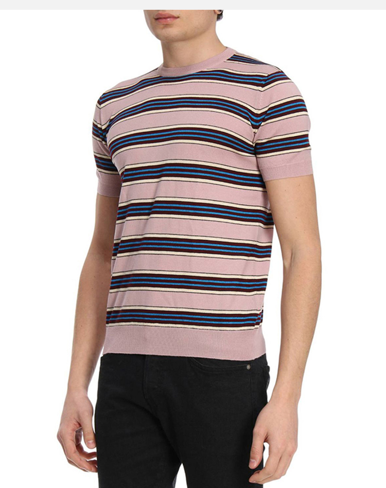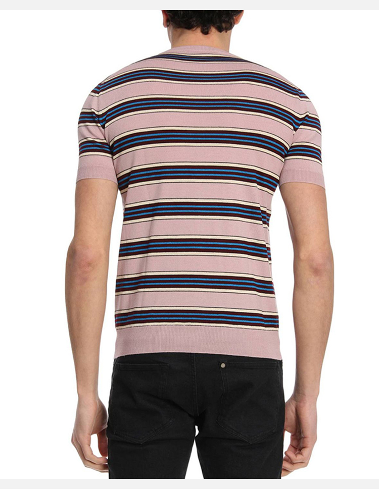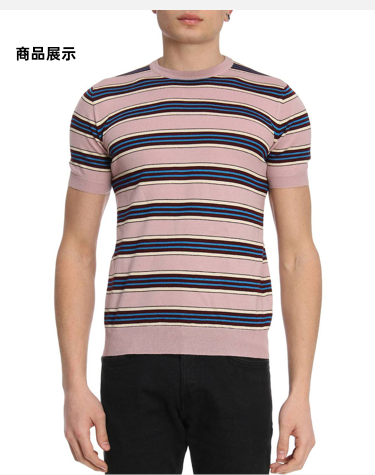 PRADA 普拉达 男士条纹圆领短袖针织衫 混色 UMA173 1D4E F0442