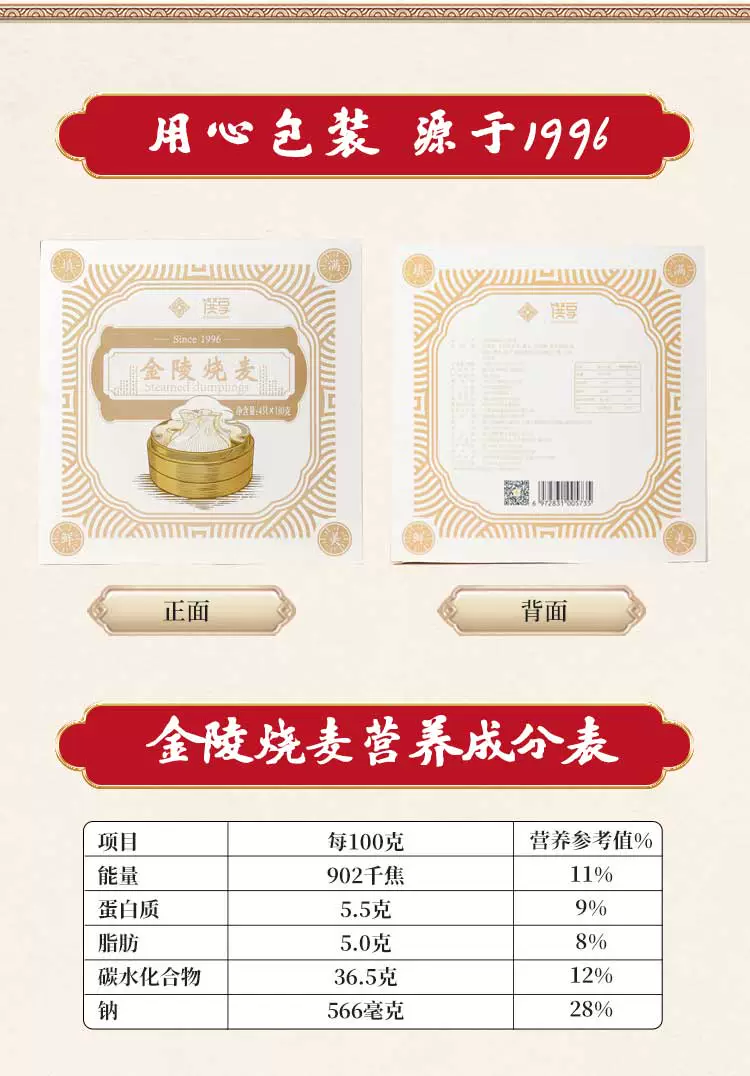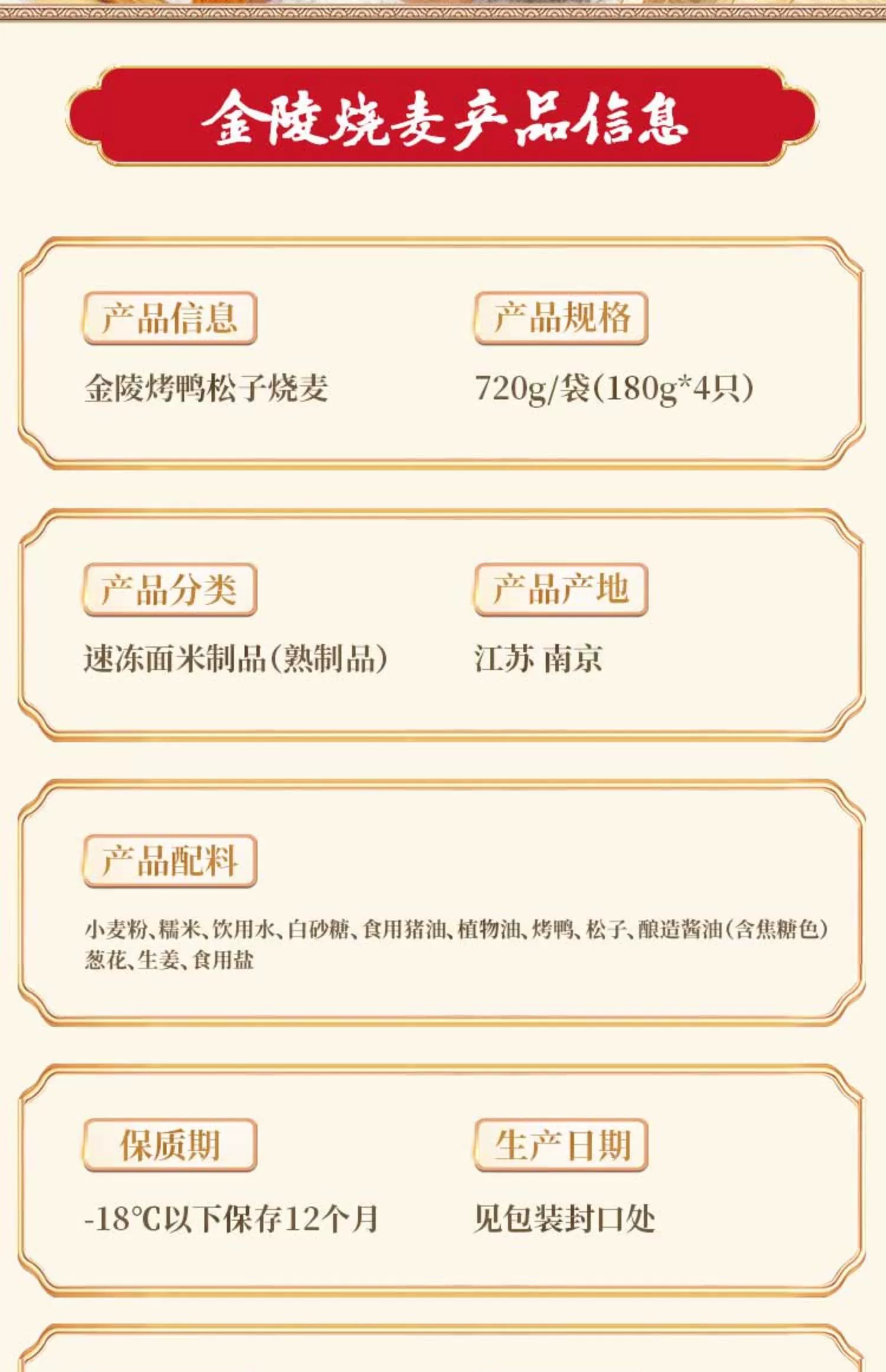 南京金陵饭店出品 金陵烤鸭松子烧麦180g*4只/盒*4盒