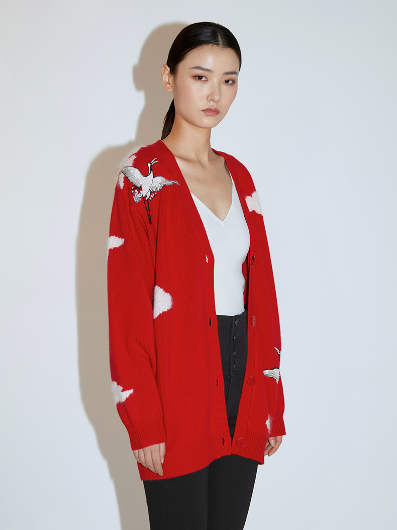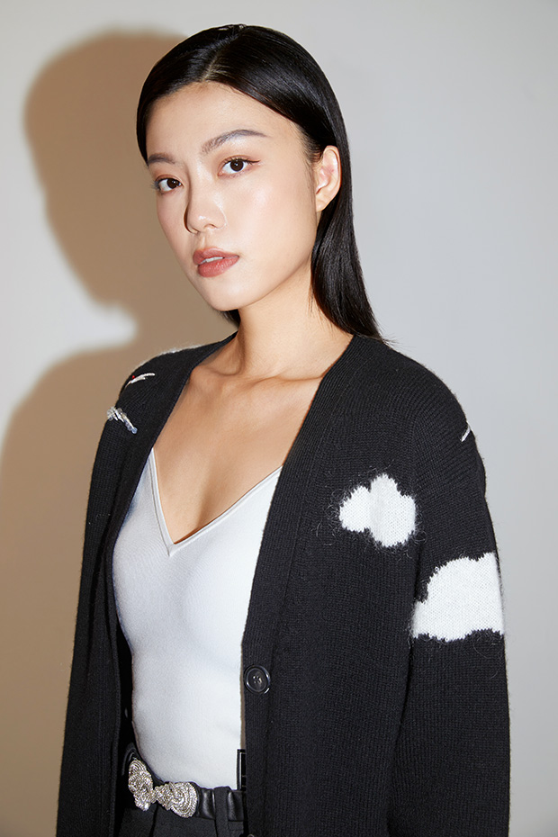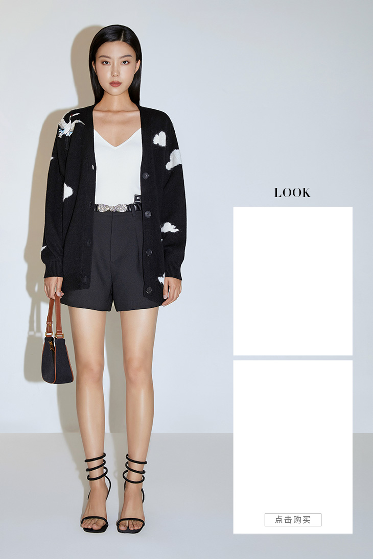 V领开衫版型,修饰脸部线条,展现优雅知性气质