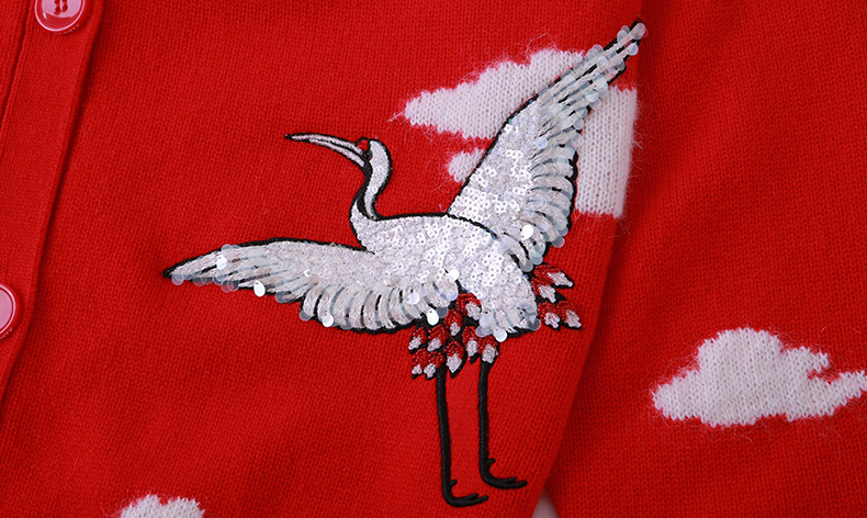多层次钉珠、刺绣、亮片工艺,打造姿态高雅仙鹤,做工精致寓意长寿吉祥