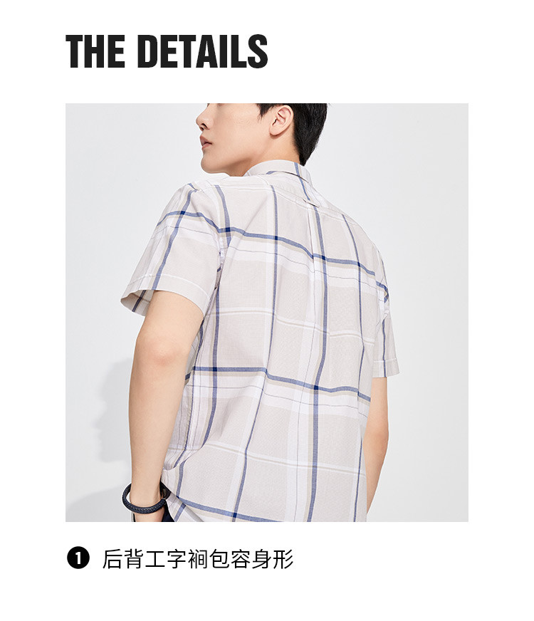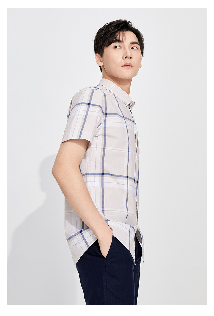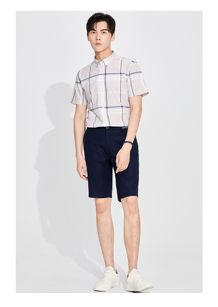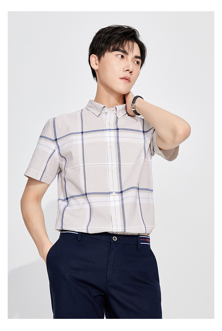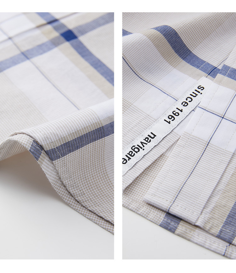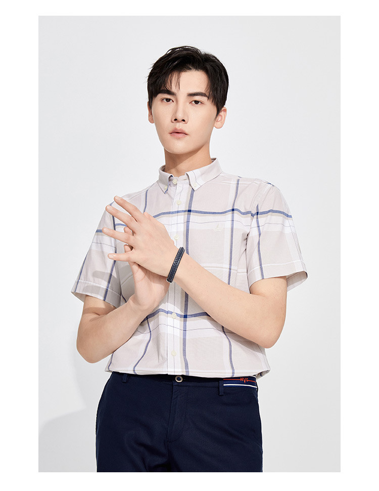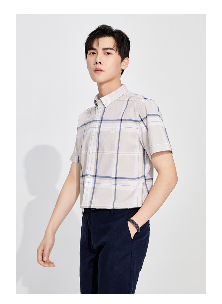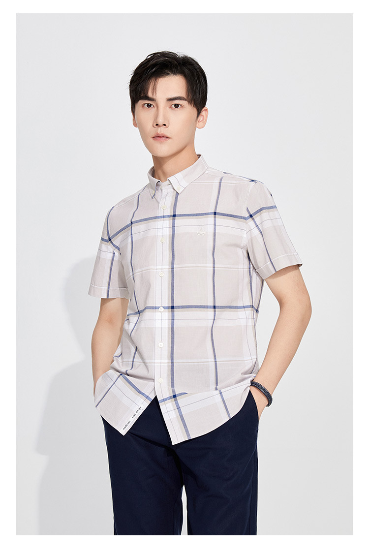 纳维凯尔Navigare意大利小帆船 春夏弹力舒适透气格纹时尚清新衬衣男士短袖衬衫1123574206
