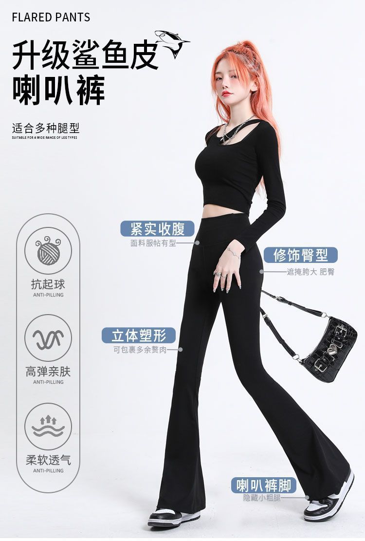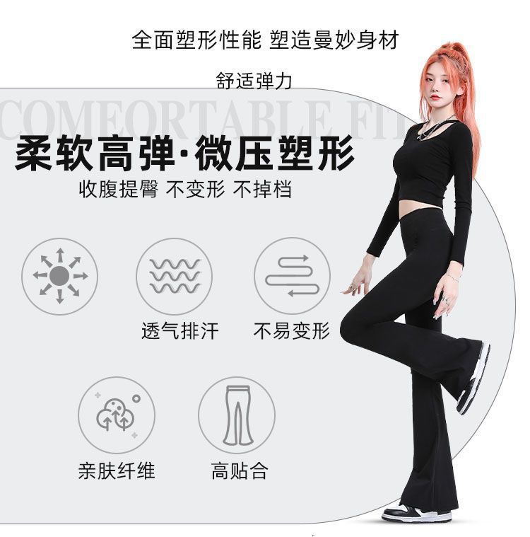 【秒杀❗️33.9/件🔥鲨鱼微喇裤】秒显超模腿,打造“腰臀比”黄金比例,舒适高腰弹力收腹不紧绷,夏季黑色喇叭裤薄款外穿九分垂感高腰瑜伽裤L