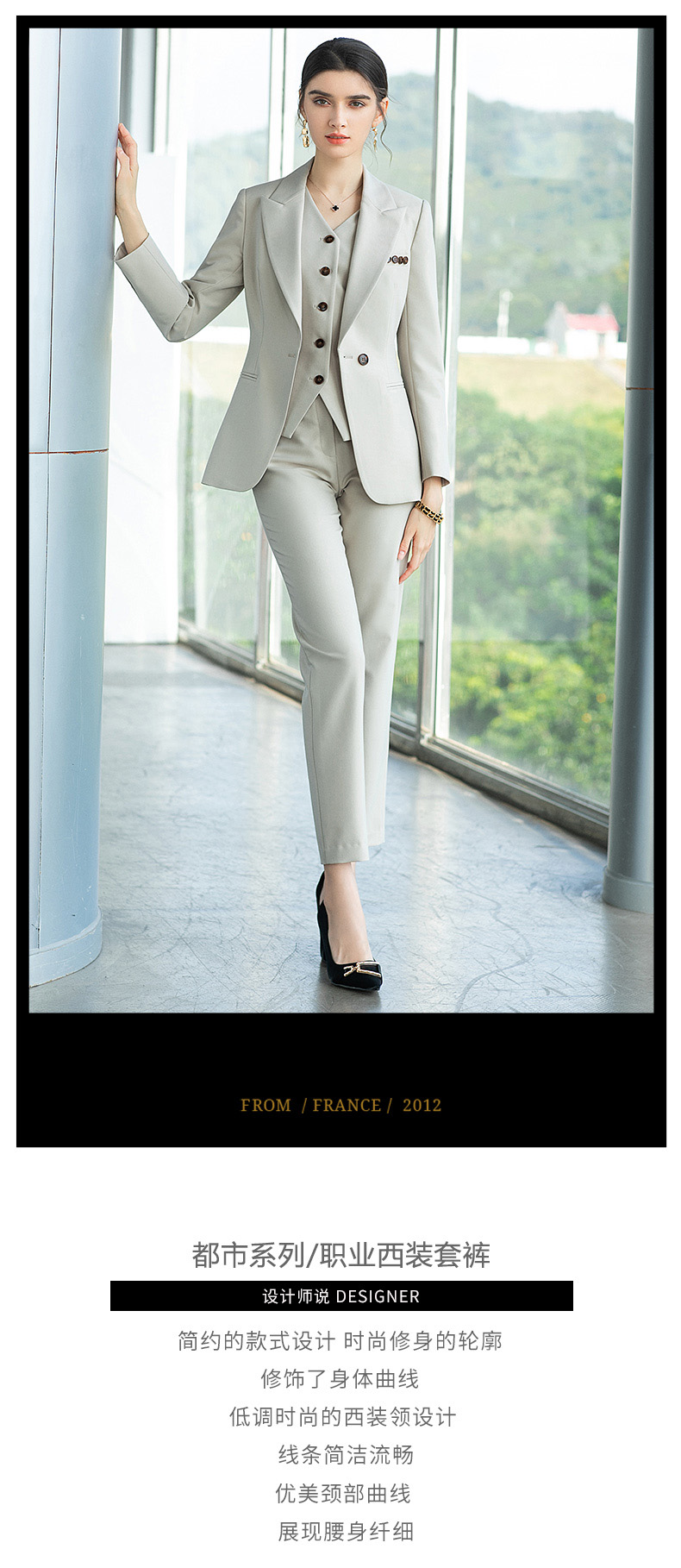 IWY/米色杏色都市时尚设计感职业女士西装套装三件套工作服上班职业装马甲CPM1486