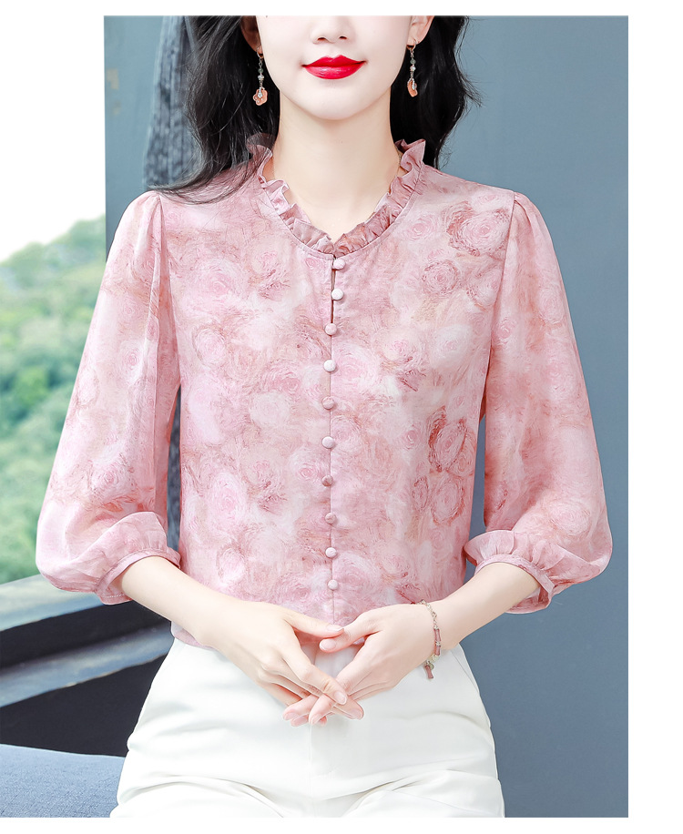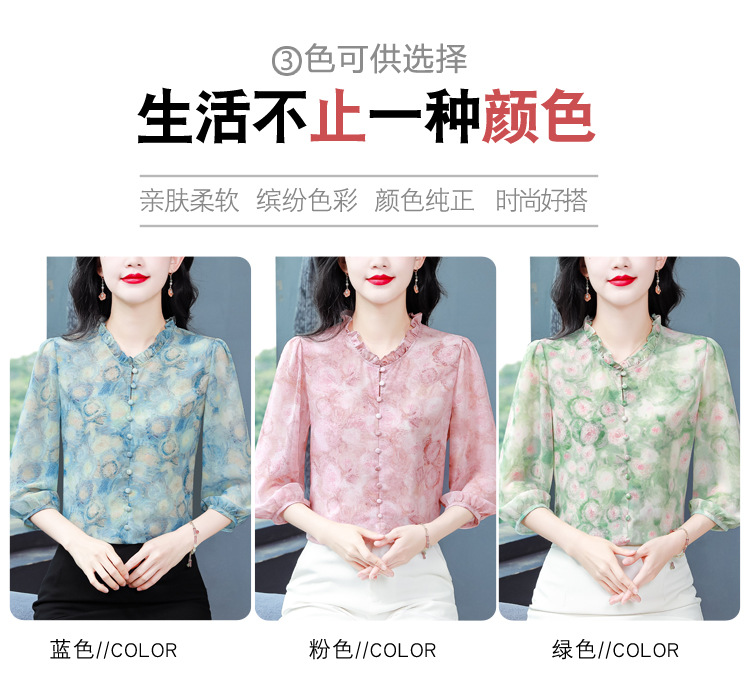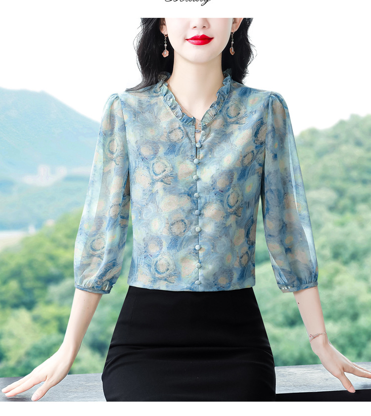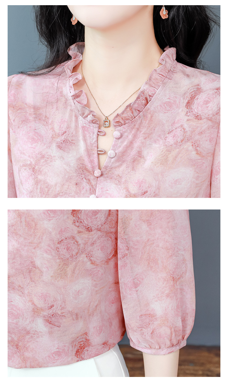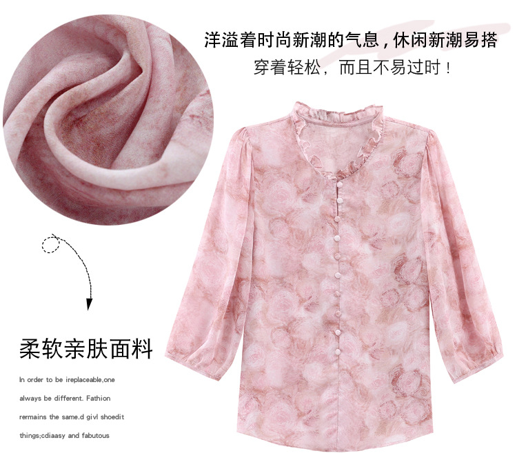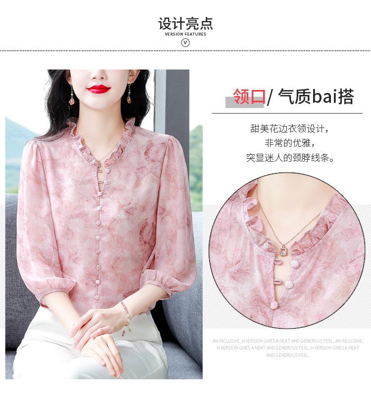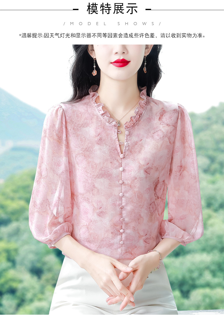 百搭拼接衬衫七分袖荷叶领雪纺衬衣K-E261N2364