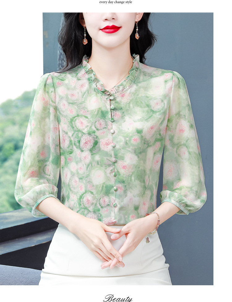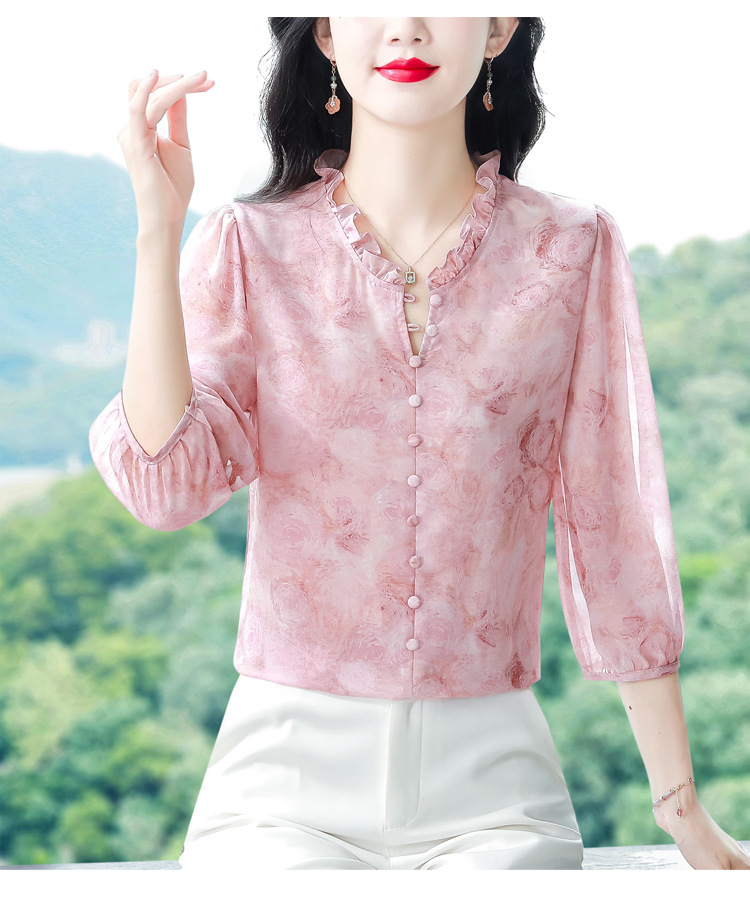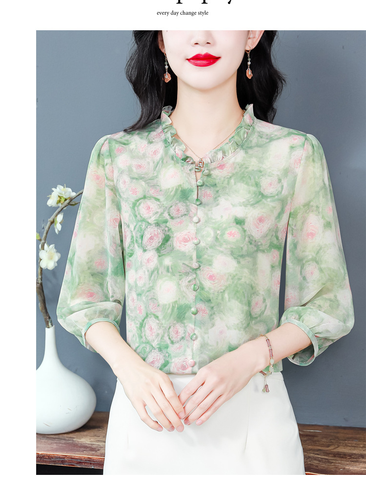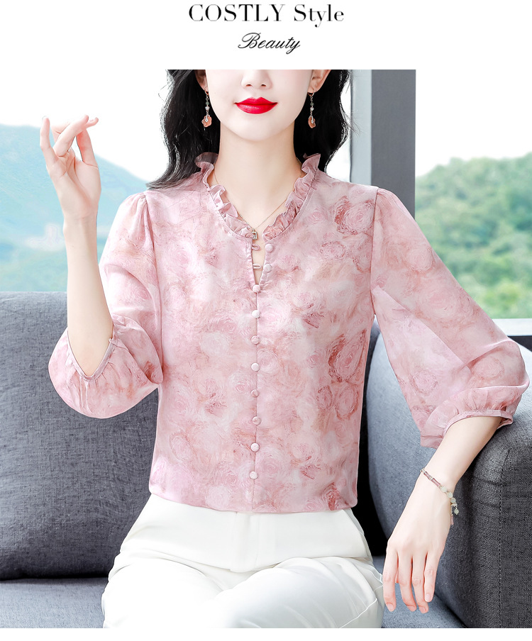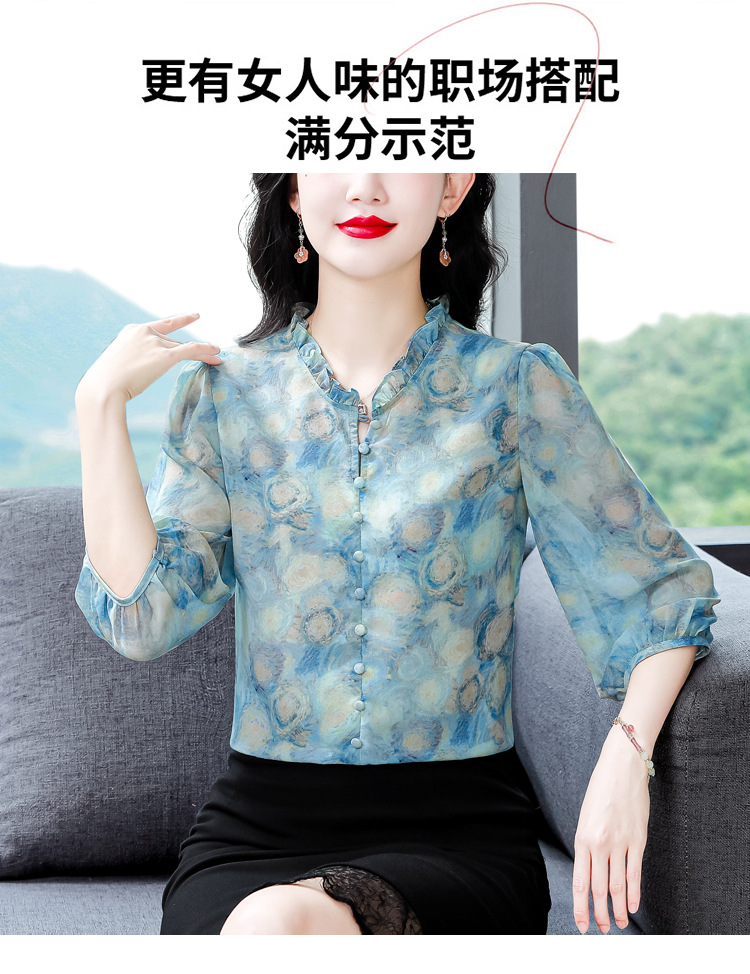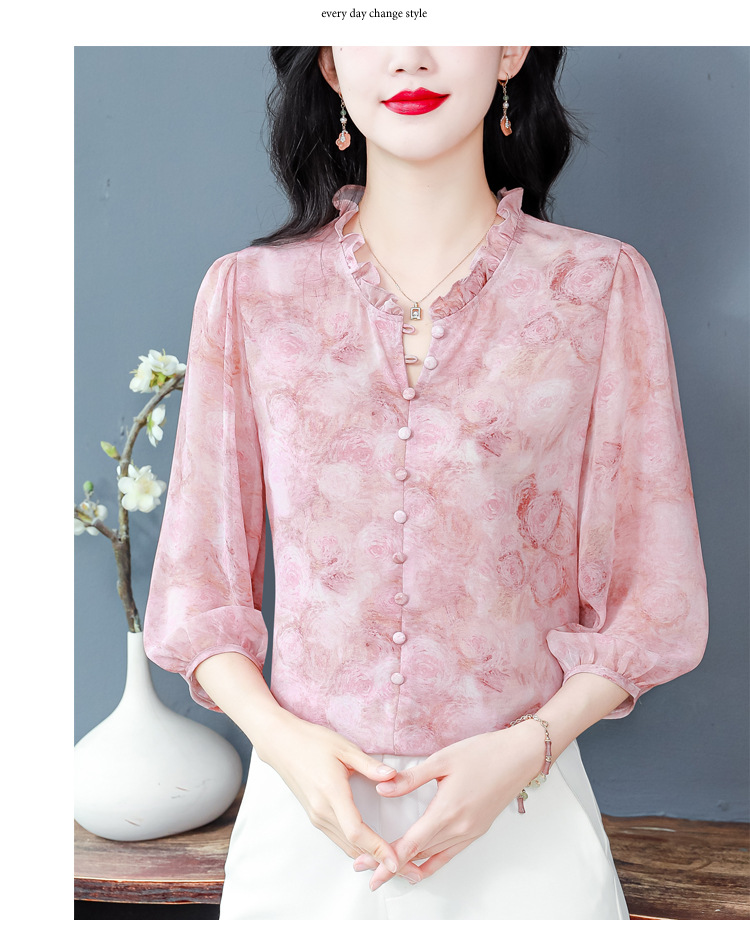 百搭拼接衬衫七分袖荷叶领雪纺衬衣K-E261N2364
