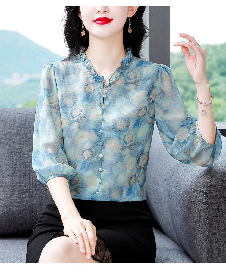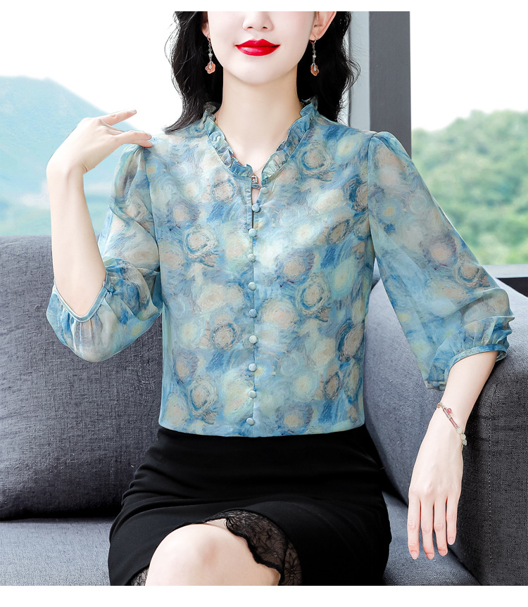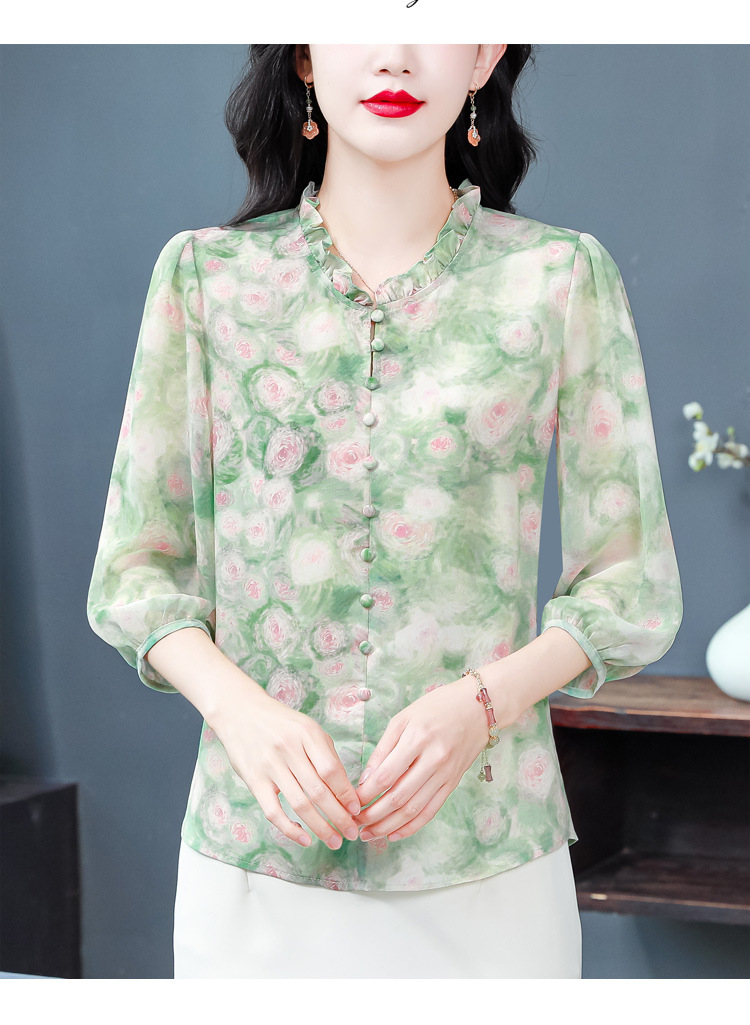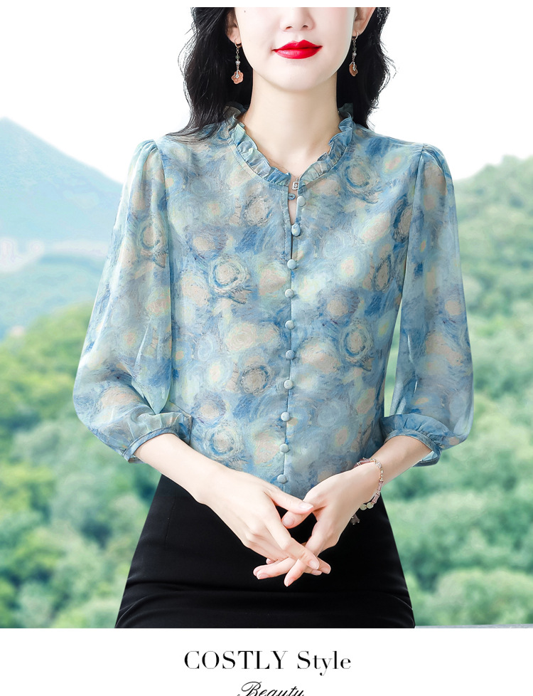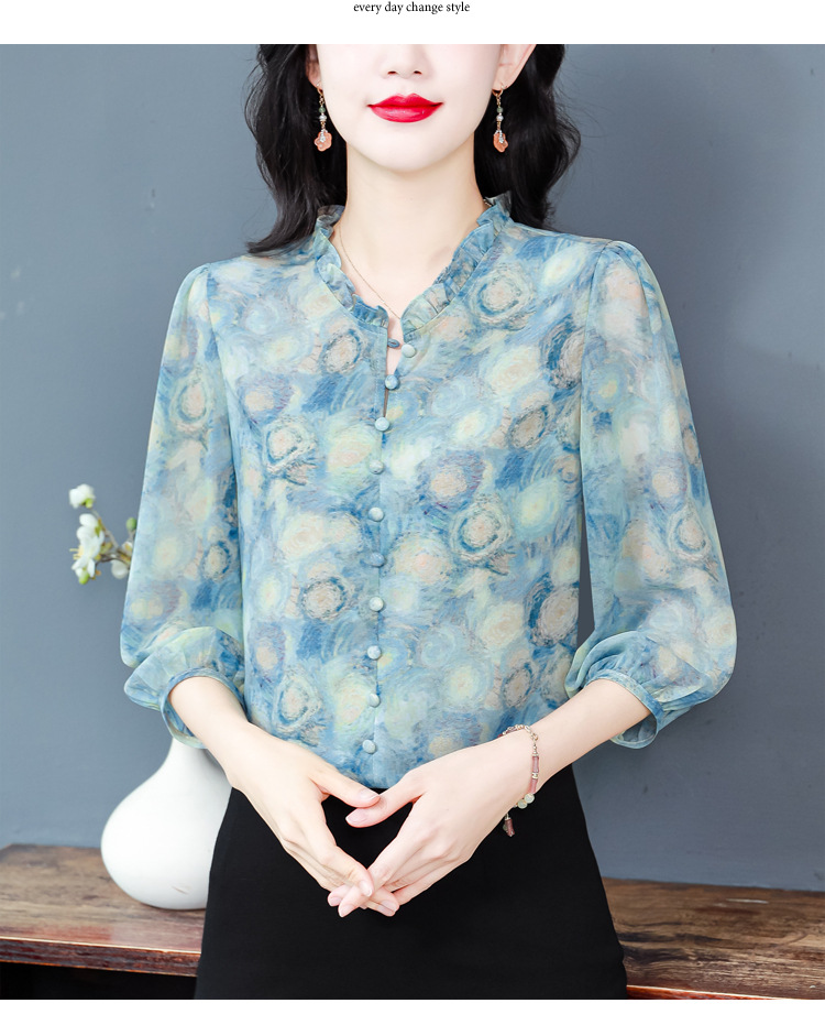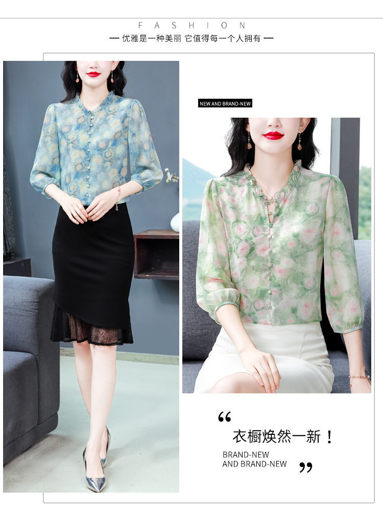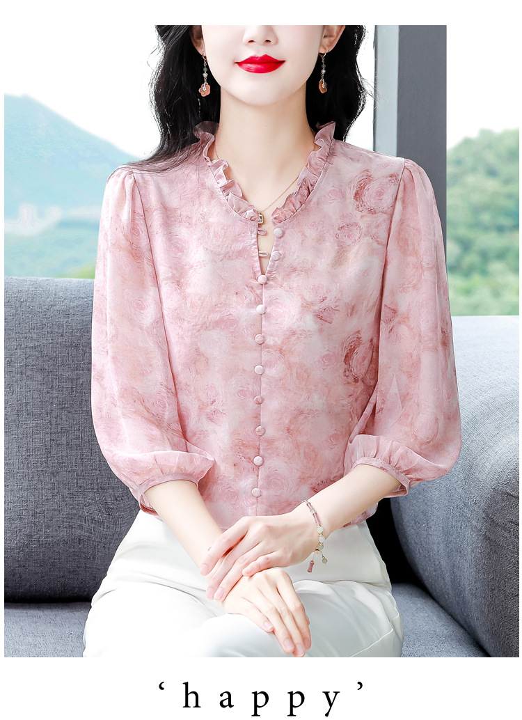 百搭拼接衬衫七分袖荷叶领雪纺衬衣K-E261N2364