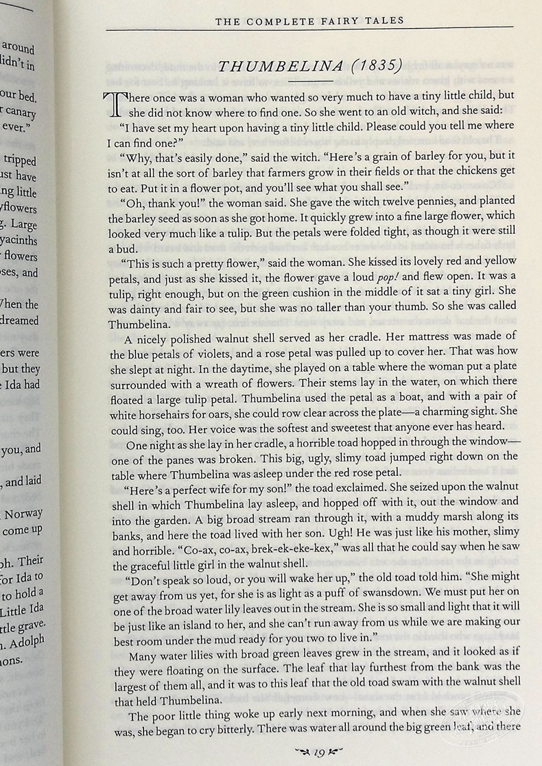 All the best-loved fairy tales of Hans Christian Andersen, including "The Ugly Duckling," "Thumbelina," "The Red Shoes," "The Princess on the Pea," and "The Emperor's New Clothes," fill the pages of this beautiful leather-bound collector's edition. Also included is "The Tallow Candle" -- one of the earliest stories written by Andersen, just discovered recently! With both short and long anecdotes, this is a great book of bedtime stories or for rainy-day reading. The attached bookmark ribbon ensures readers will never lose their place as they wander through the imagination of one of the most popular children's writers of all time.