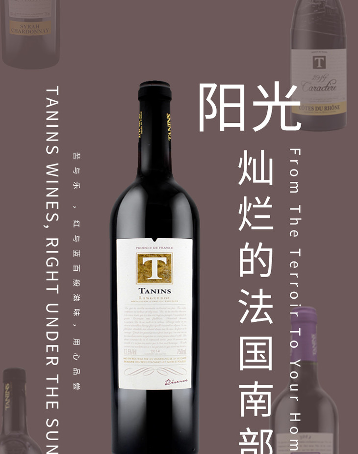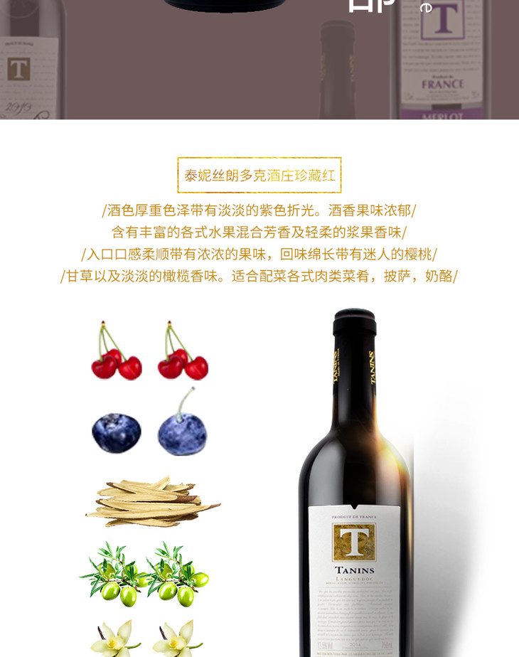 法国原瓶进口红酒 泰妮丝朗多克酒庄珍藏红葡萄酒Tanins Languedoc AOP Reserve 单支装750ml