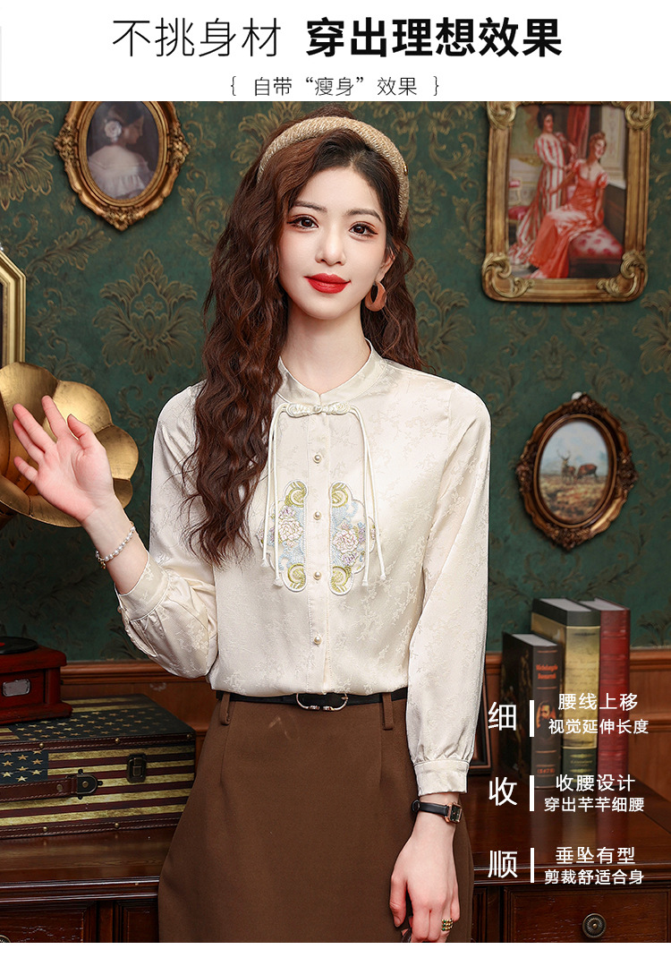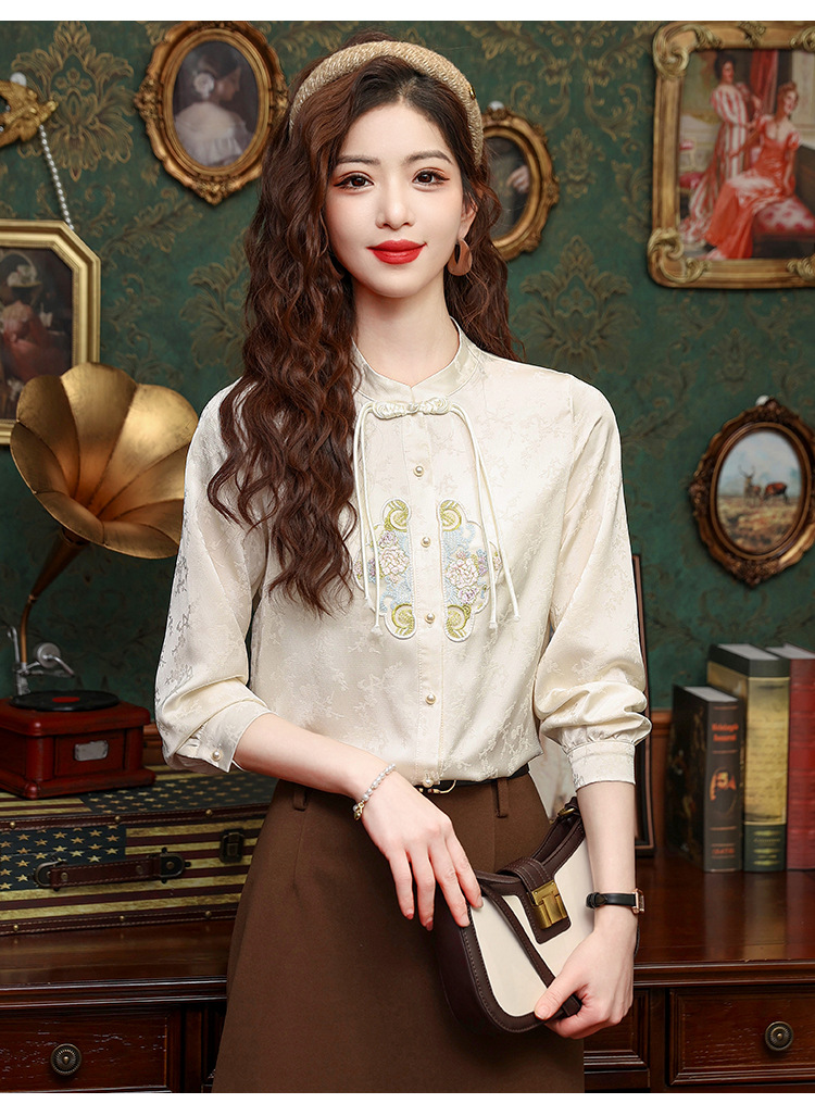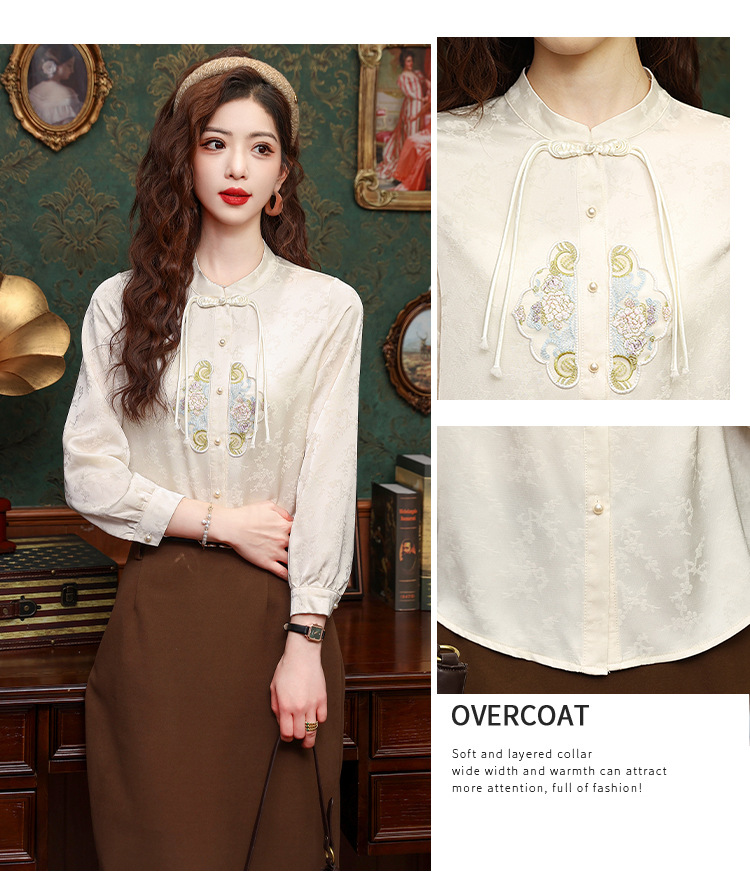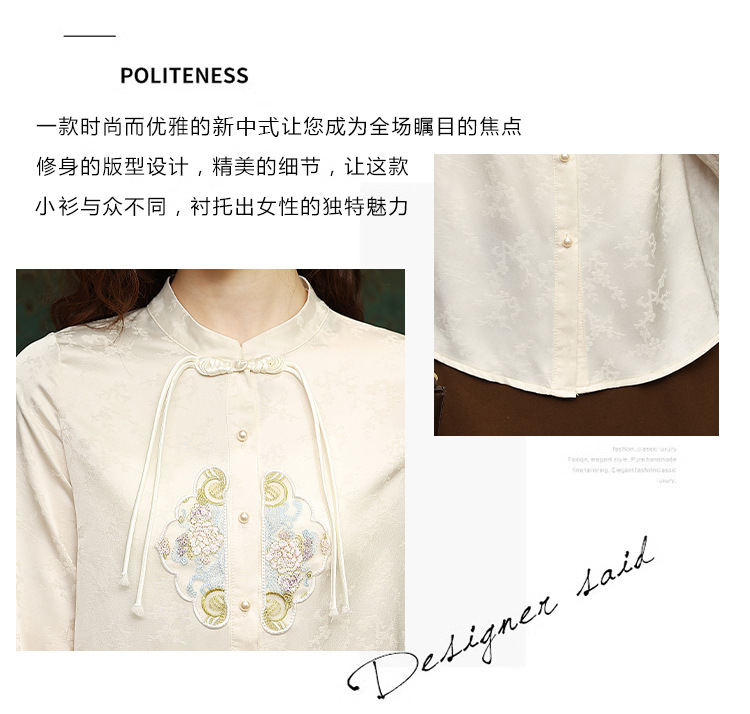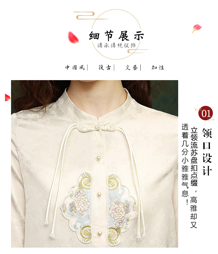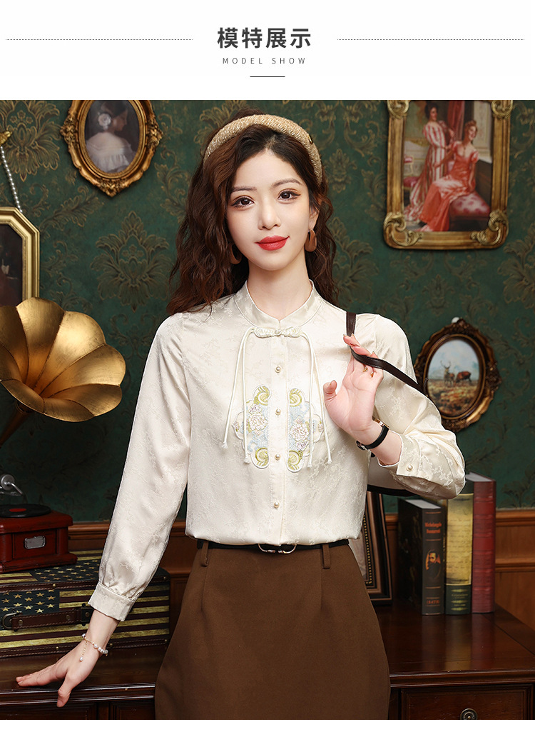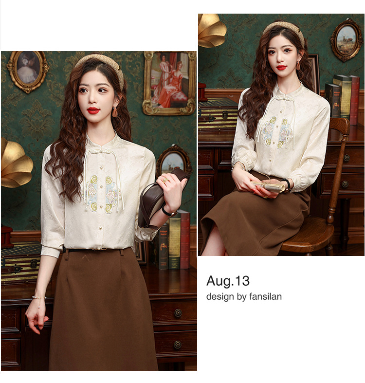 新中式国风刺绣拼接衬衫,高级感复古盘扣小衫KQL-A10F531