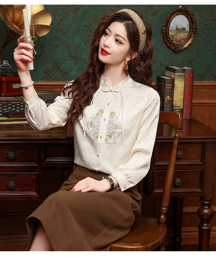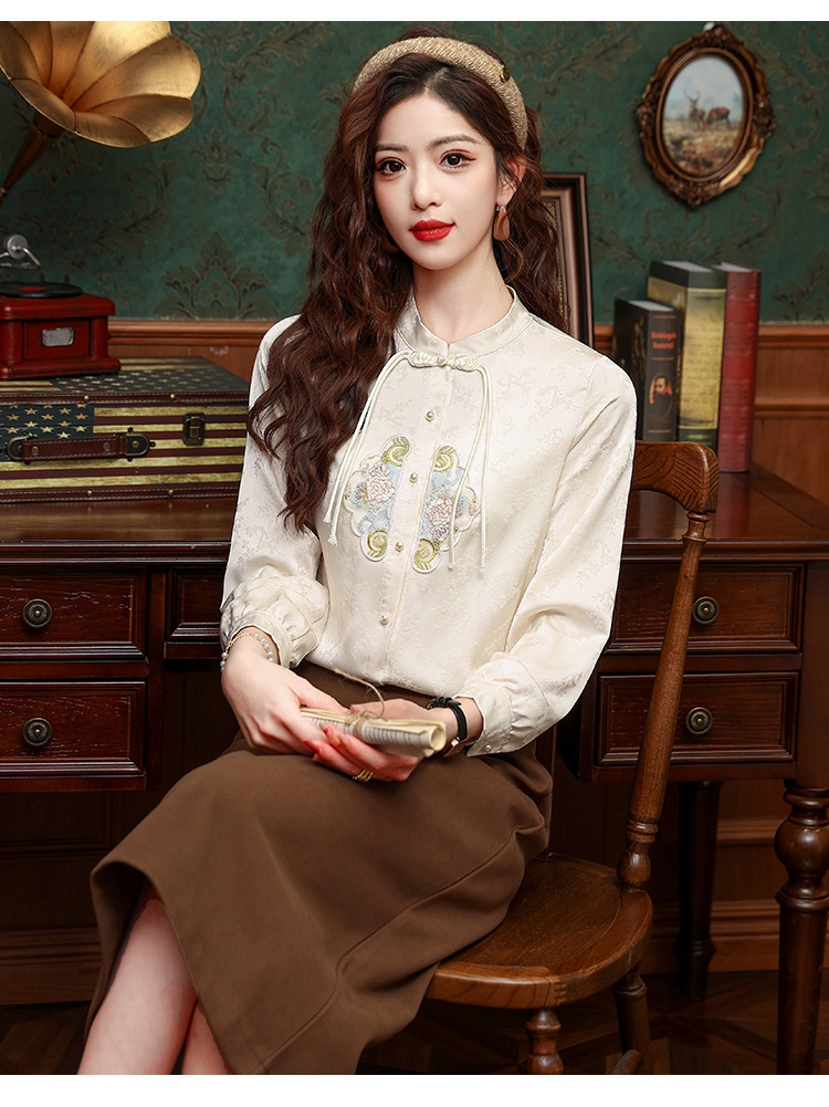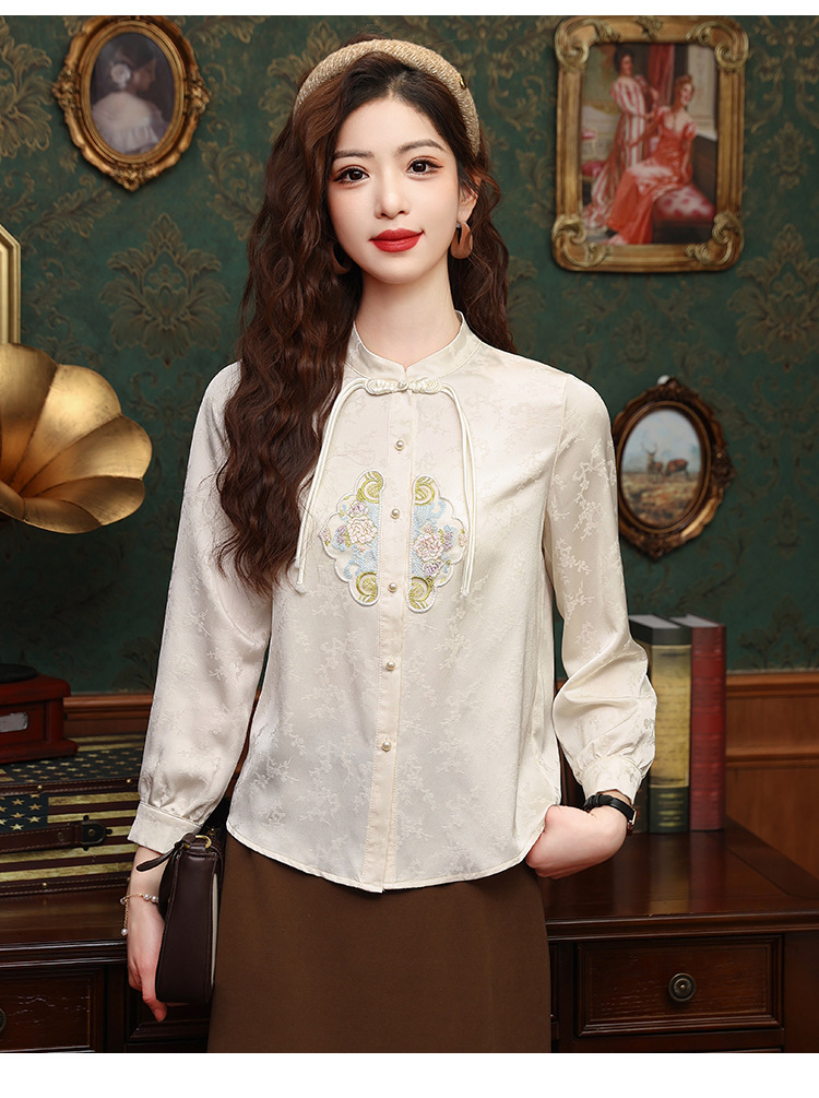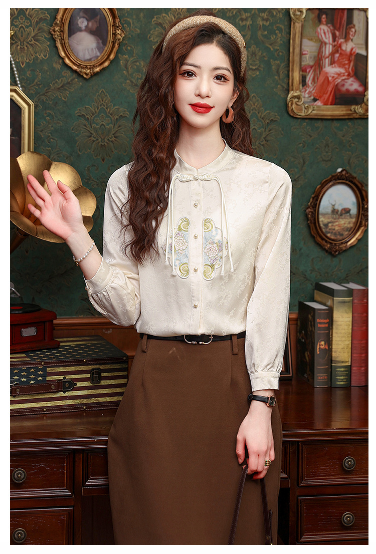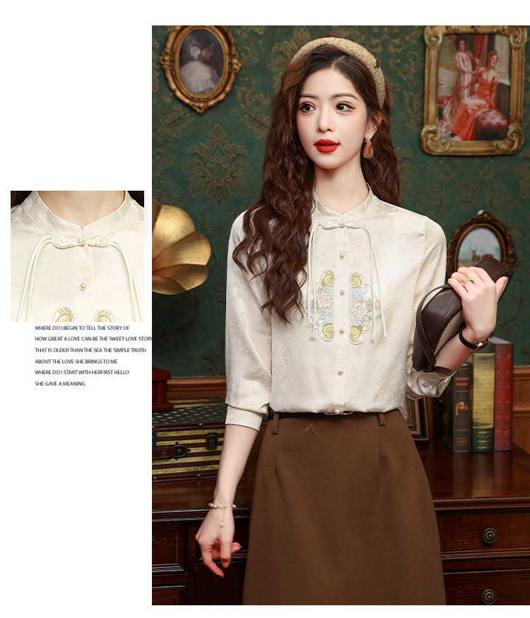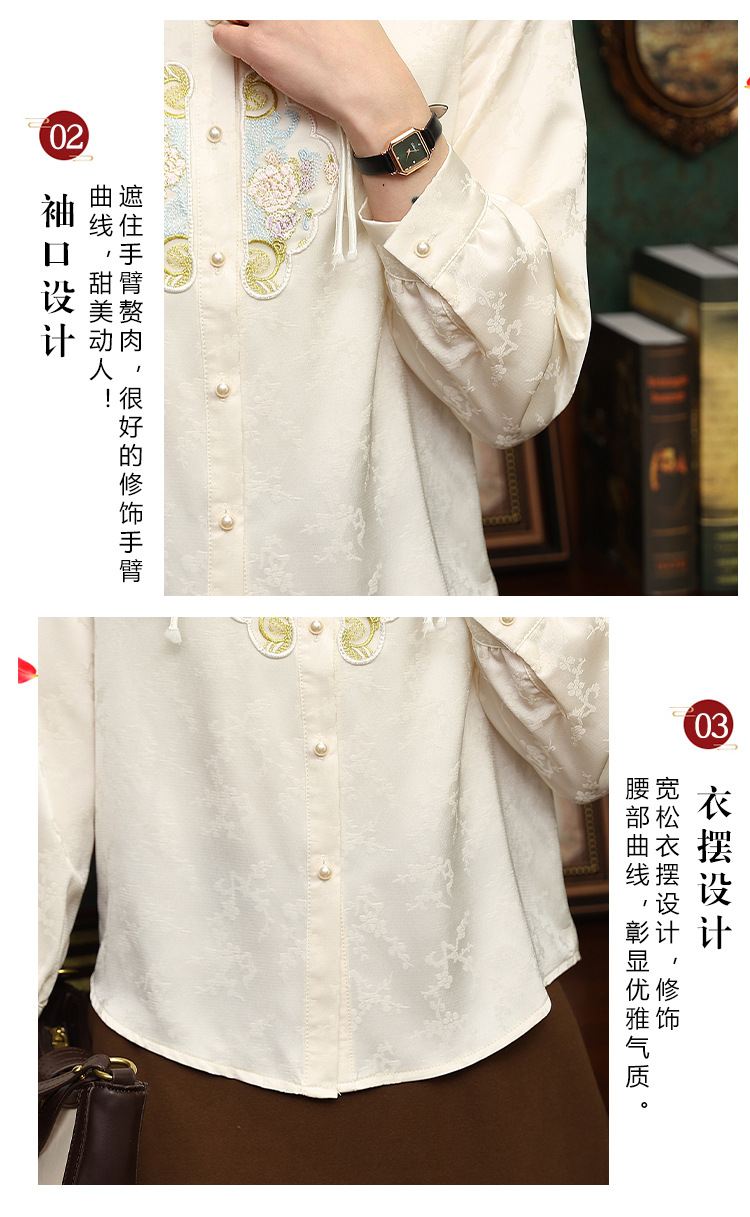 新中式国风刺绣拼接衬衫,高级感复古盘扣小衫KQL-A10F531