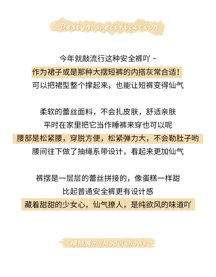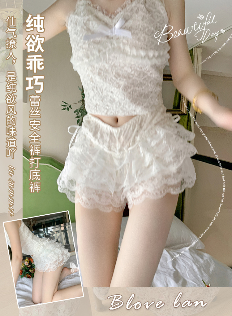 【五层蕾丝纯欲安全裤】防走光可外穿 夏季冰丝南瓜裤 遮挡三角区打底短裤 清透雪纺仙气飘飘 手感顺滑轻肤