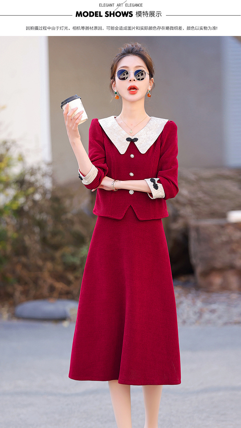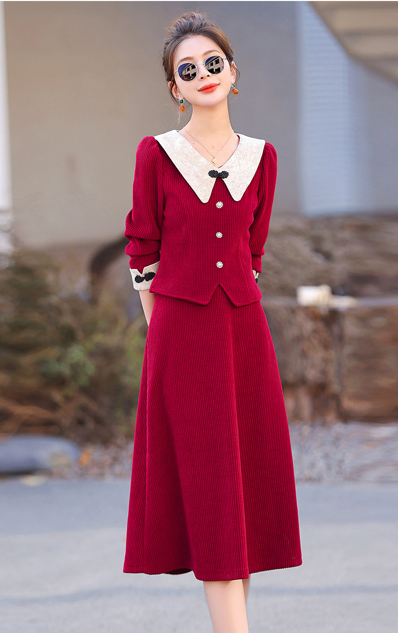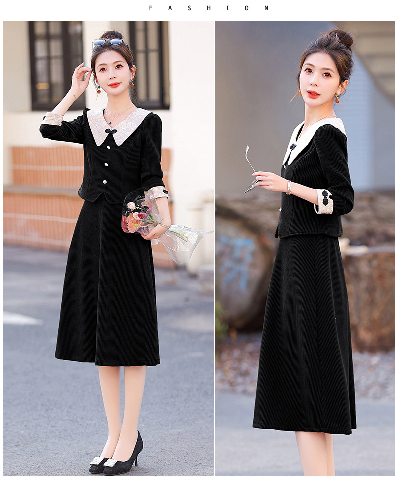 新款秋冬,女新中式国风两件套装年轻款少女改良旗袍马甲民国风GSJ-3522