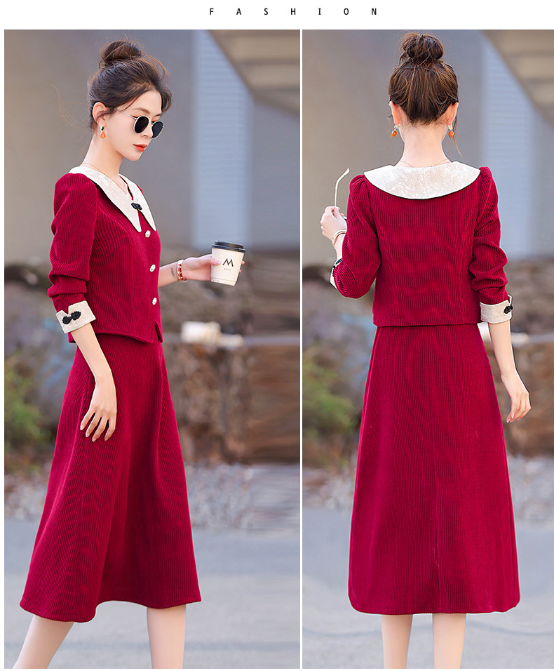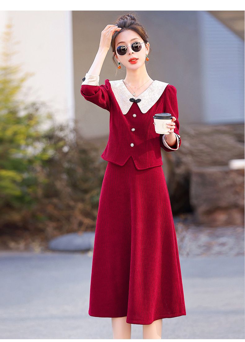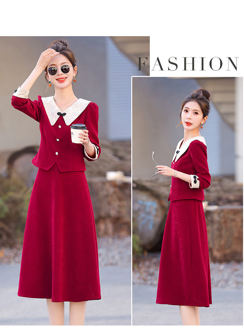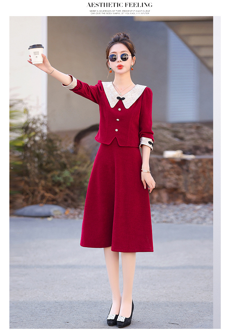 新款秋冬,女新中式国风两件套装年轻款少女改良旗袍马甲民国风GSJ-3522