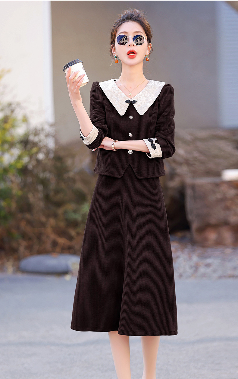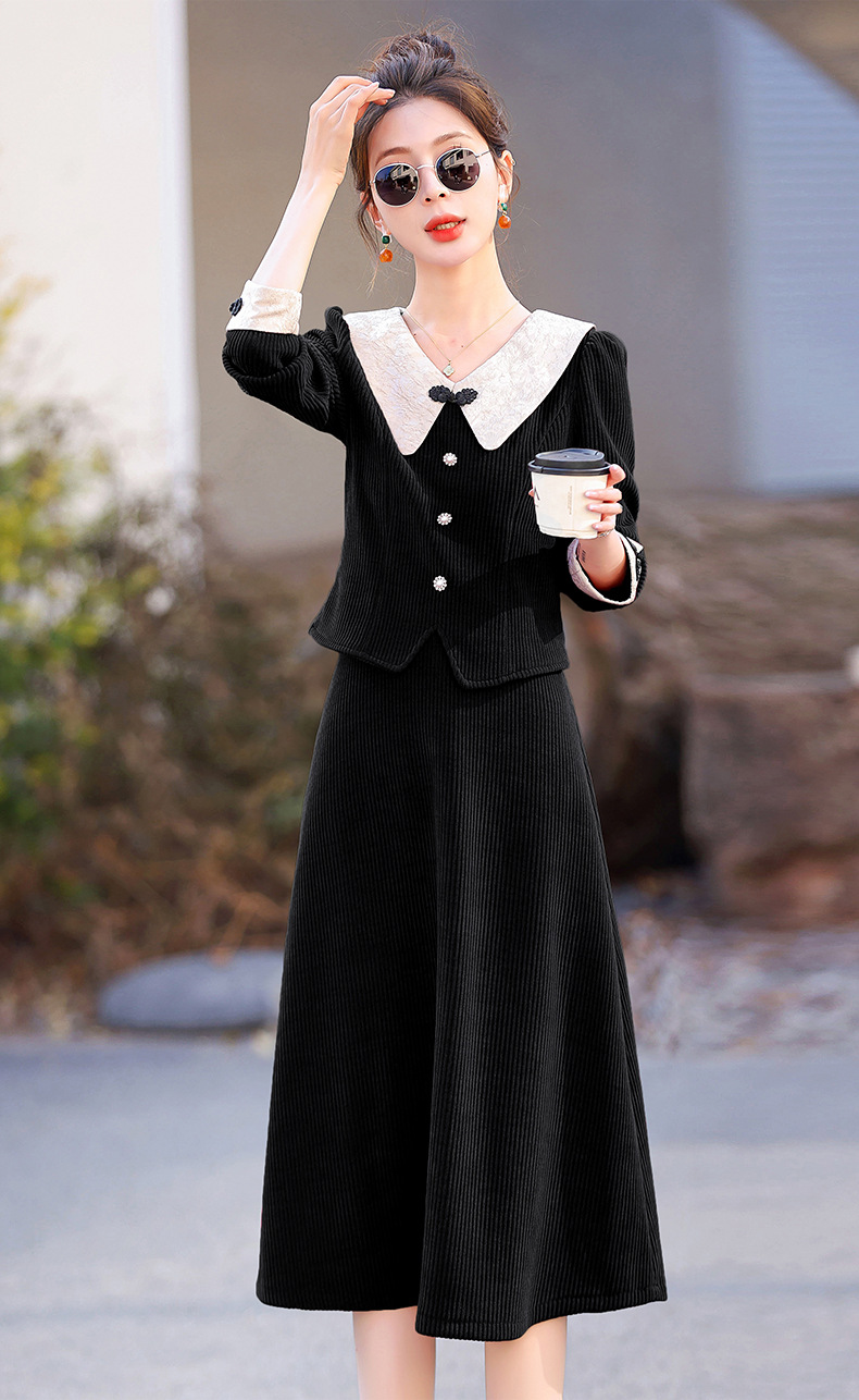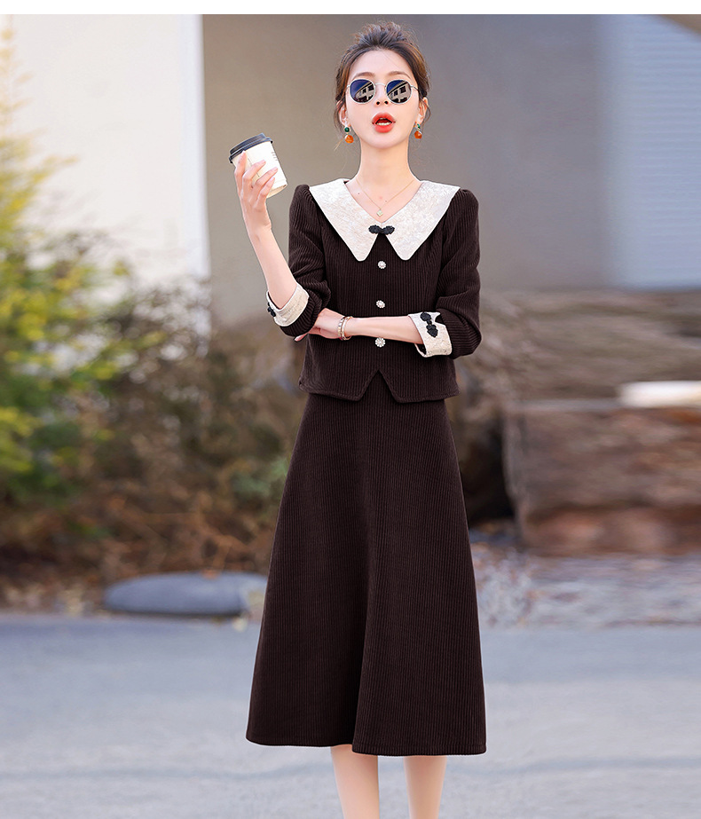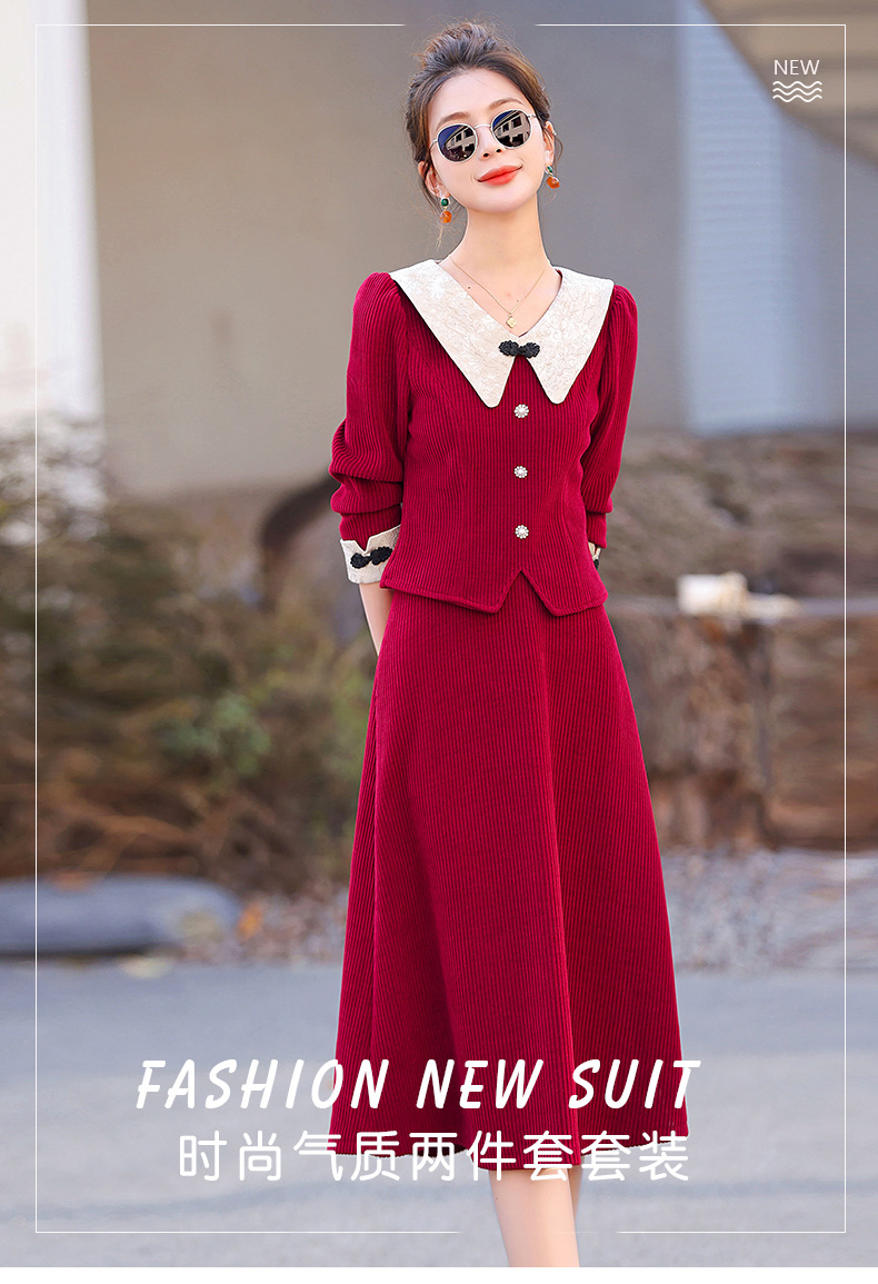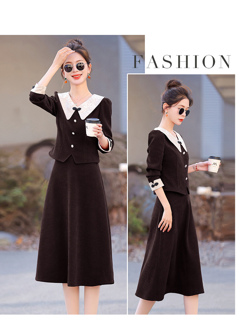 2024秋装潮流盘扣修身松紧腰套装套裙HR-XYFS6585