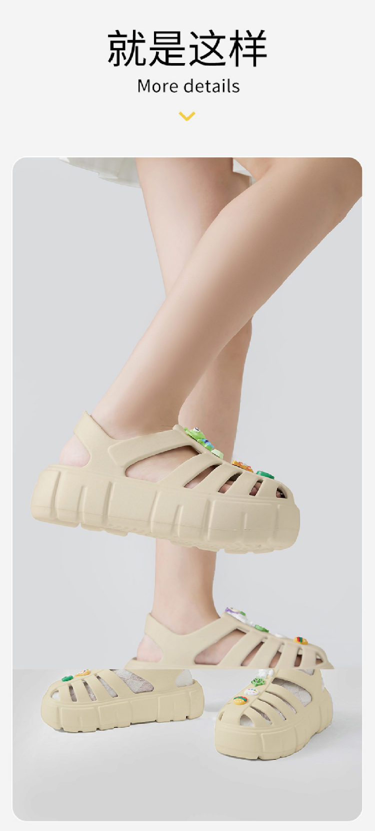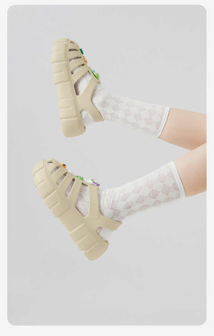【复古罗马拖鞋】新款厚底粗跟包头镂空 复古罗马凉鞋女洞洞花园鞋diy配件凉鞋