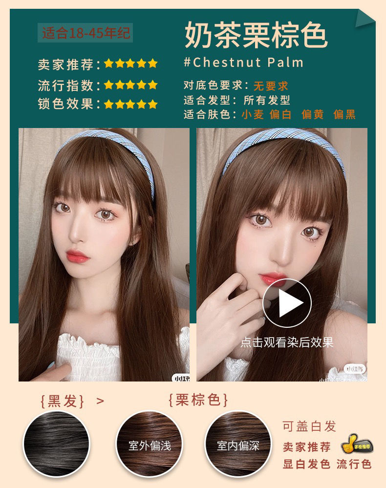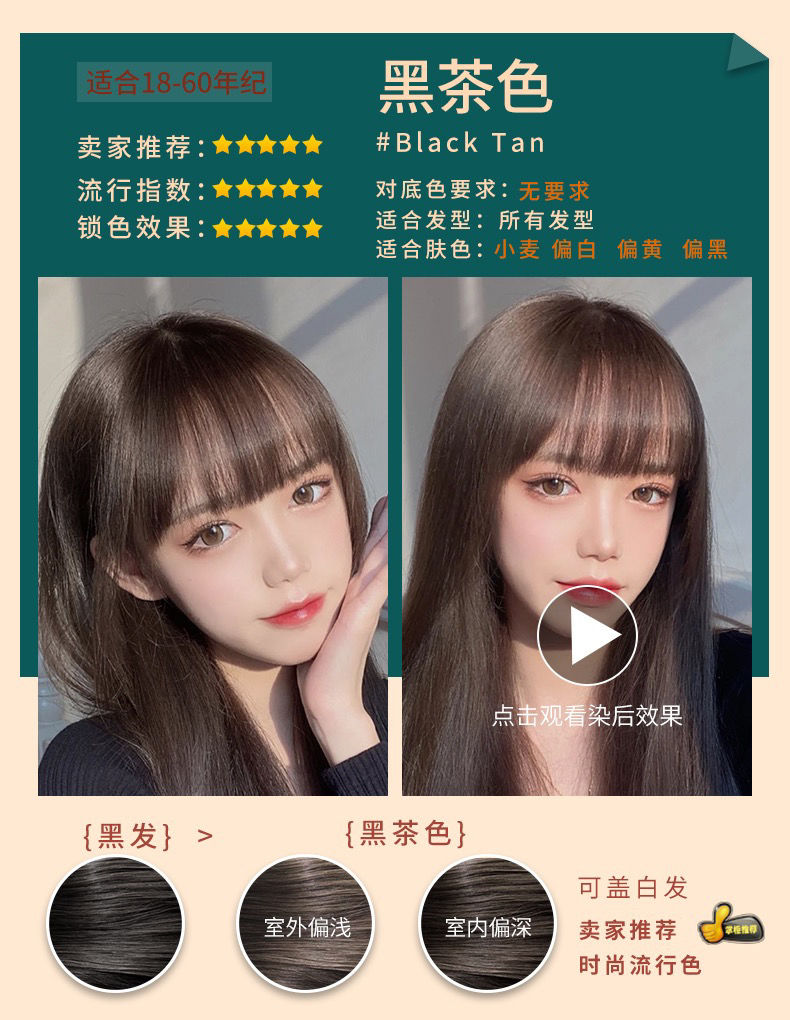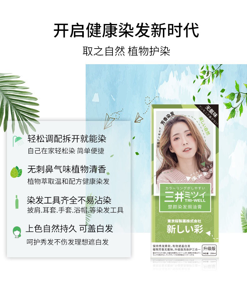 【爆款超低价预售 急单慎拍】日本染发膏2021流行色显白染发剂三井植物纯自己在家黑茶色栗棕色
