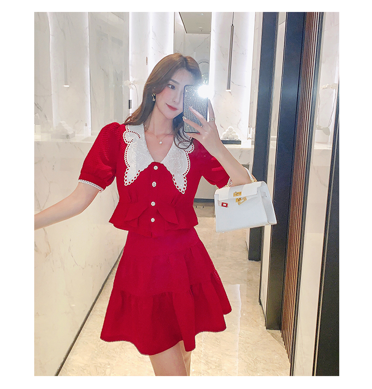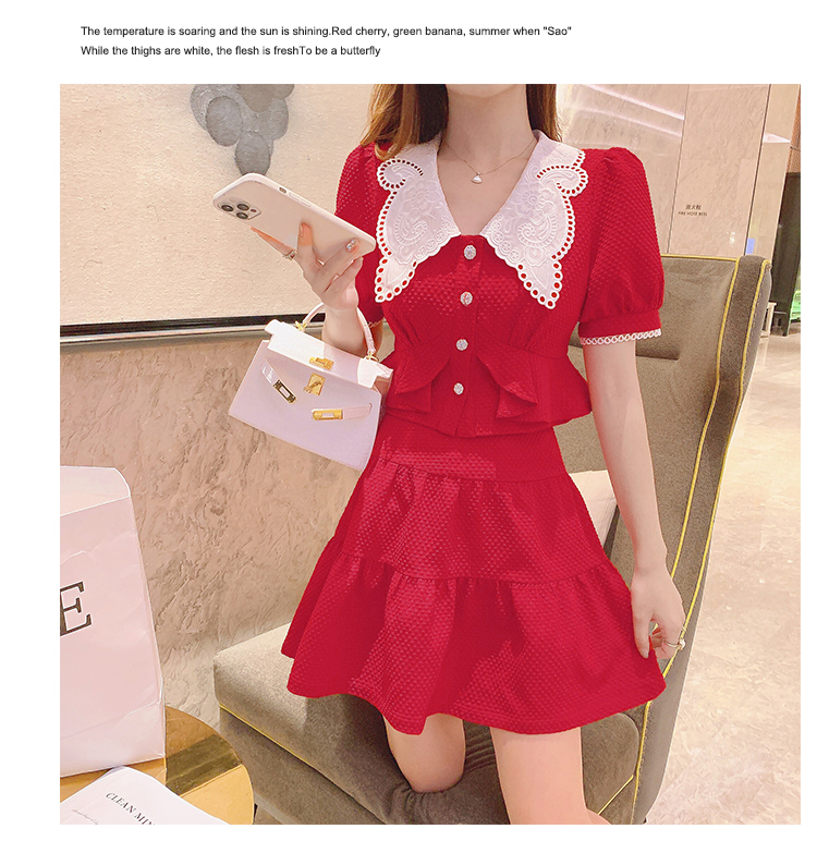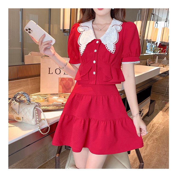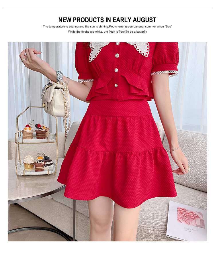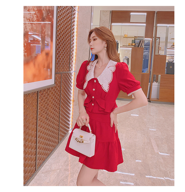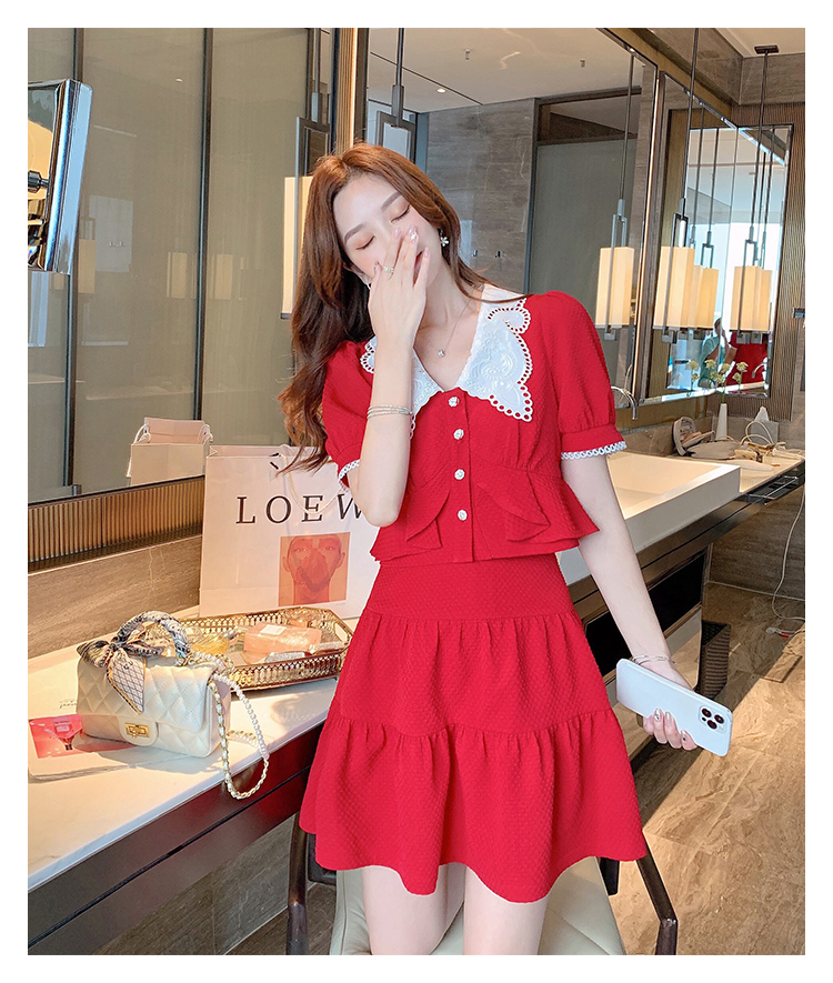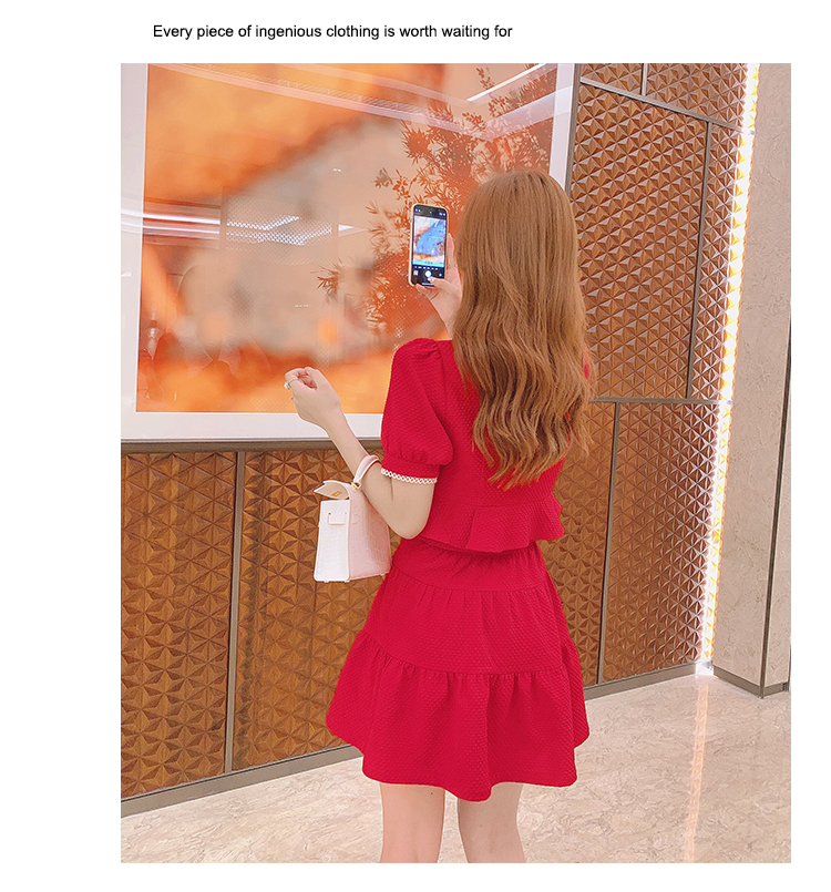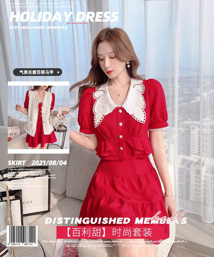 张心子「百利甜」小香风甜美红色套装裙子2021年女夏新款两件套装U210804