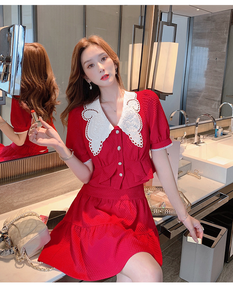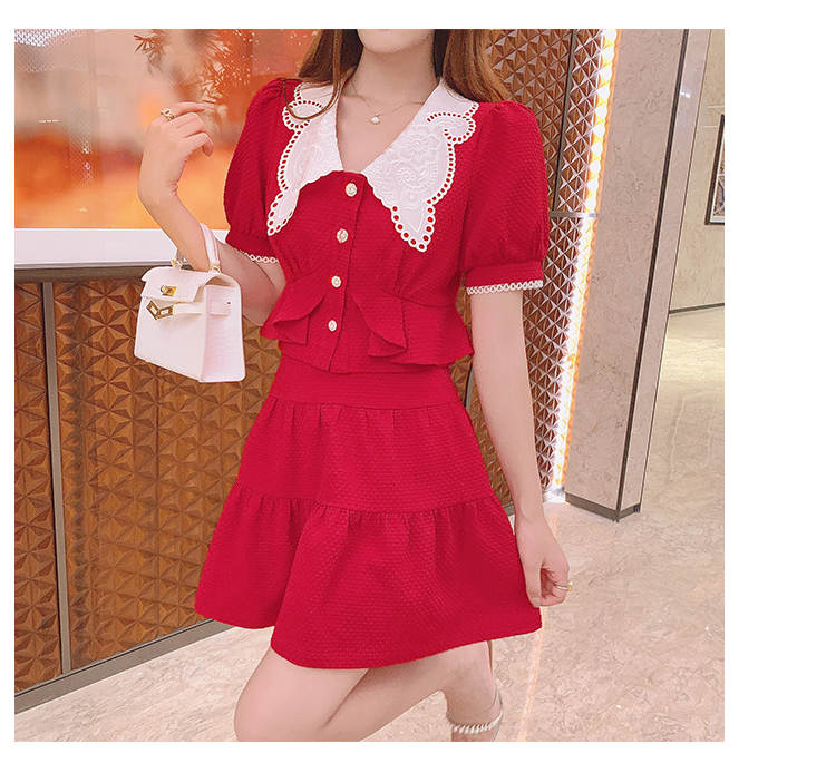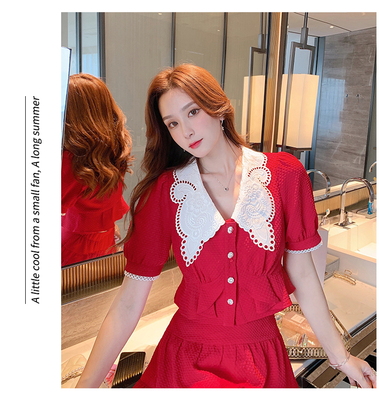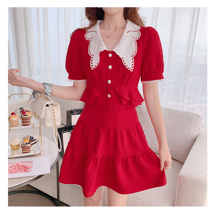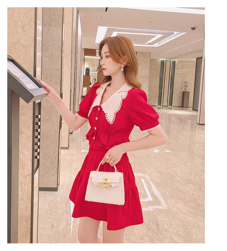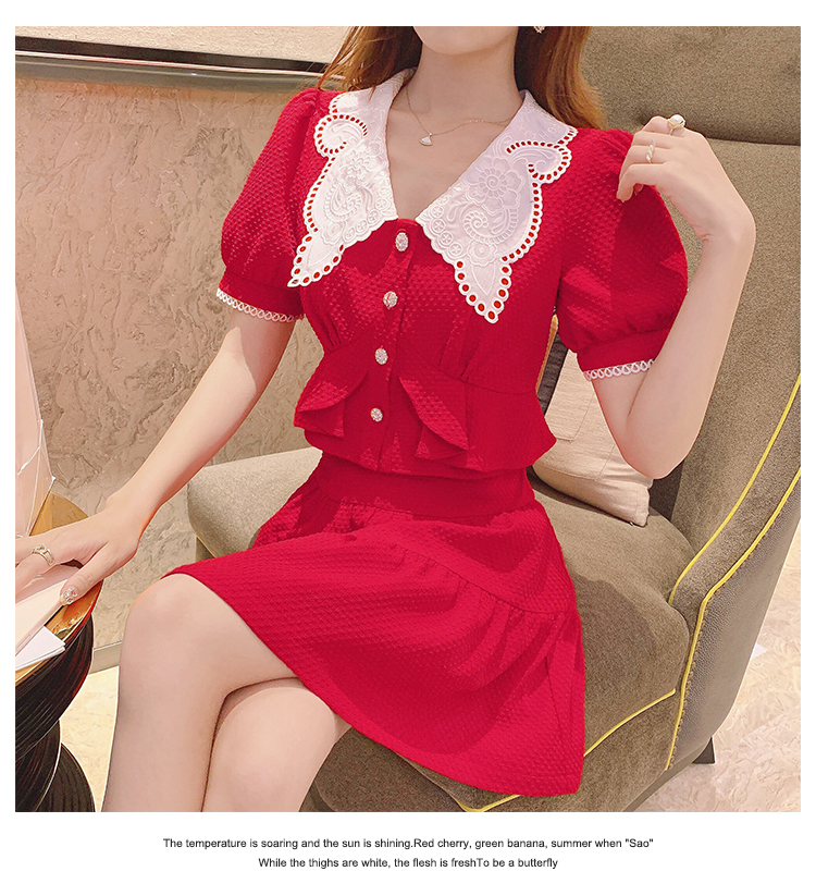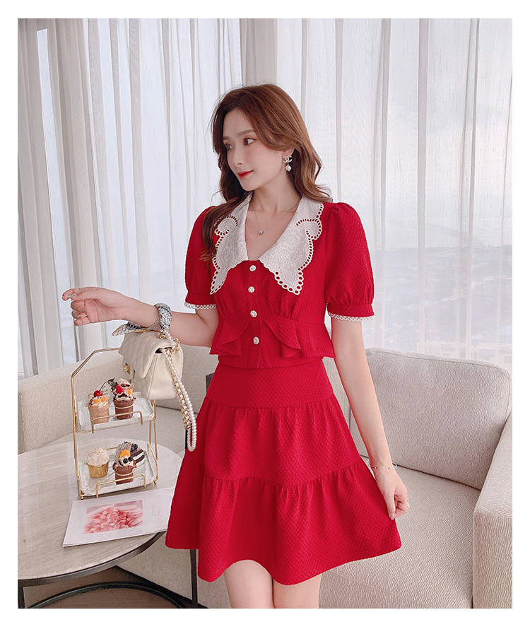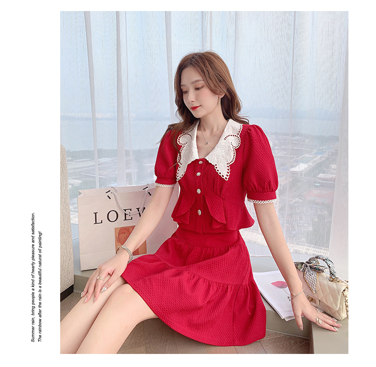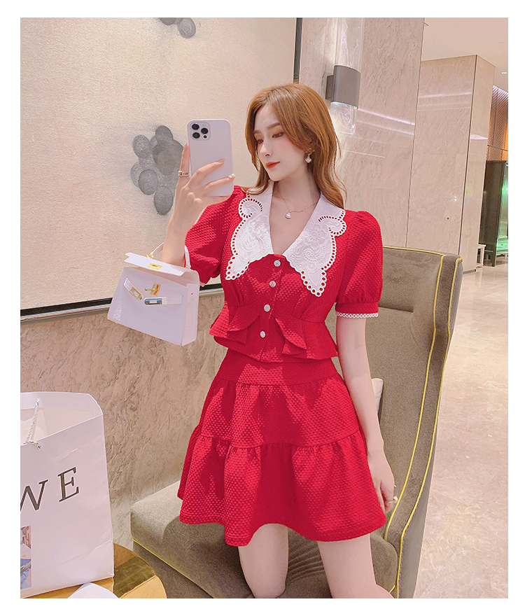 张心子「百利甜」小香风甜美红色套装裙子2021年女夏新款两件套装U210804