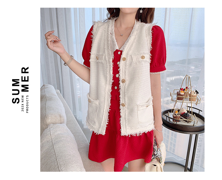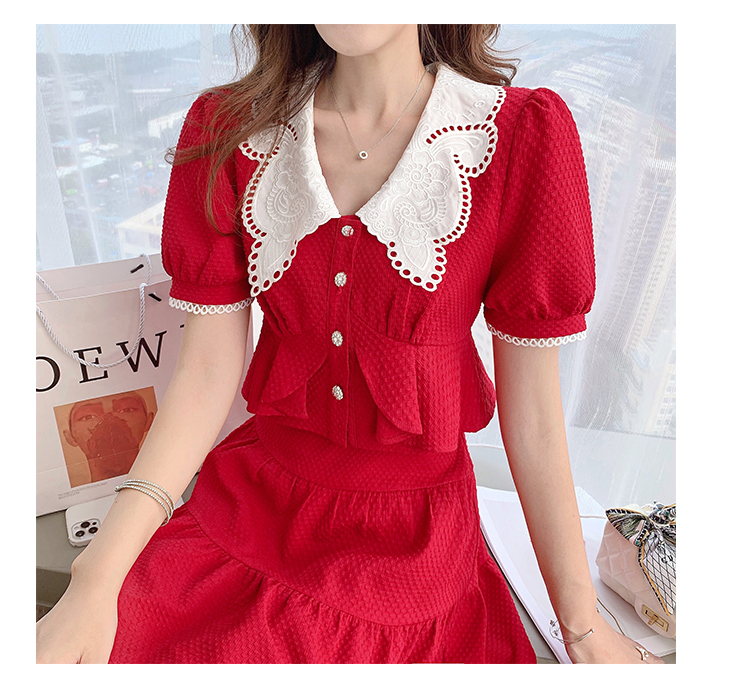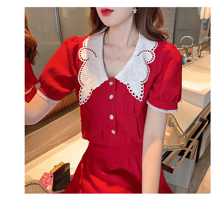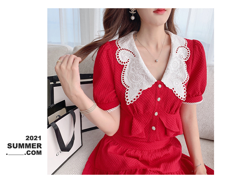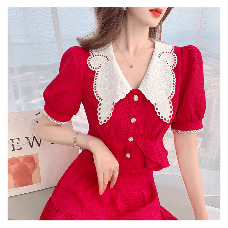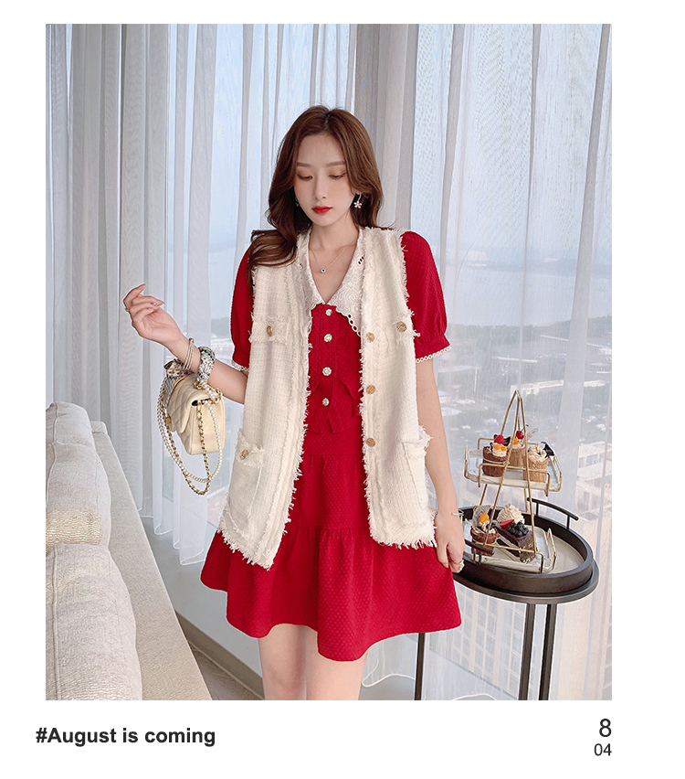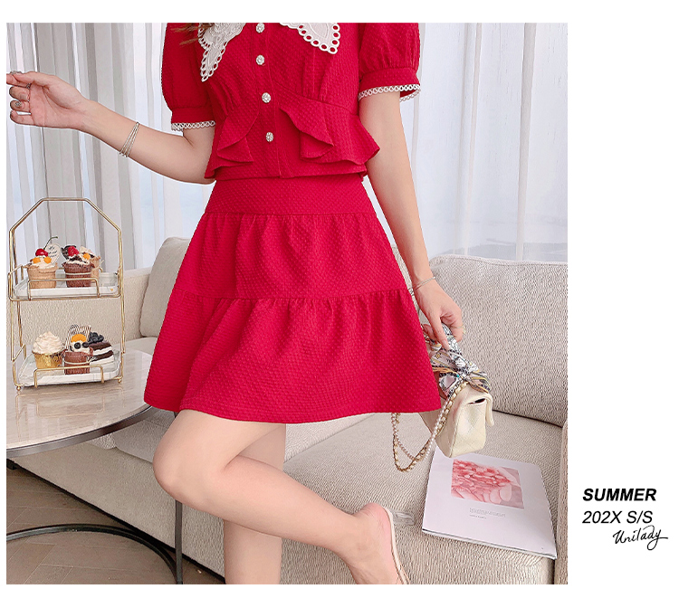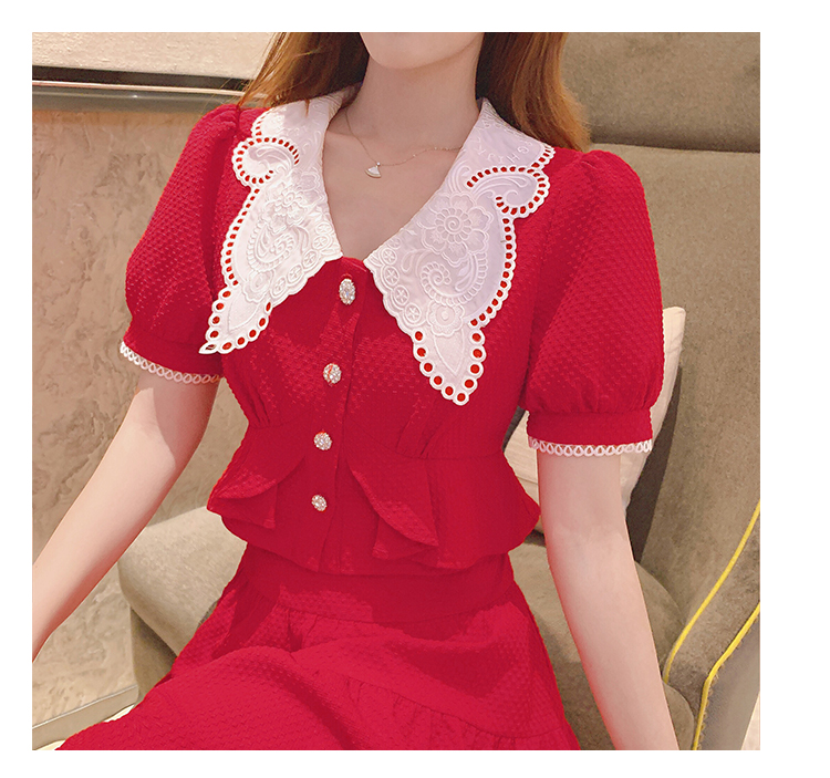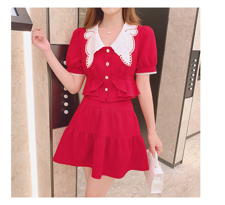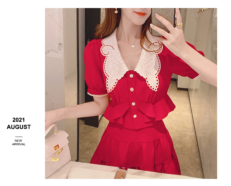 张心子「百利甜」小香风甜美红色套装裙子2021年女夏新款两件套装U210804