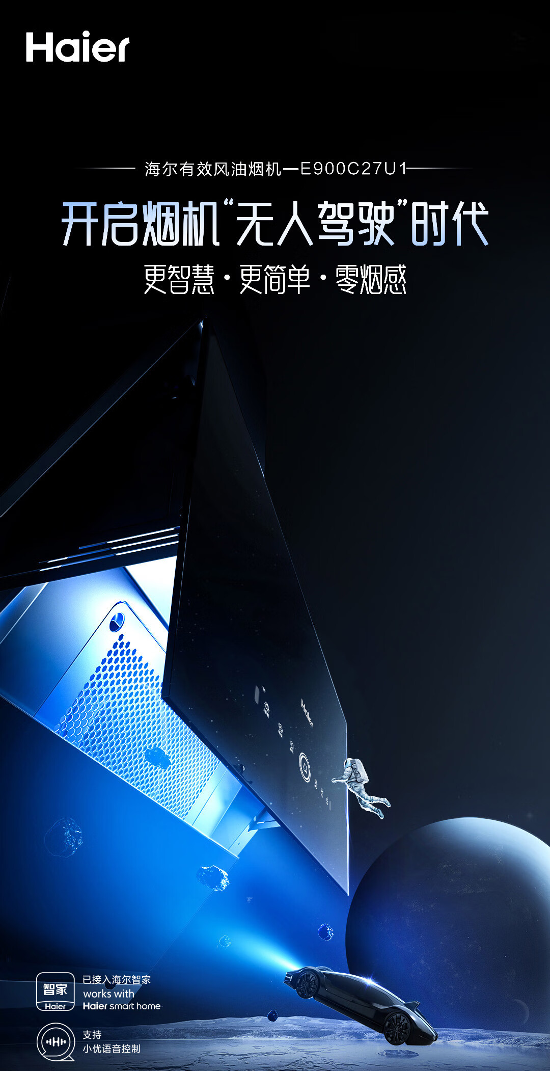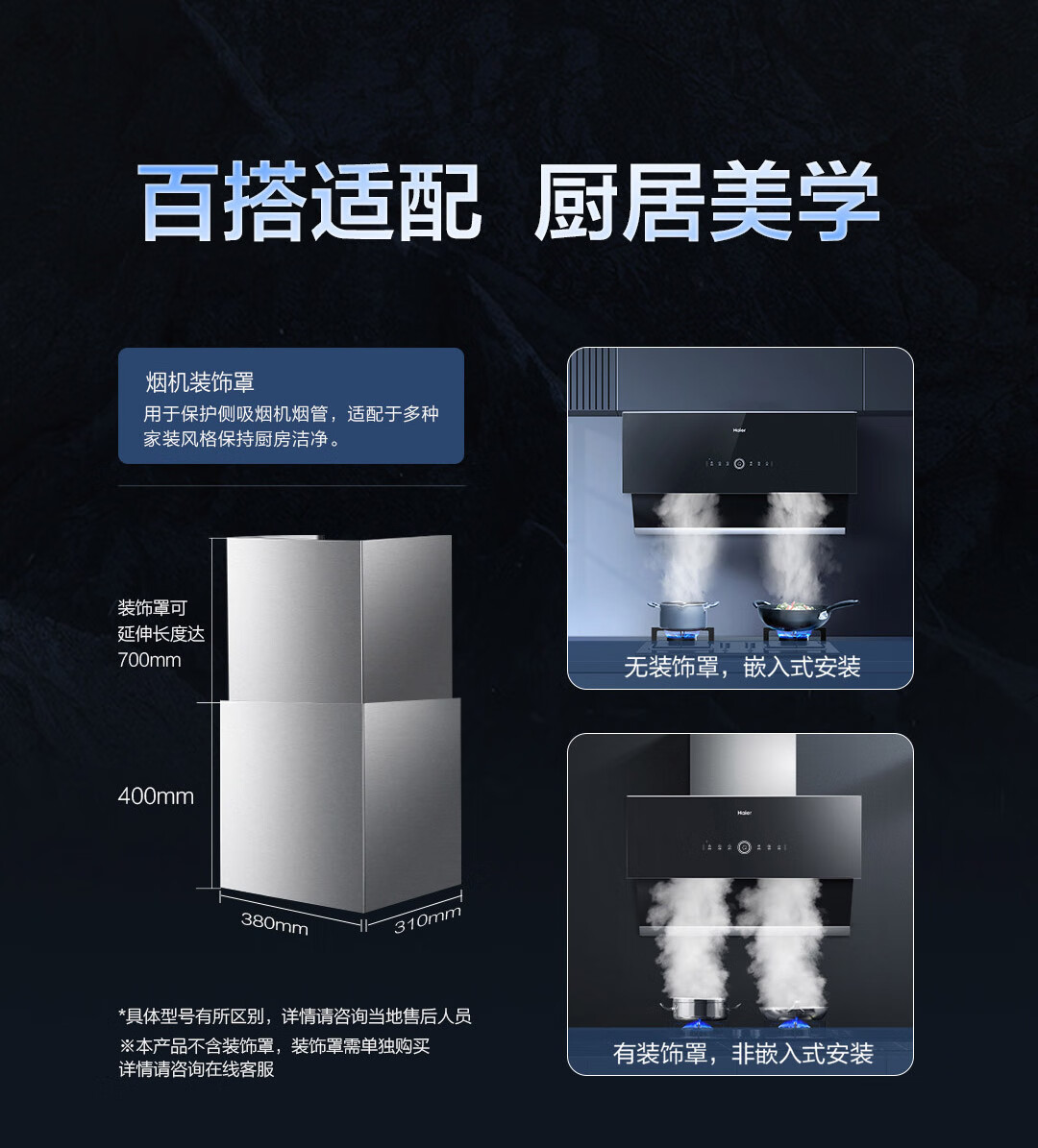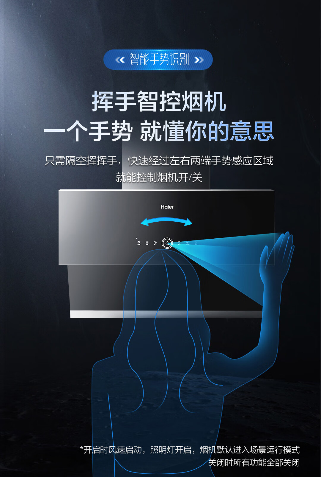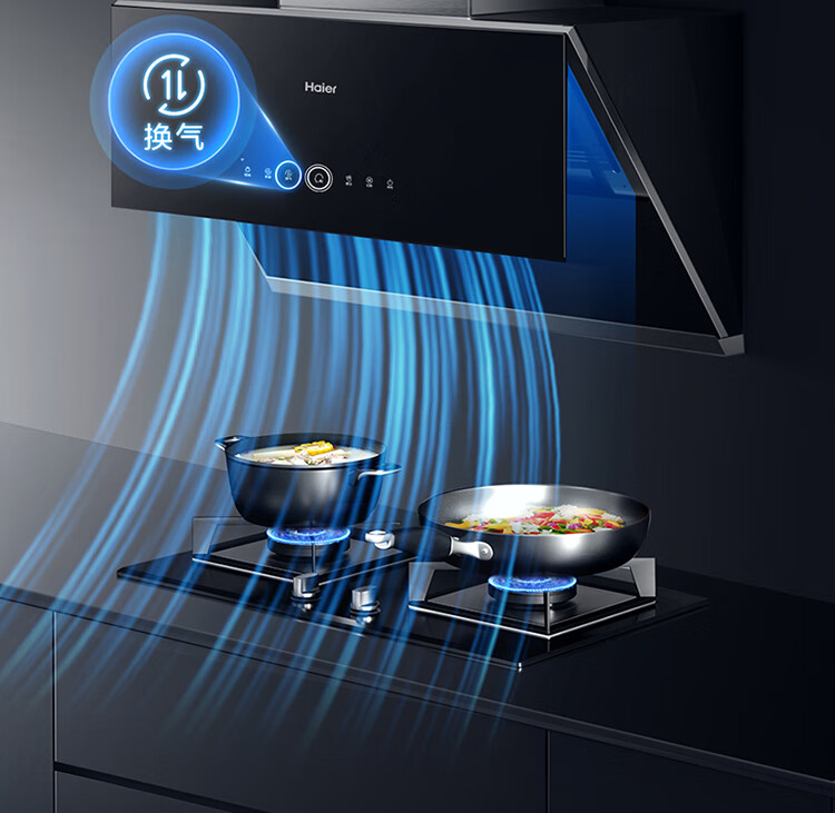 海尔(Haier)抽油烟机 烟灶套装 变频有效风 超薄近吸 24立方1100pa立体拢烟挥手热熔洗侧吸油烟机C27U1