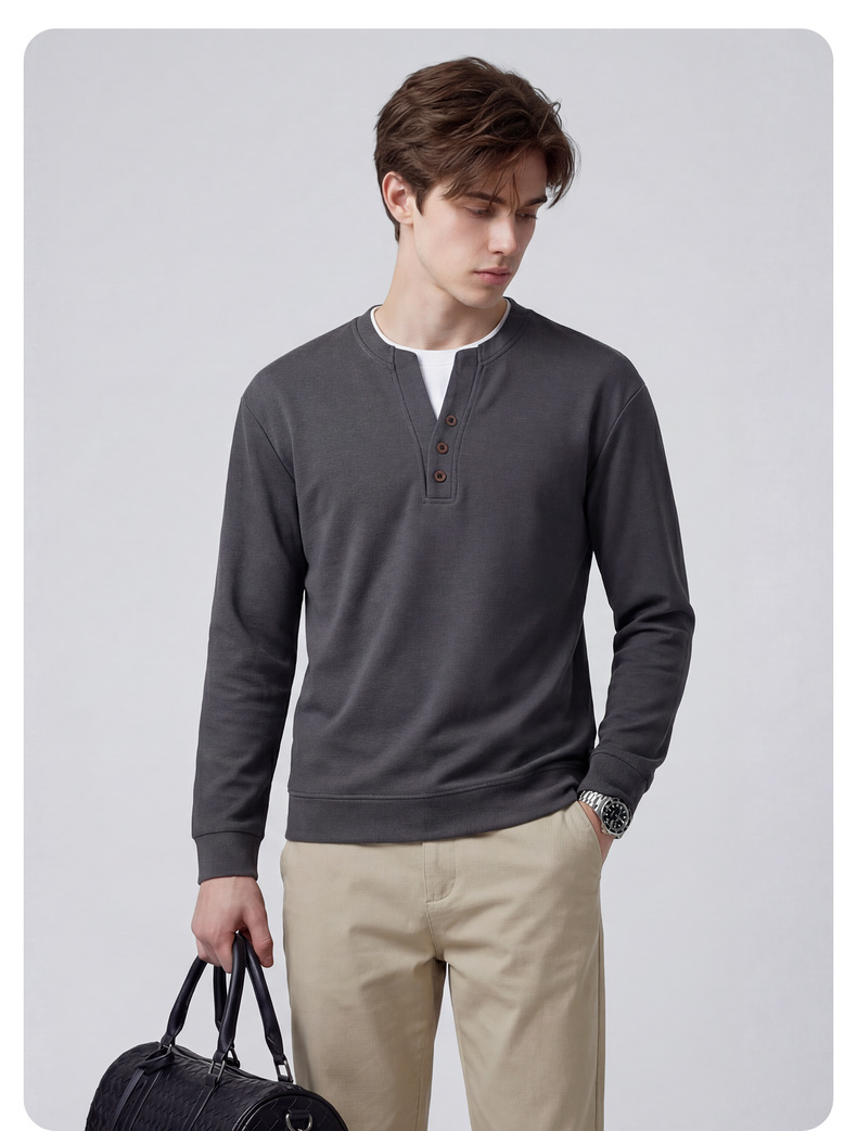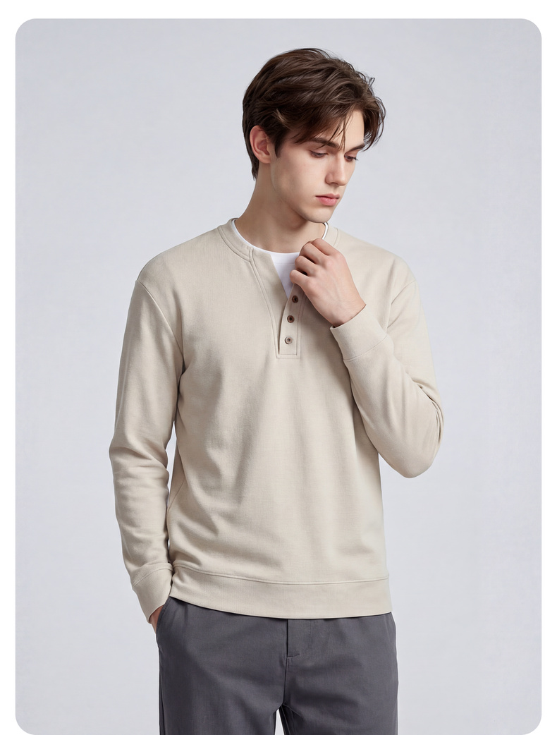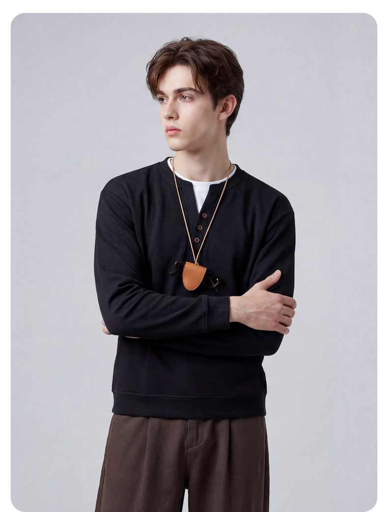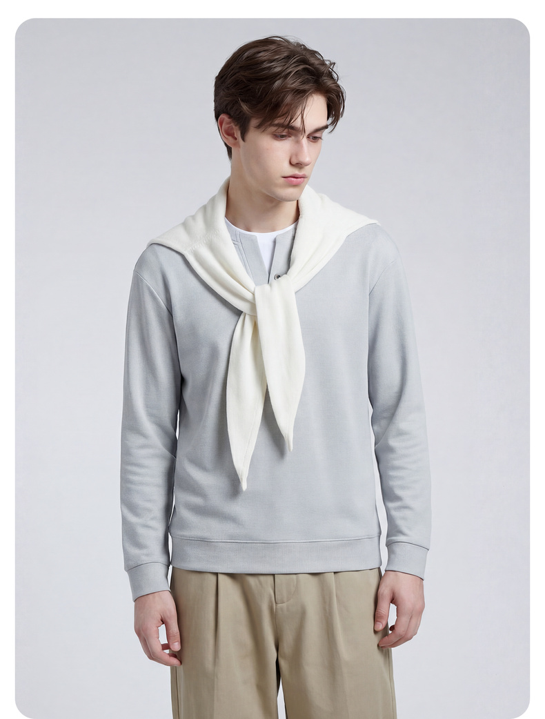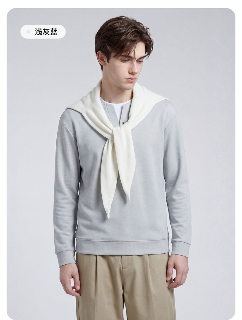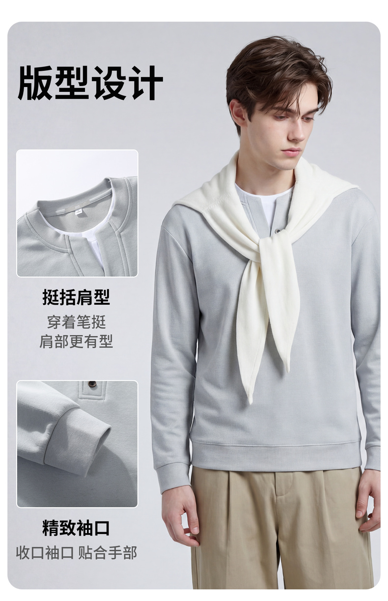 【舒适透气】圣得西2026年春季国潮落肩男款假两件卫衣套头针织衫