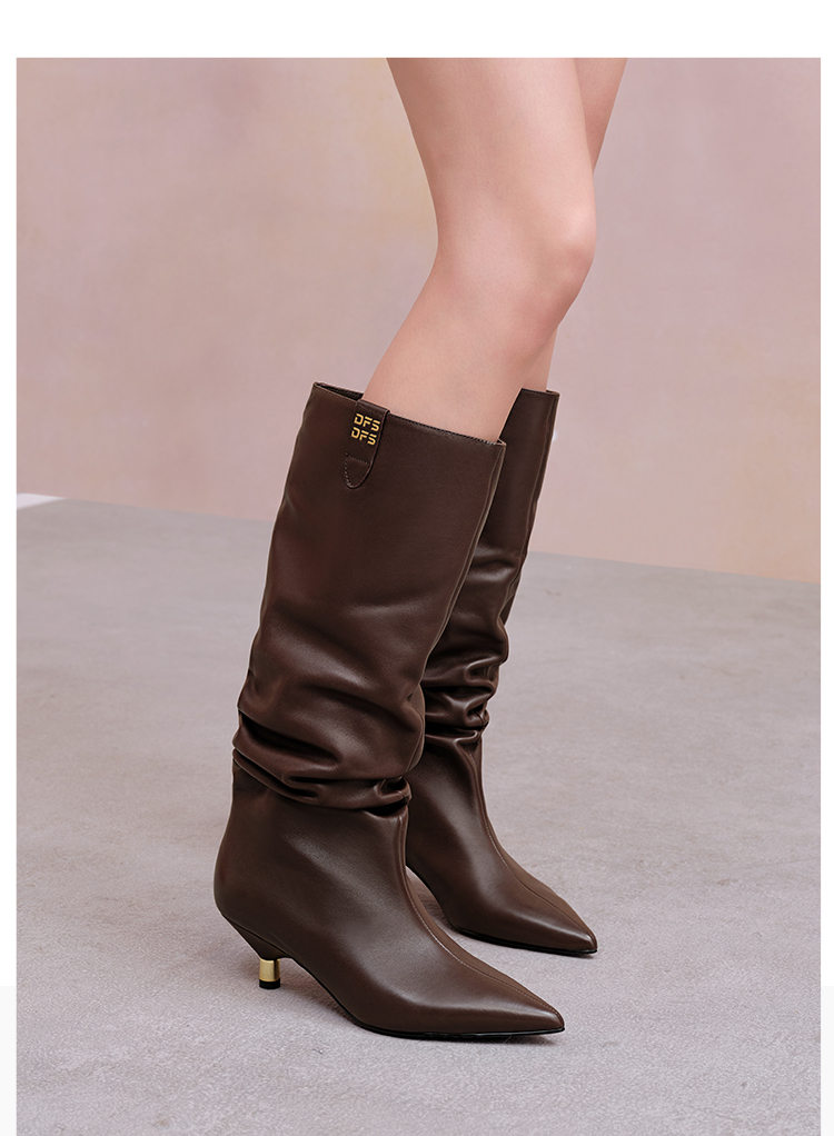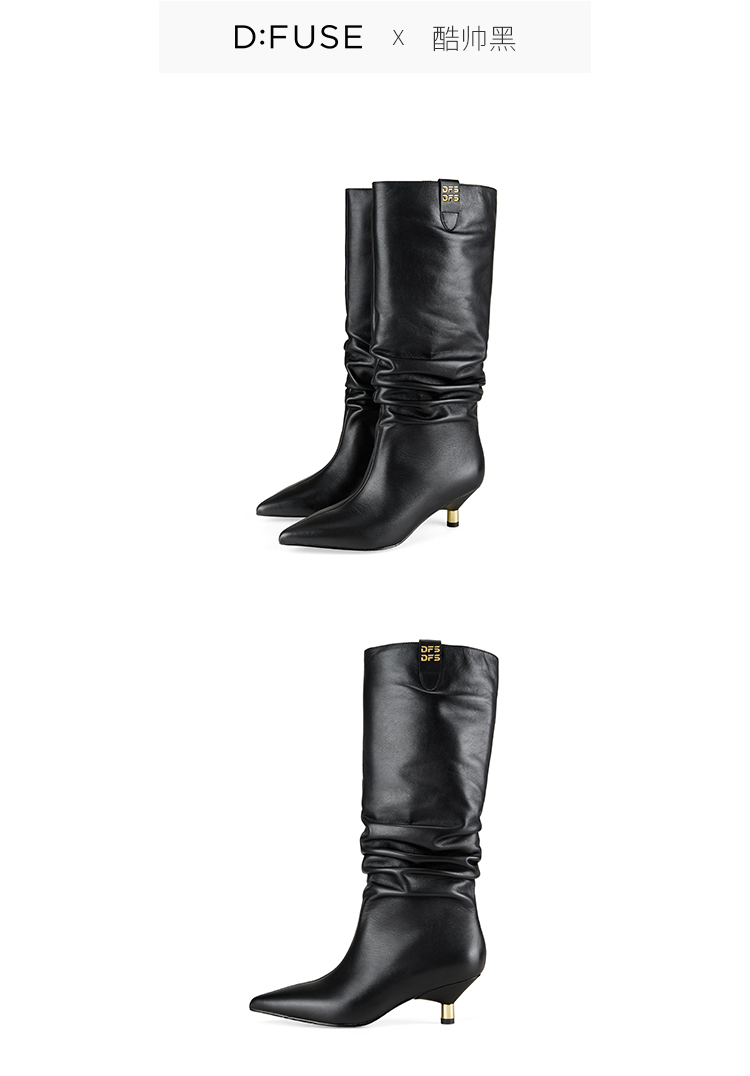 Dfuse迪芙斯2025冬季新款及膝冬长靴甜酷机车靴增高显瘦堆堆靴女靴DFD4117016