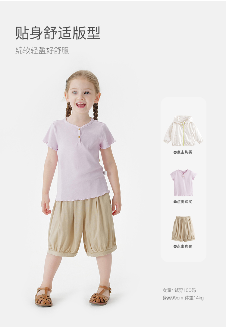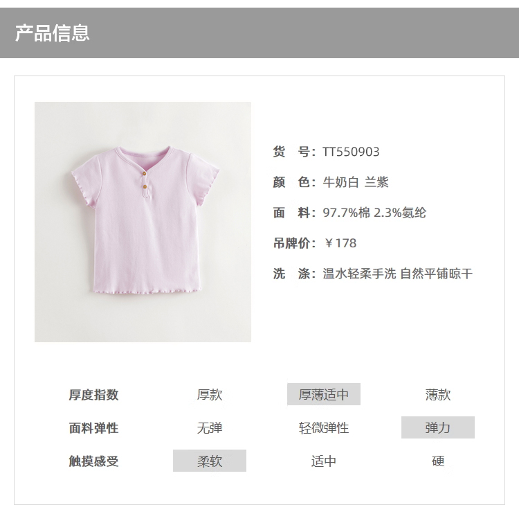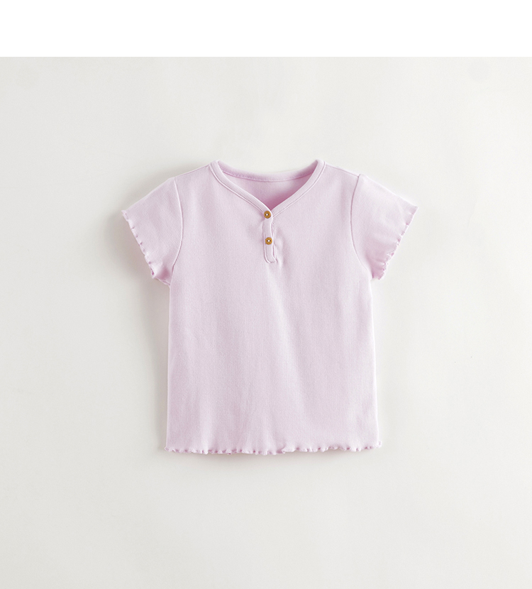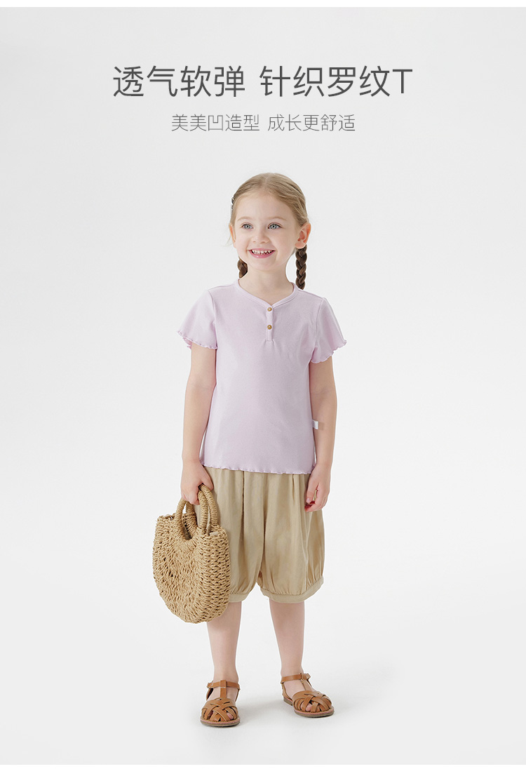 马克珍妮2025夏装新款 女童小V领弹力针织T恤550903