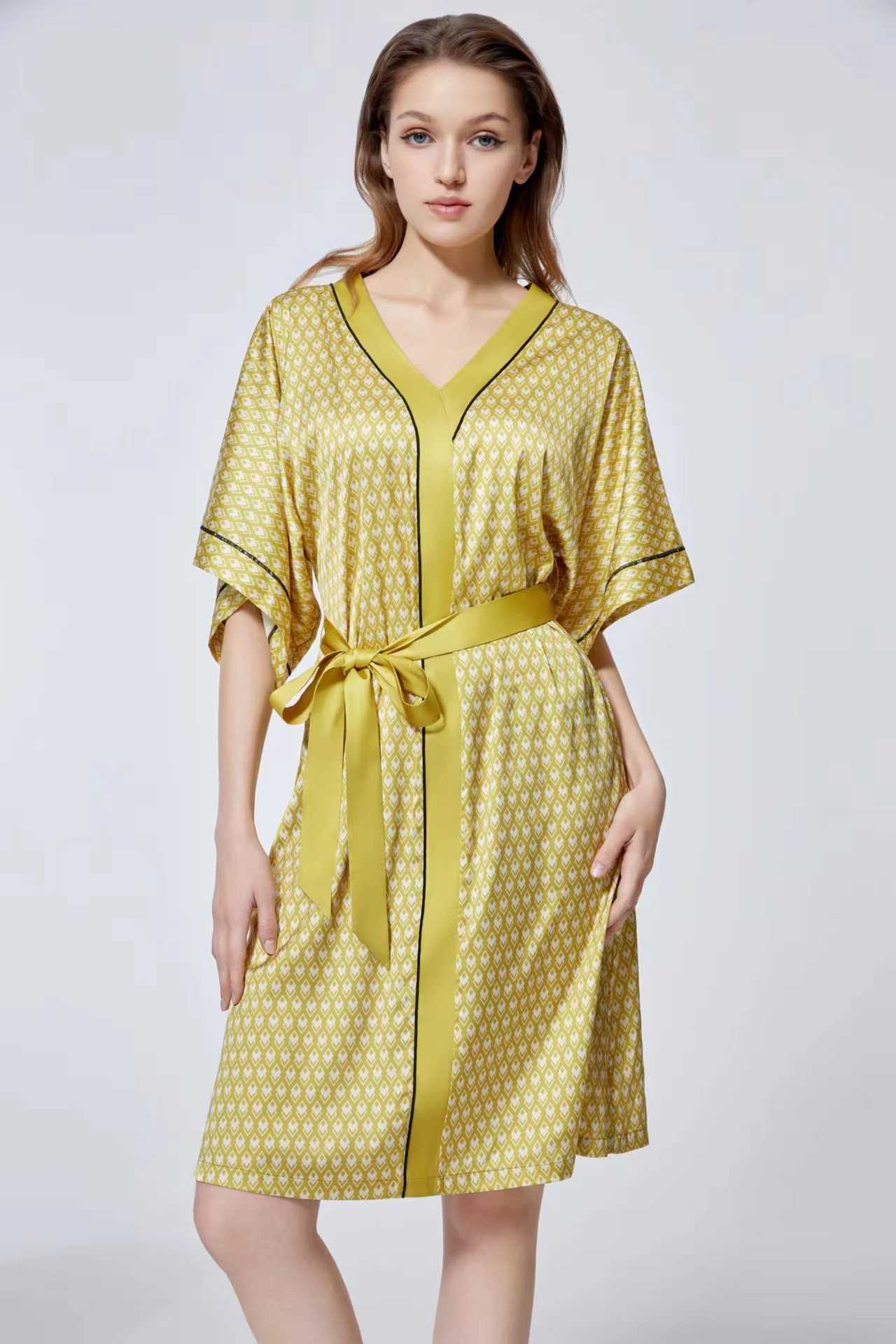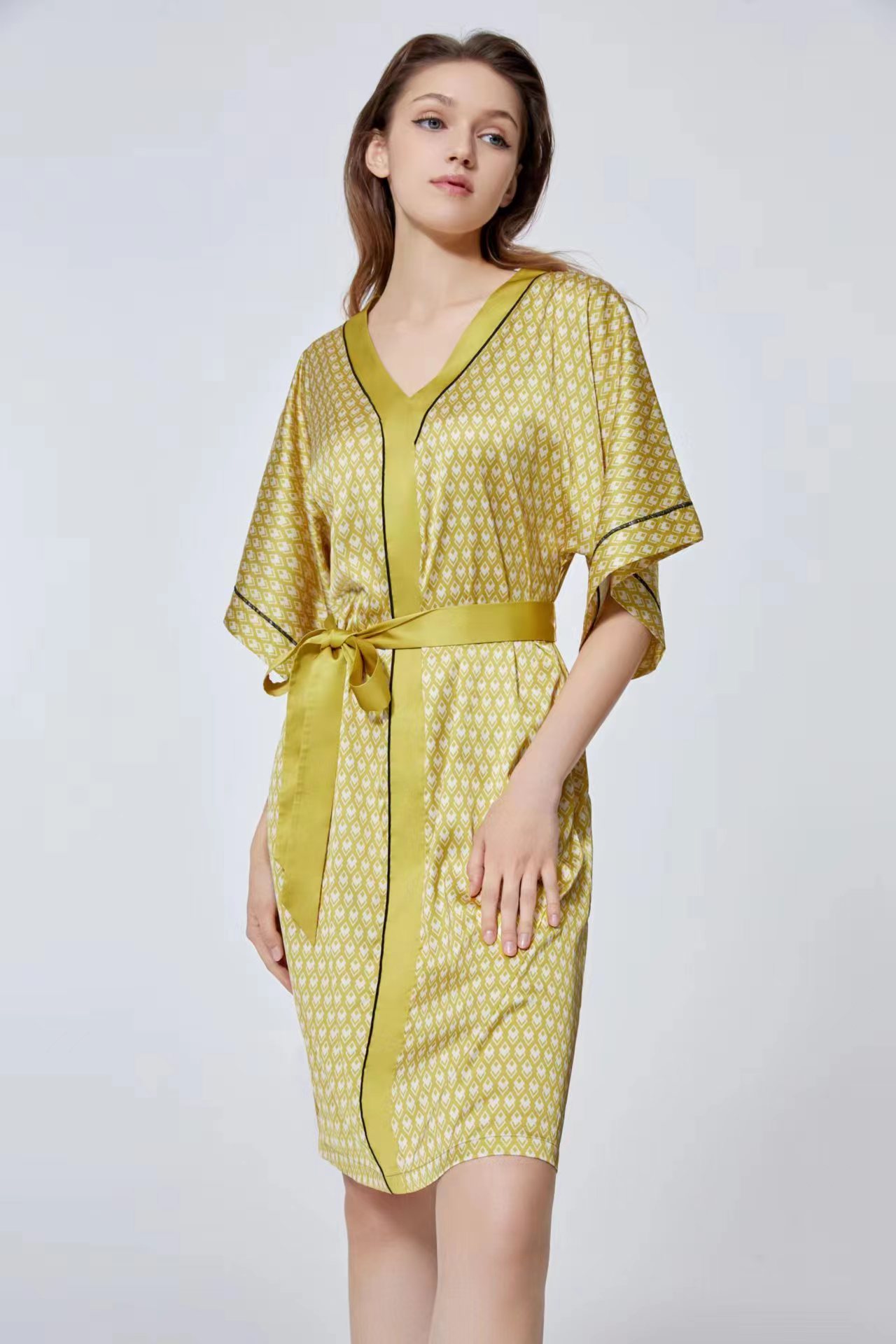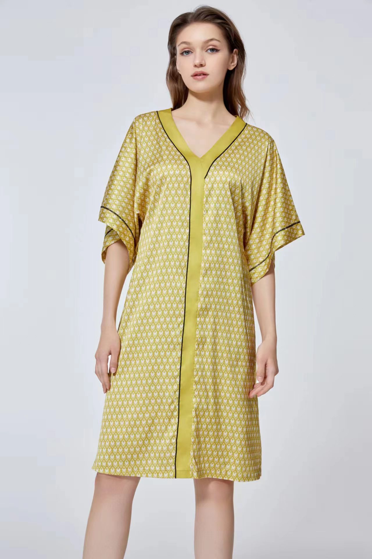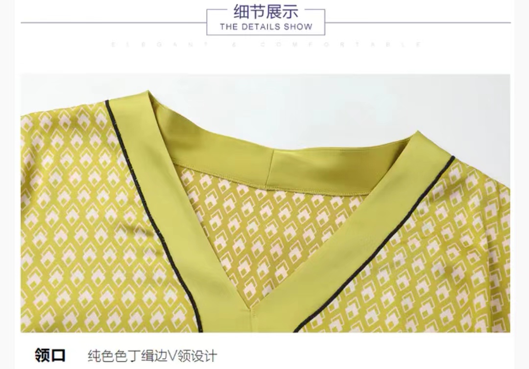【致美优雅】女士V领宽松印花舒适家居裙