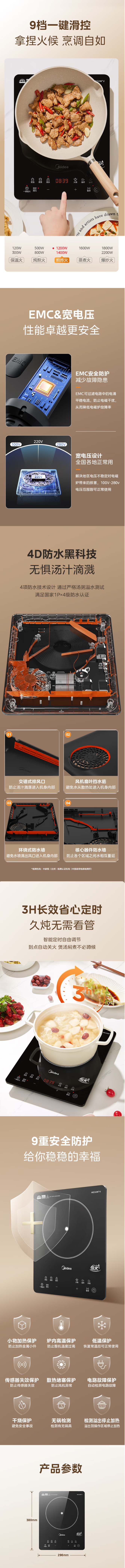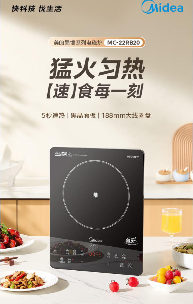 美的(510586)(Midea)电磁炉家用按键式触摸式速热火锅炉磁炉定温定时4D防水台式家用爆炒防水大功率烤线下同款 MC-22RB20【24年新款】2200w5秒速热
