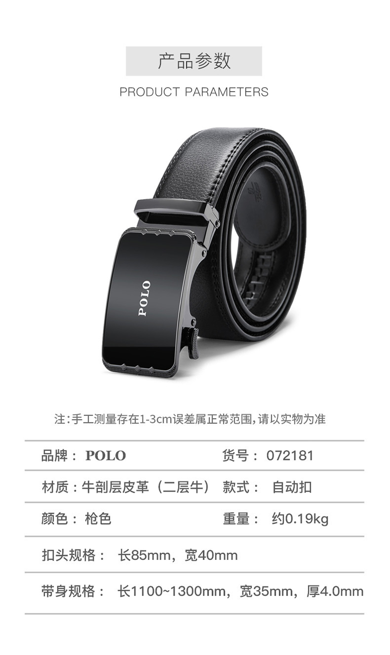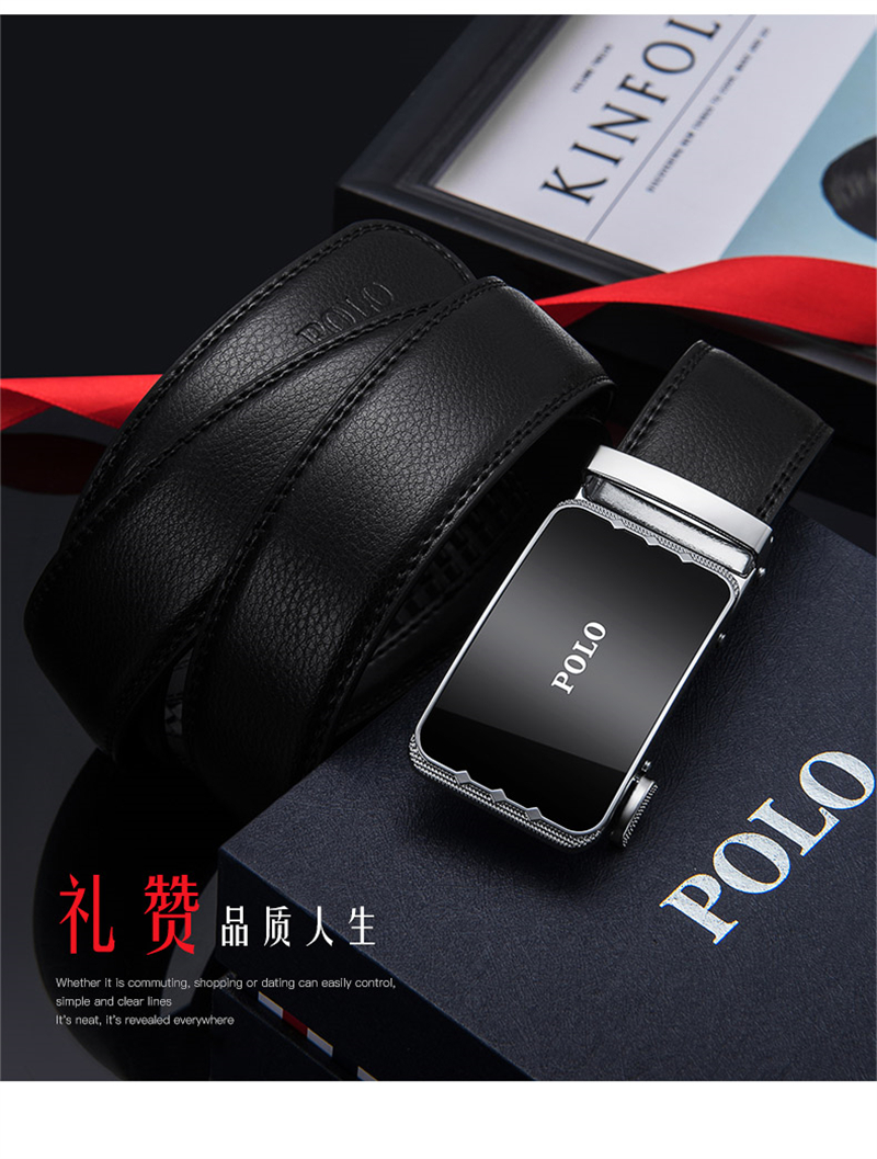 POLO 男士自动扣商务皮带牛皮休闲腰带072181