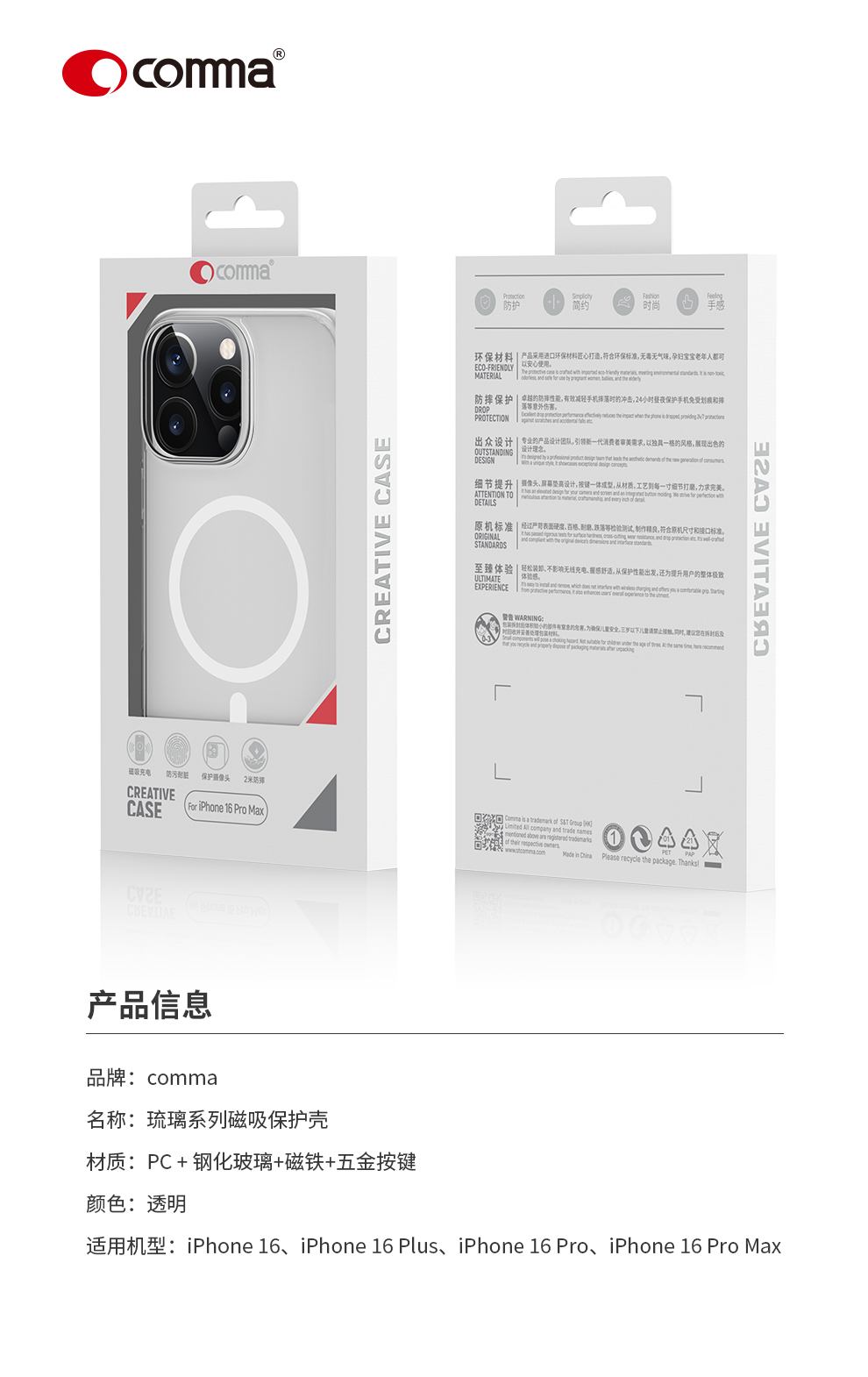 comma 保护壳 琉璃磁吸 - 透明(适用于iPhone 16系列)