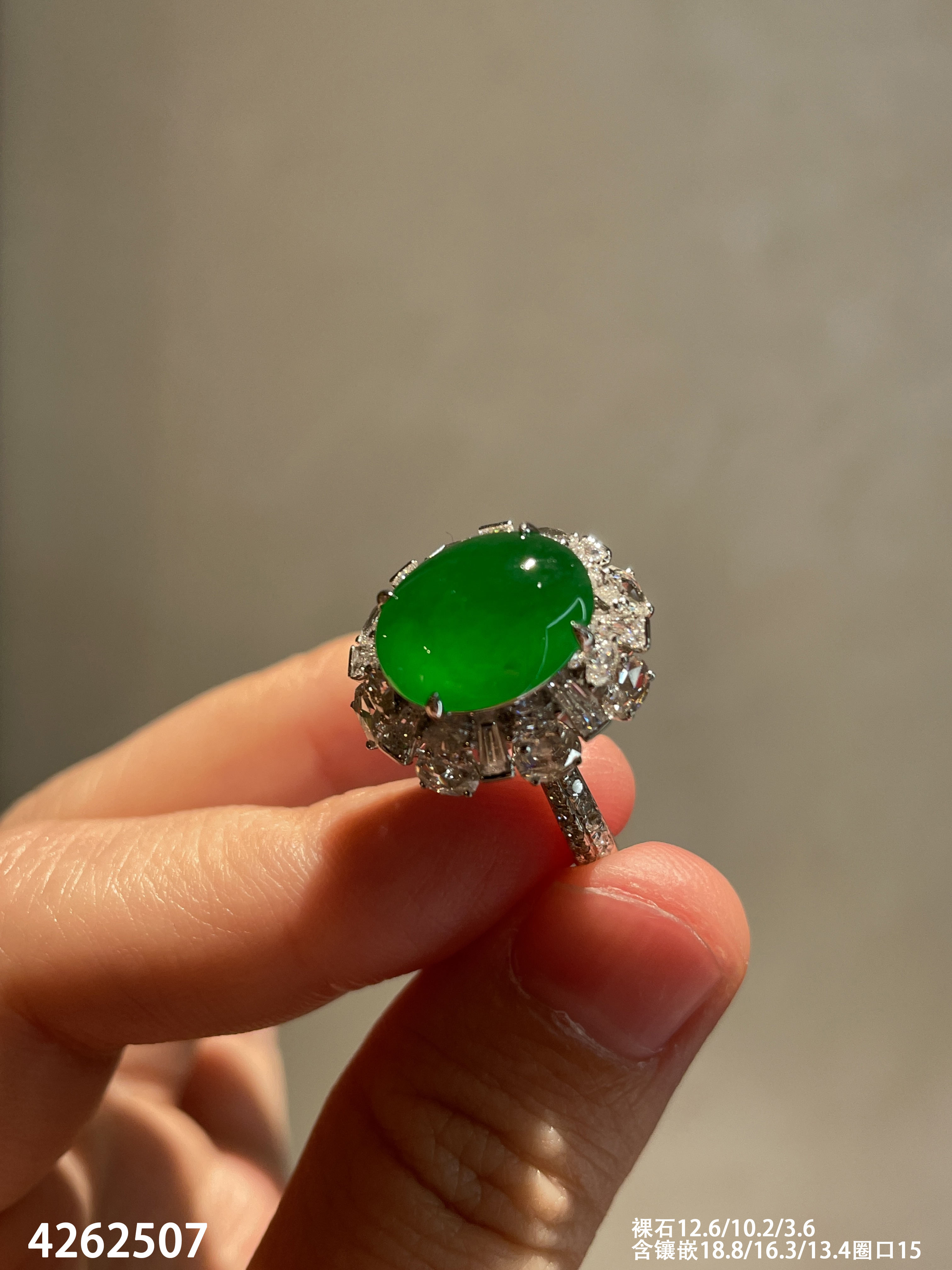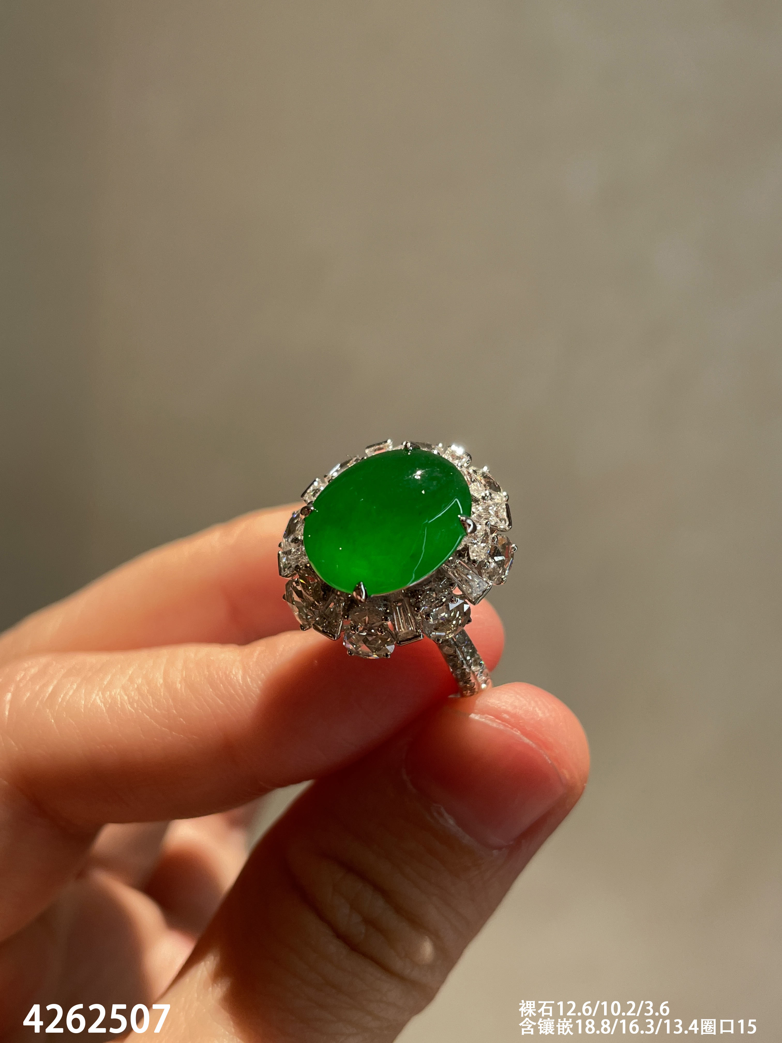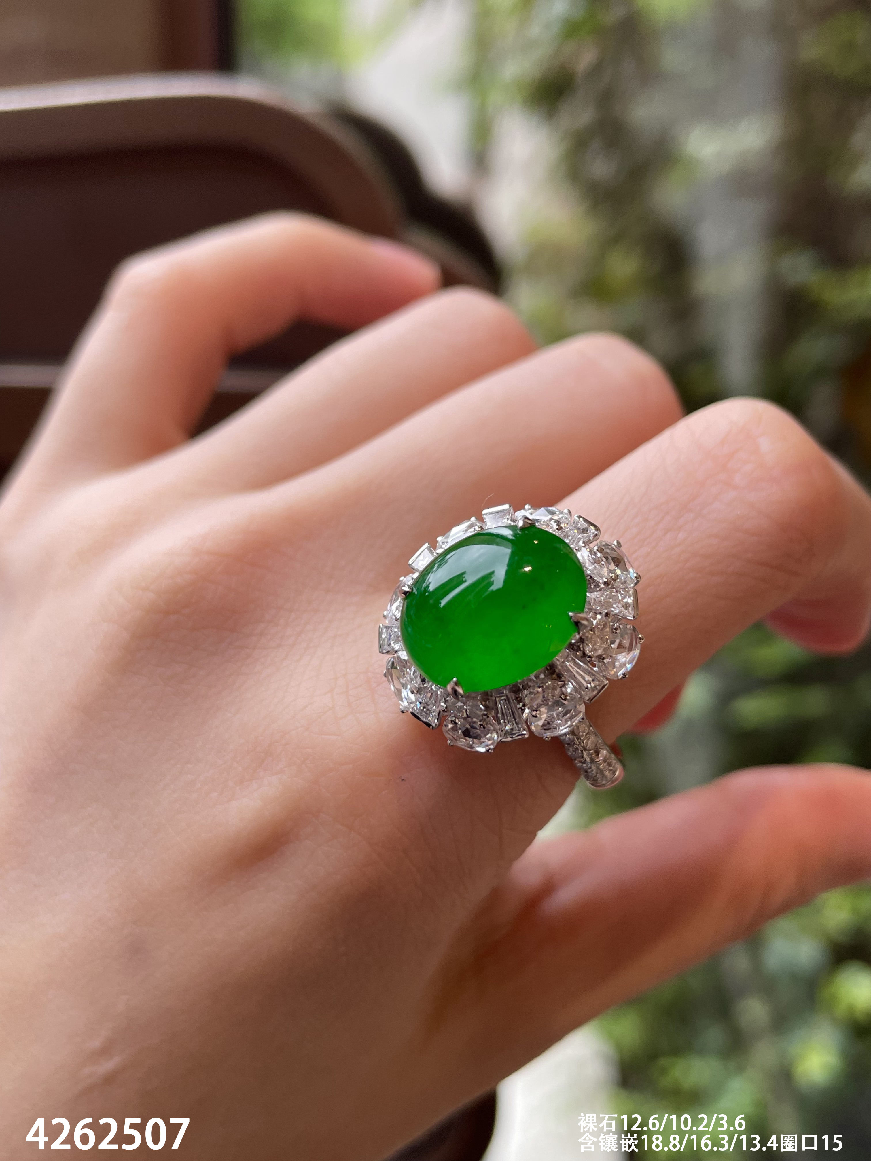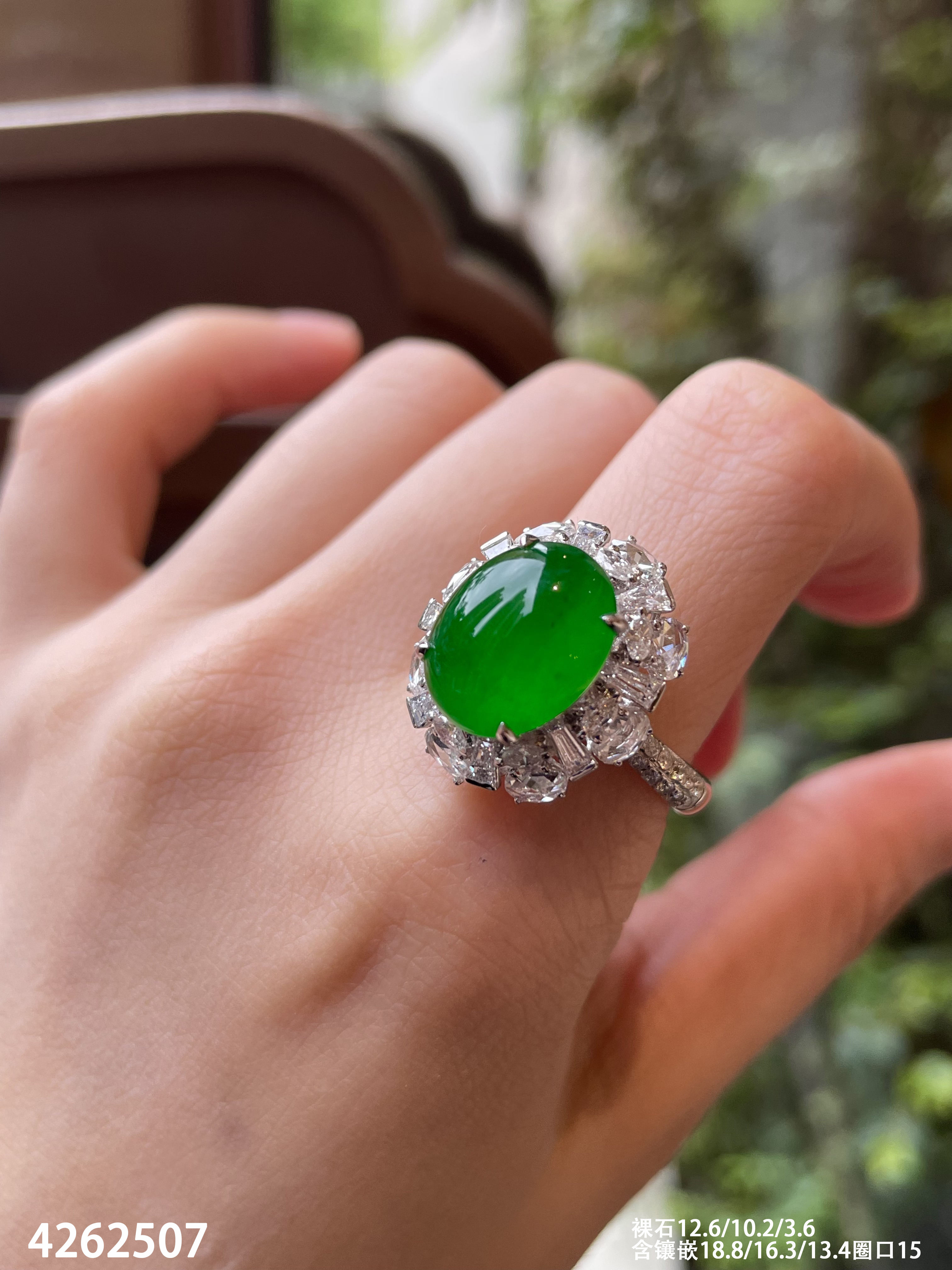 老坑帝王绿蛋面戒指【4262507】具体价格私信咨询