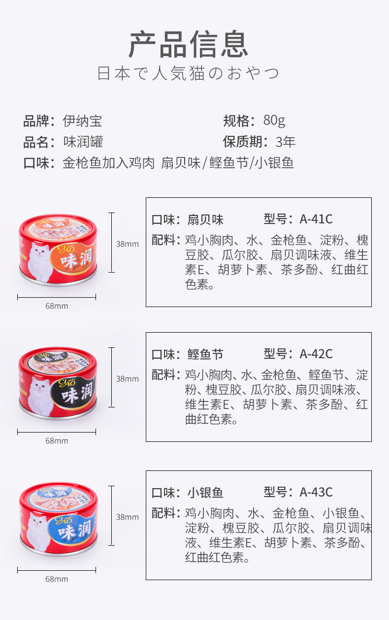 【10人团】猫零食伊纳宝味润猫罐头80g*12